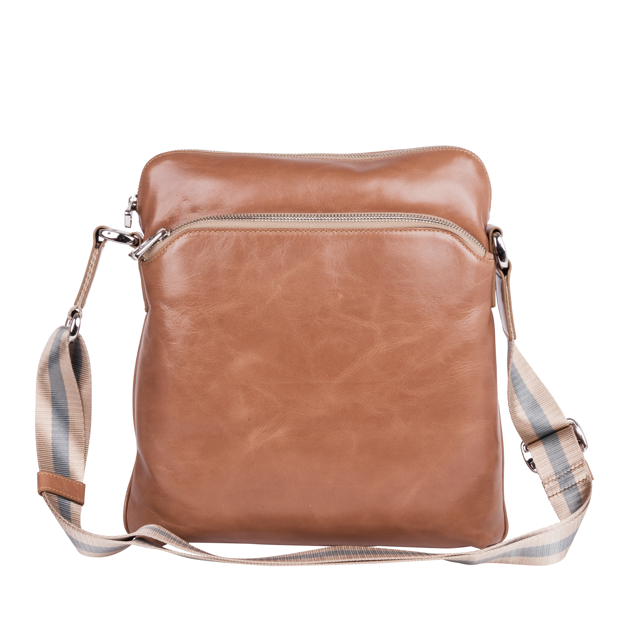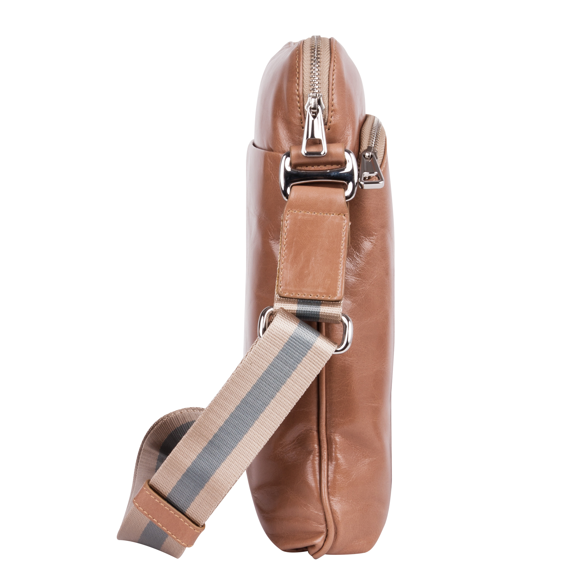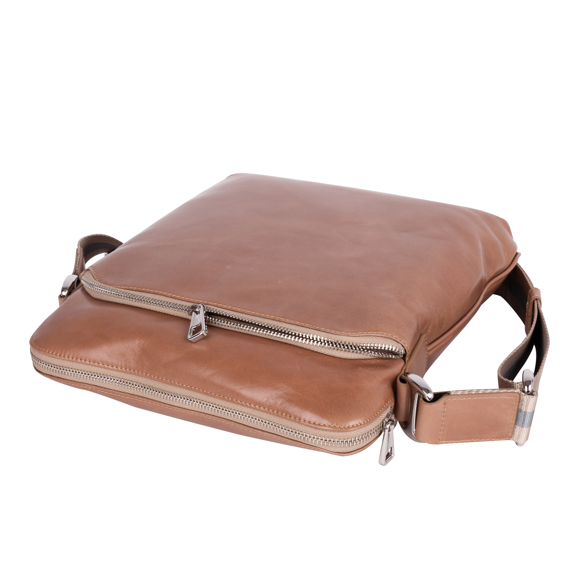 Планшет Pola выполнен из натуральной кожи. Основное отделение закрывается на молнию. Внутри — один открытый карман и один карман на молнии. Снаружи — два кармана: на молнии и на магнитной кнопке. Плечевой ремень несъемный.