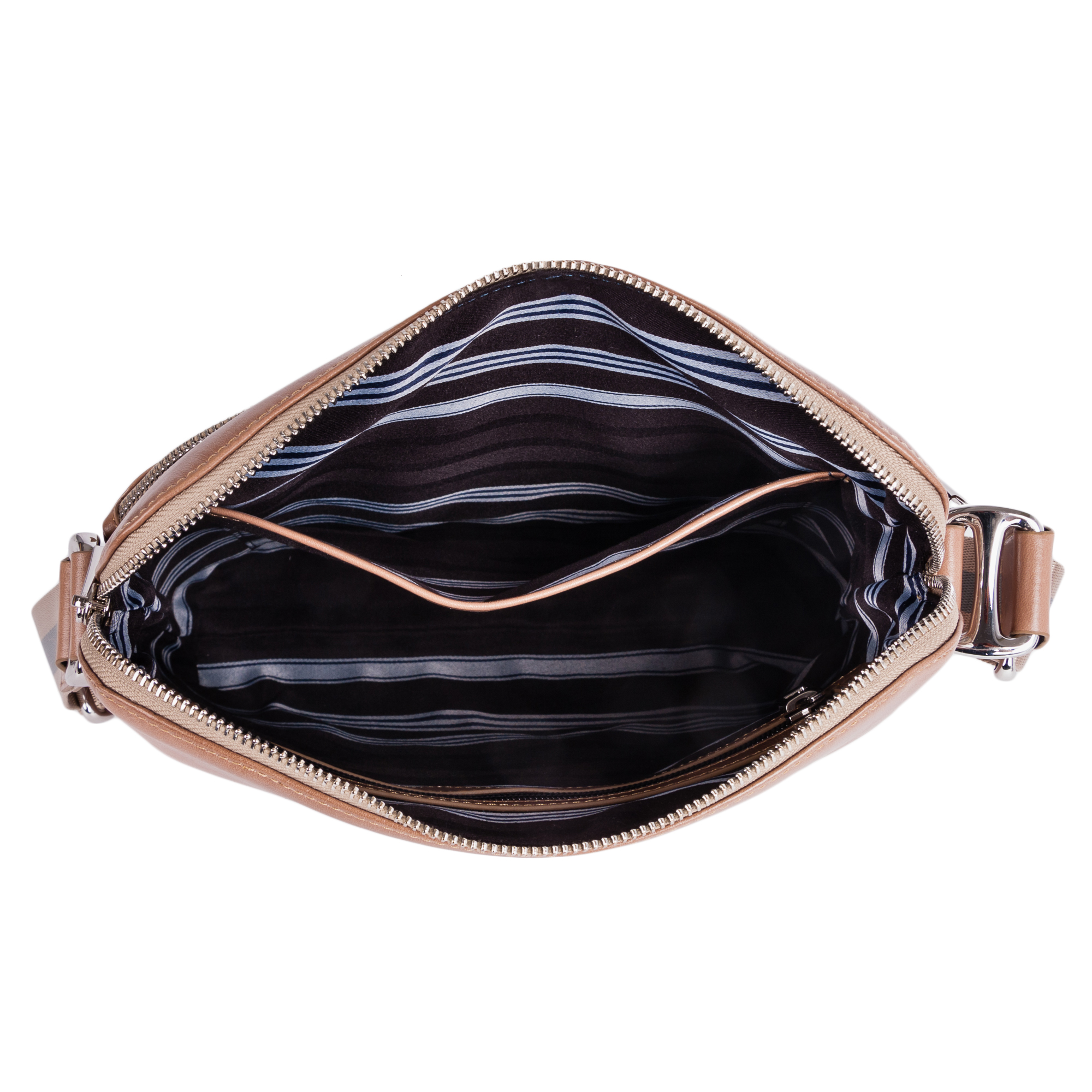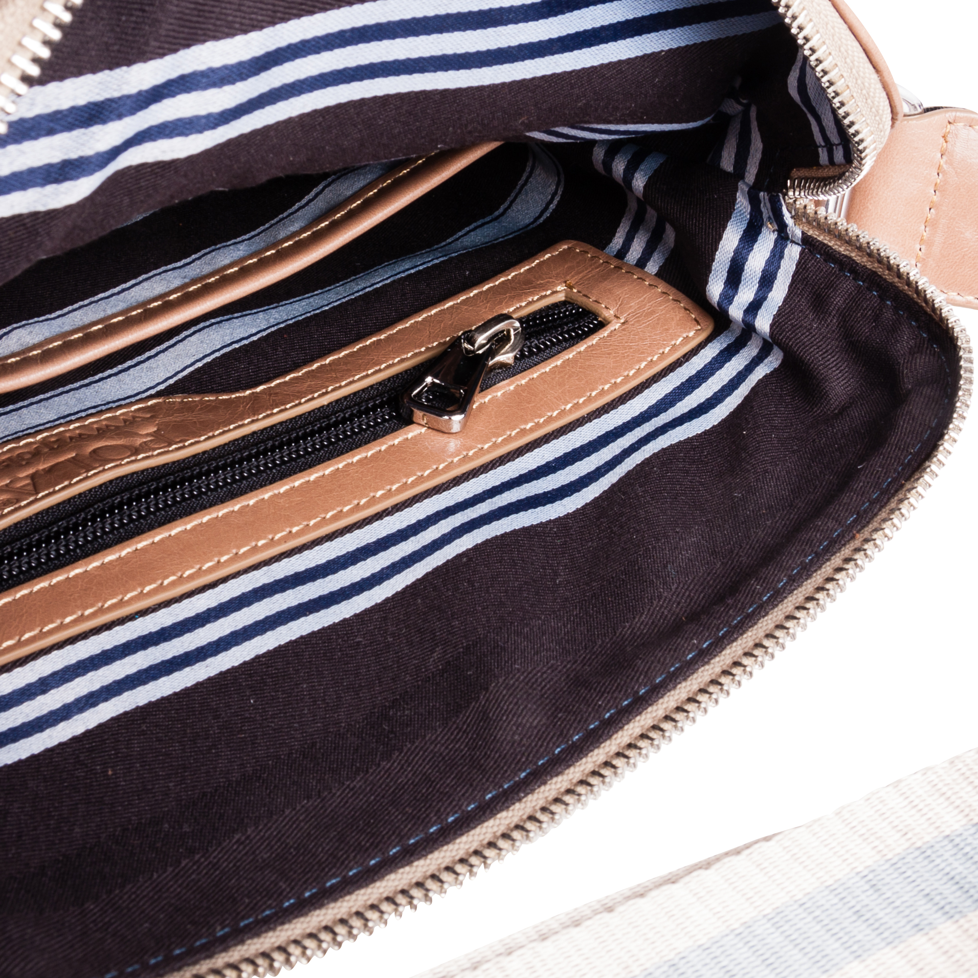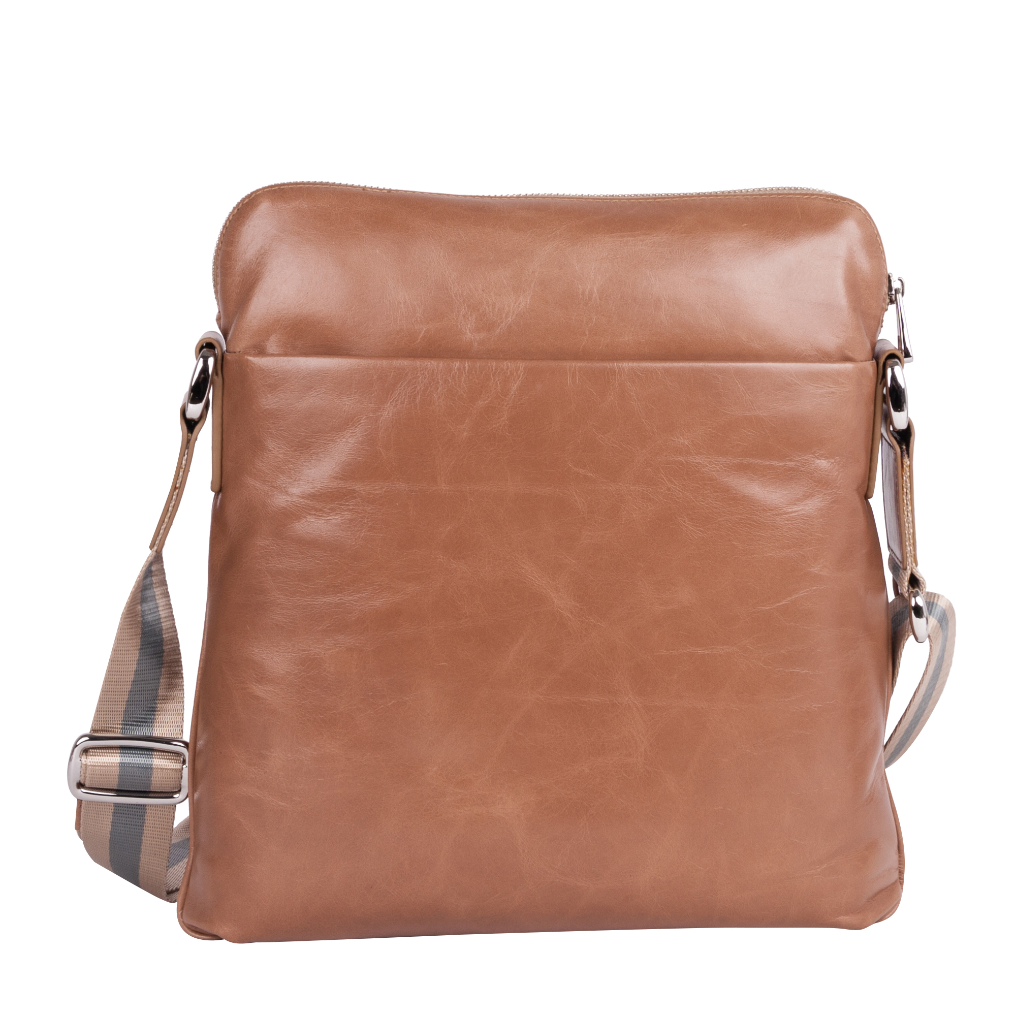 Планшет Pola выполнен из натуральной кожи. Основное отделение закрывается на молнию. Внутри — один открытый карман и один карман на молнии. Снаружи — два кармана: на молнии и на магнитной кнопке. Плечевой ремень несъемный.