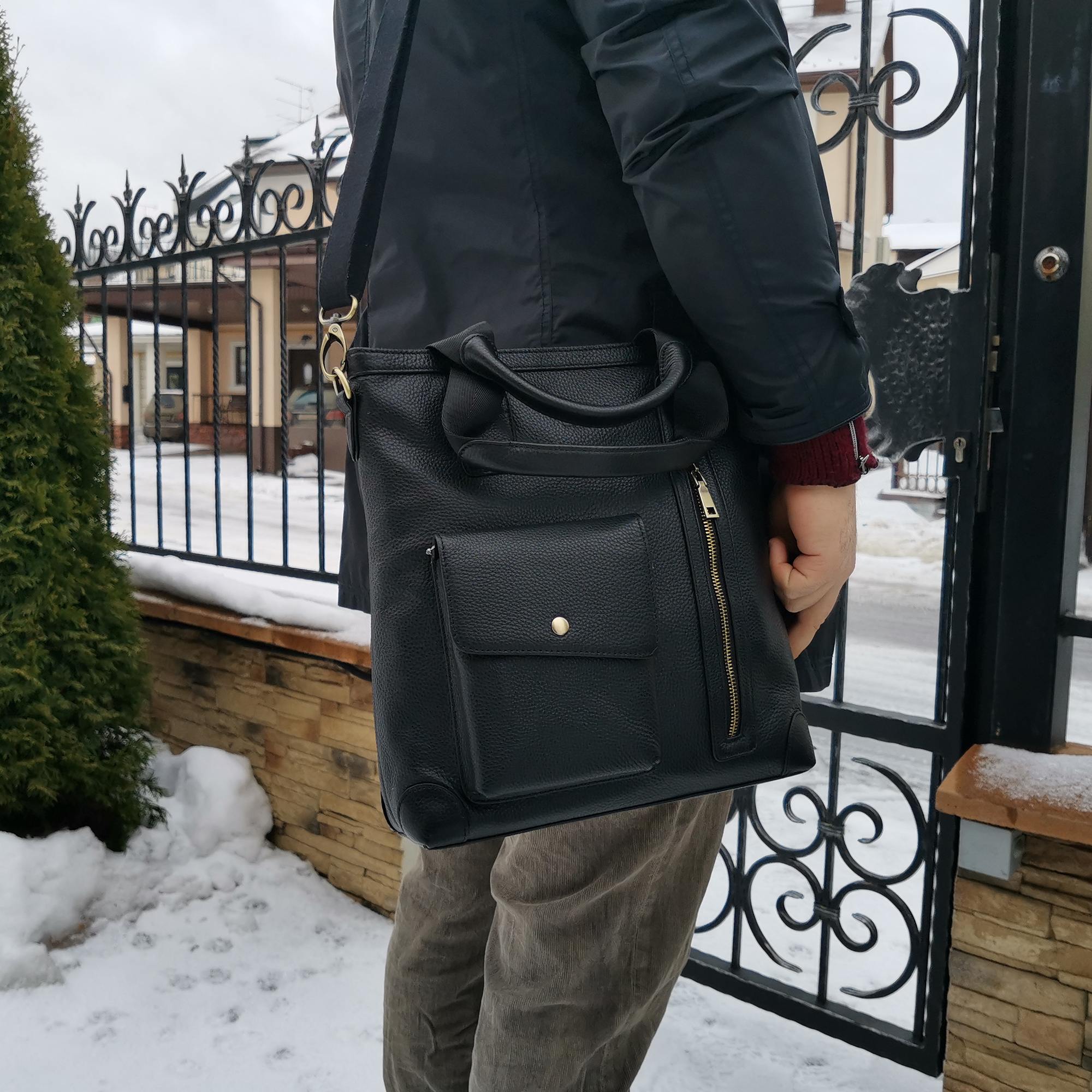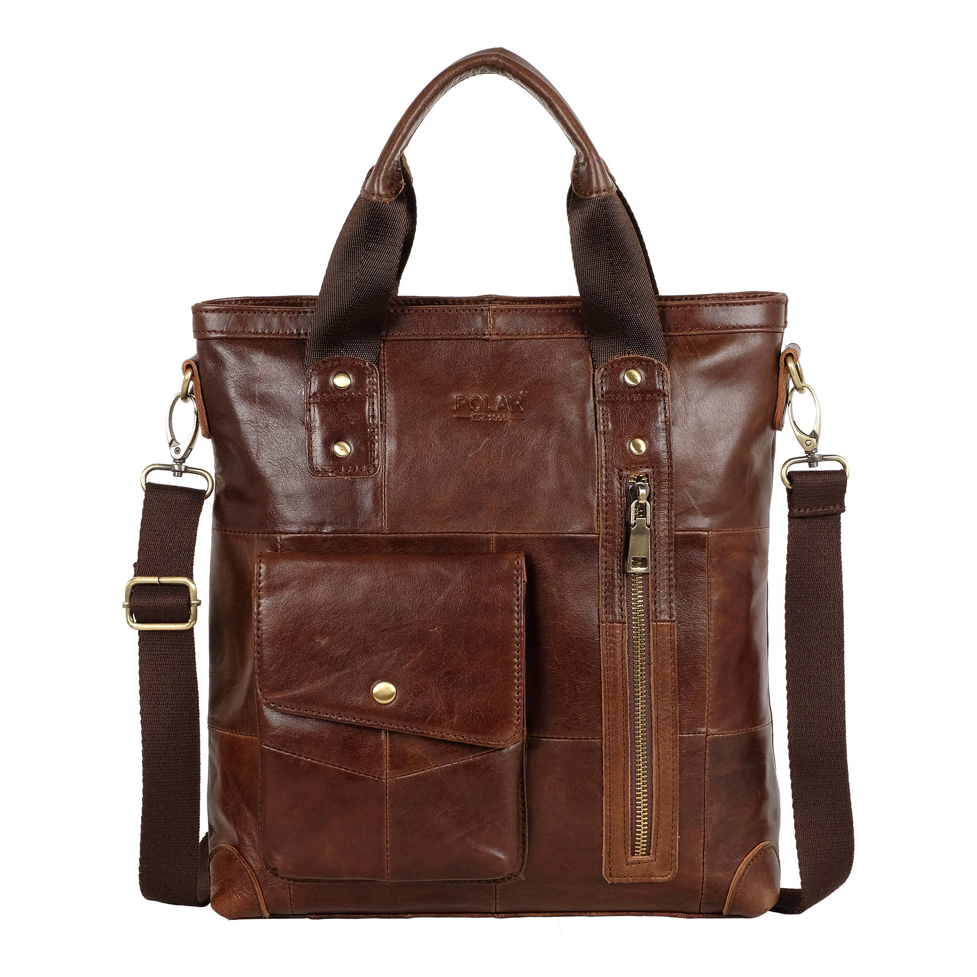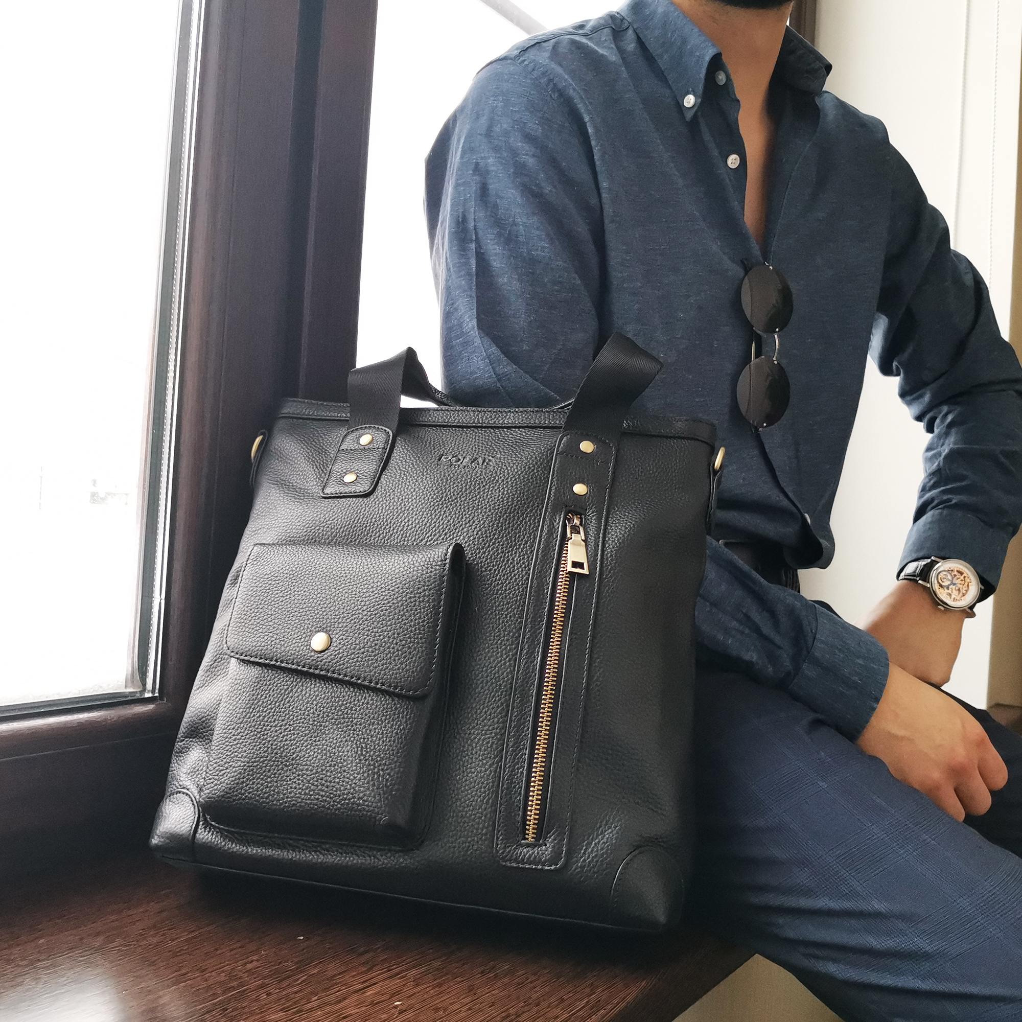 Сумка мужская Polar выполнена из натуральной кожи. Основное отделение закрывается на молнию. Внутри — отделение для документов формата А4,  поделено на две части, карман на молнии и два открытых кармашка. Снаружи — карман закрывается клапаном на магнитную кнопку и вертикальный карман на молнии. Карман на молнии сзади сумки. Съемный, удобный плечевой ремень, который регулируется по необходимой Вам длине 148 см.
