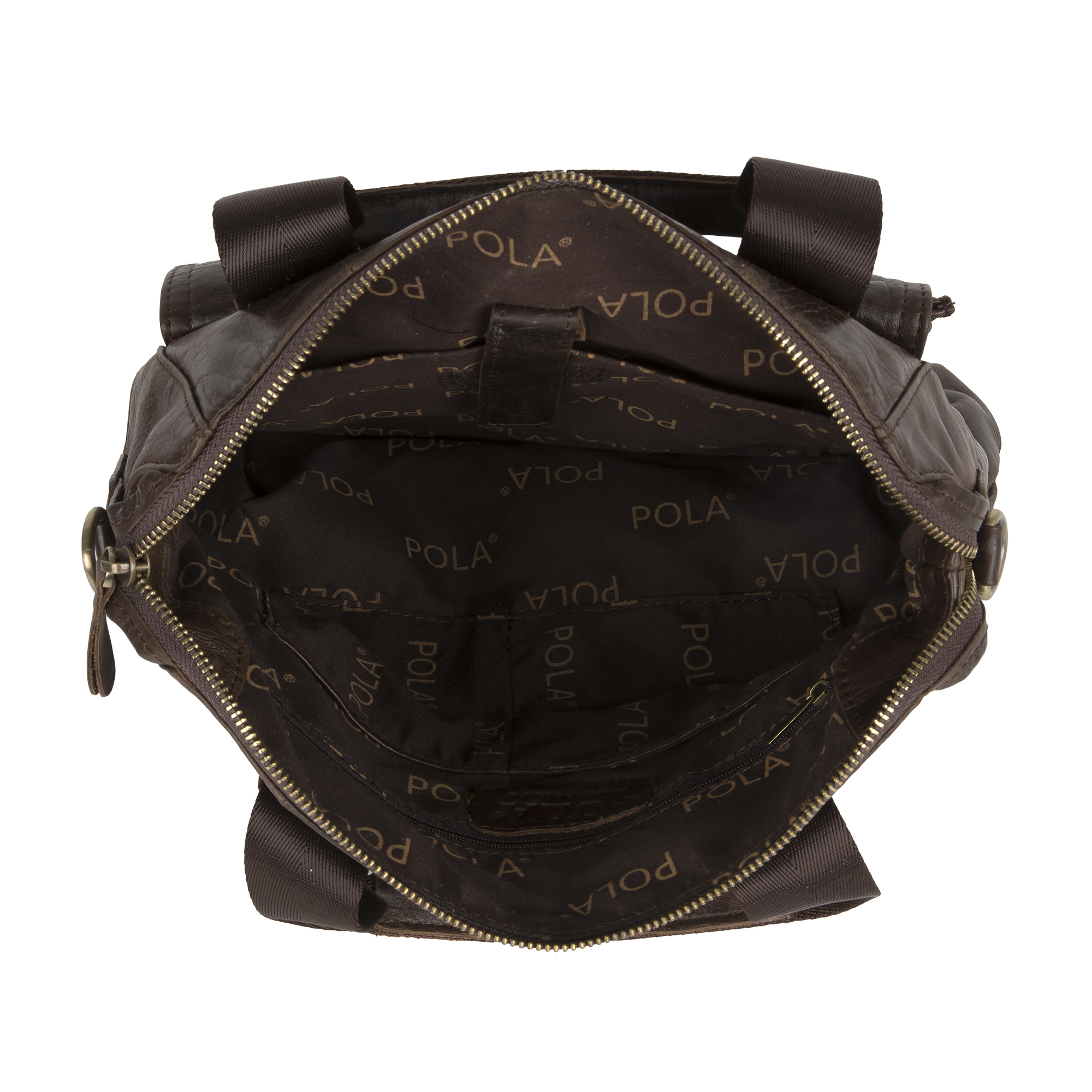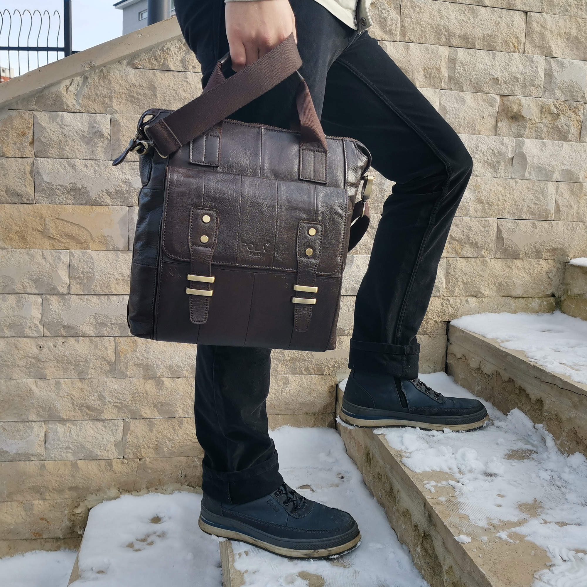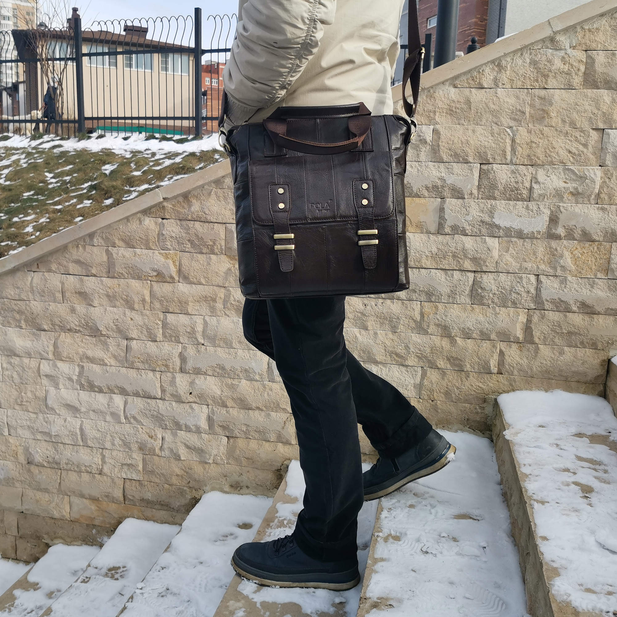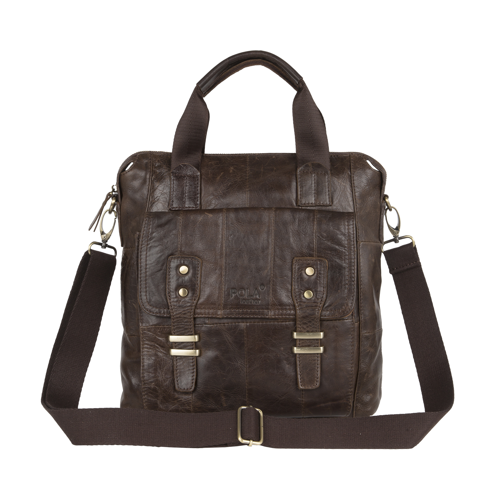 Сумка мужская Pola выполнена из натуральной кожи. Основное отделение закрывается на молнию. Внутри — отделение для планшета, один карман на молнии и два открытых кармана. Снаружи — карман-органайзер на передней стенке и карман на молнии на обратной стороне сумки. В комплекте есть съемный, регулируемый плечевой ремень. Высота ручек 10 см.