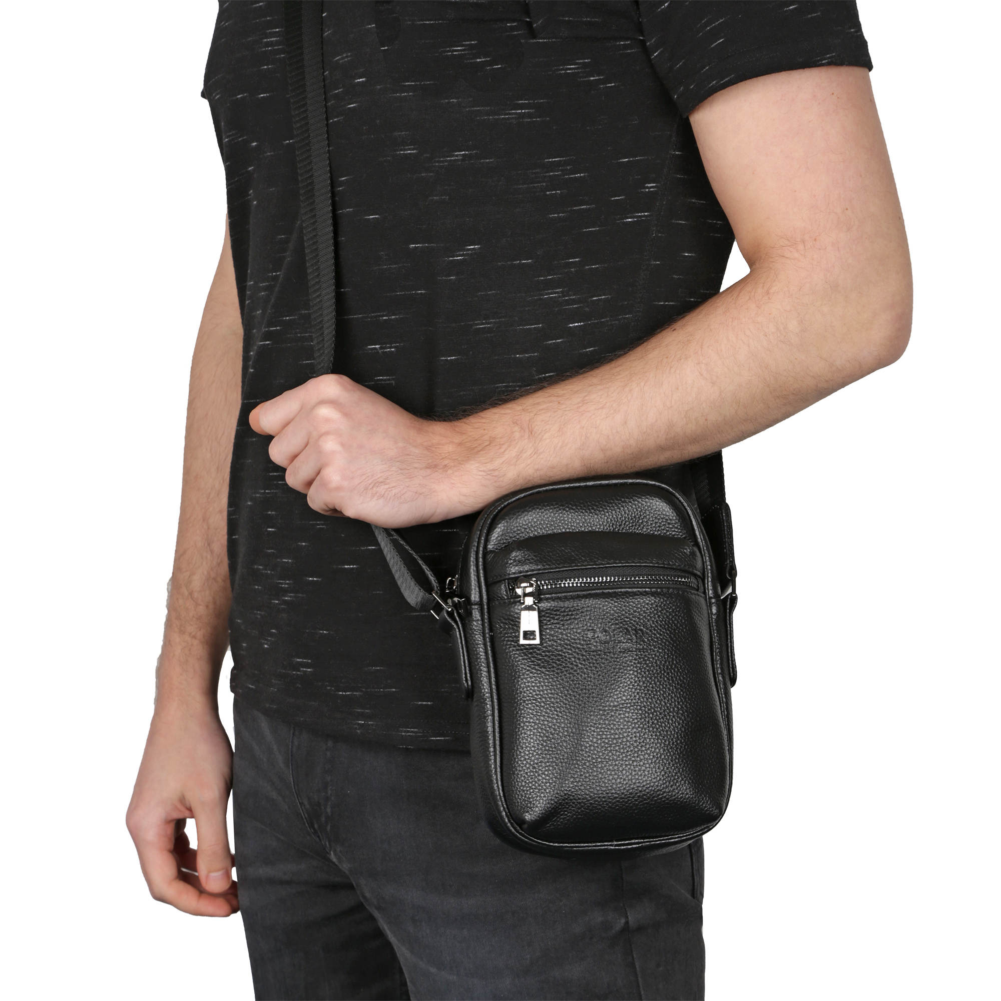 Сумка мужская из натуральной кожи фирмы Polar. Основное отделение закрывается на металлическую молнию. В основном отделении карман на молнии для ценных вещей и открытый кармашек. На передней стенке вместительный карман на молнии, а также открытый карман сзади сумки. Плечевой ремень регулируемый по максимальной длине 147 см.