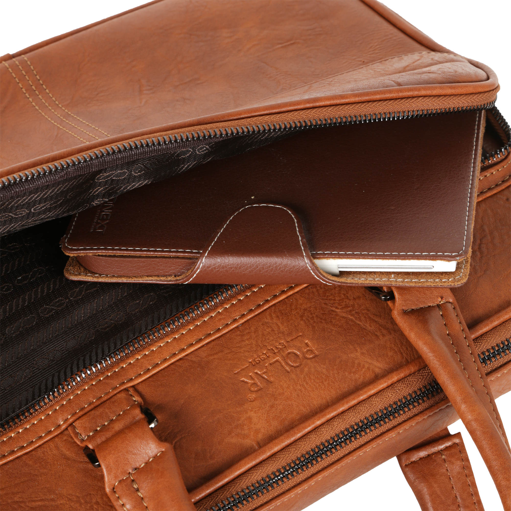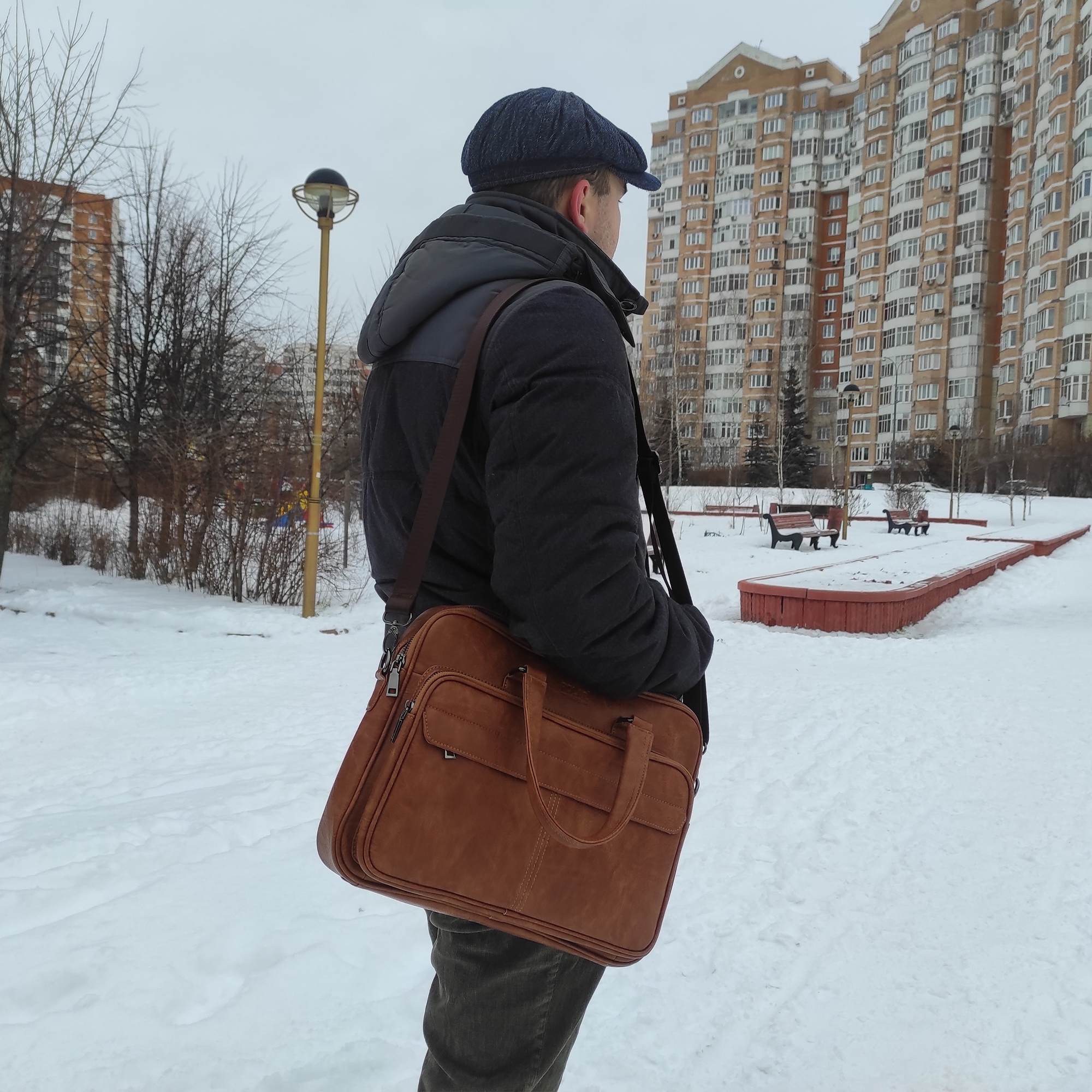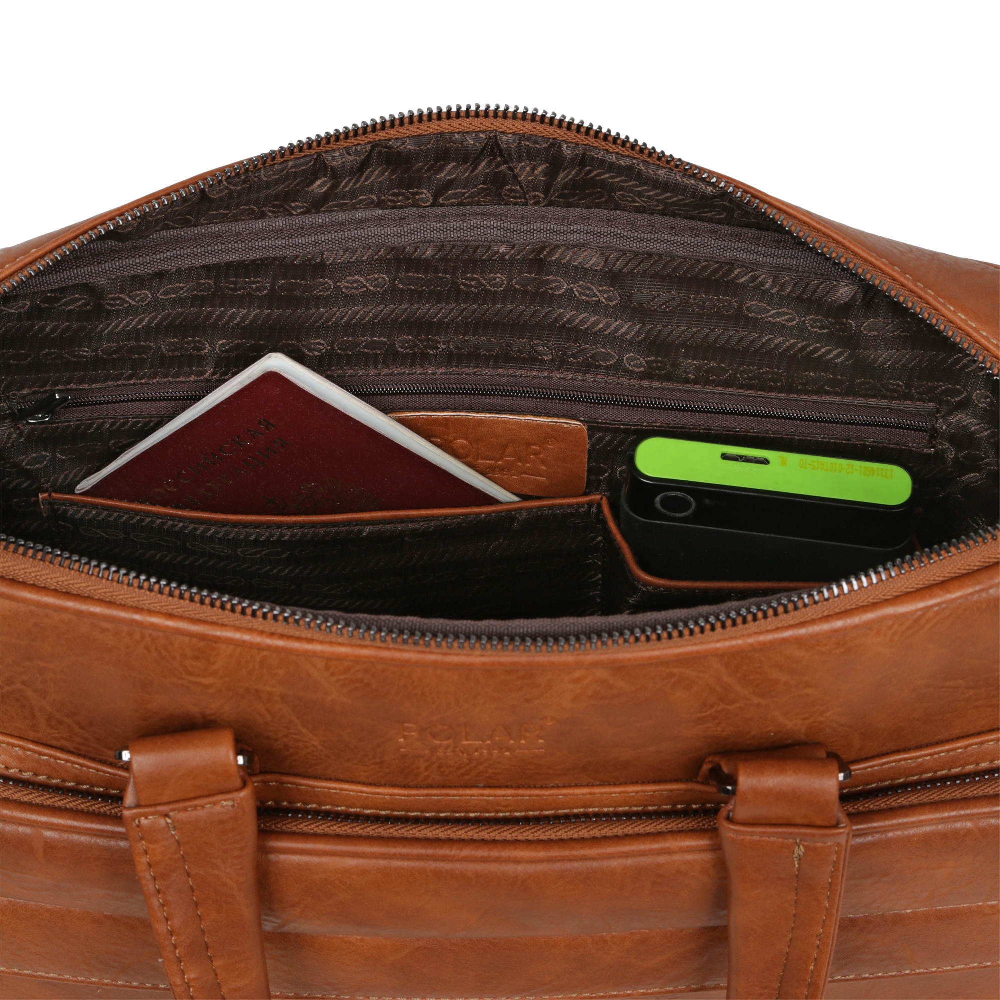 Мужской портфель фирмы Polar выполнен из экокожи. Портфель имеет одно основное отделение, которое закрывается на металлическую молнию. Внутри есть отделение для электронных устройств или ноутбука с диагональю до 15” и открытый кармашек. Модель вмещает формат A4. Спереди есть большой вместительный карман на молнии. Сзади сумки есть также карман на молнии. Высота ручек 15 см, в комплекте есть регулируемый наплечный ремень, максимальная длина 140 см.