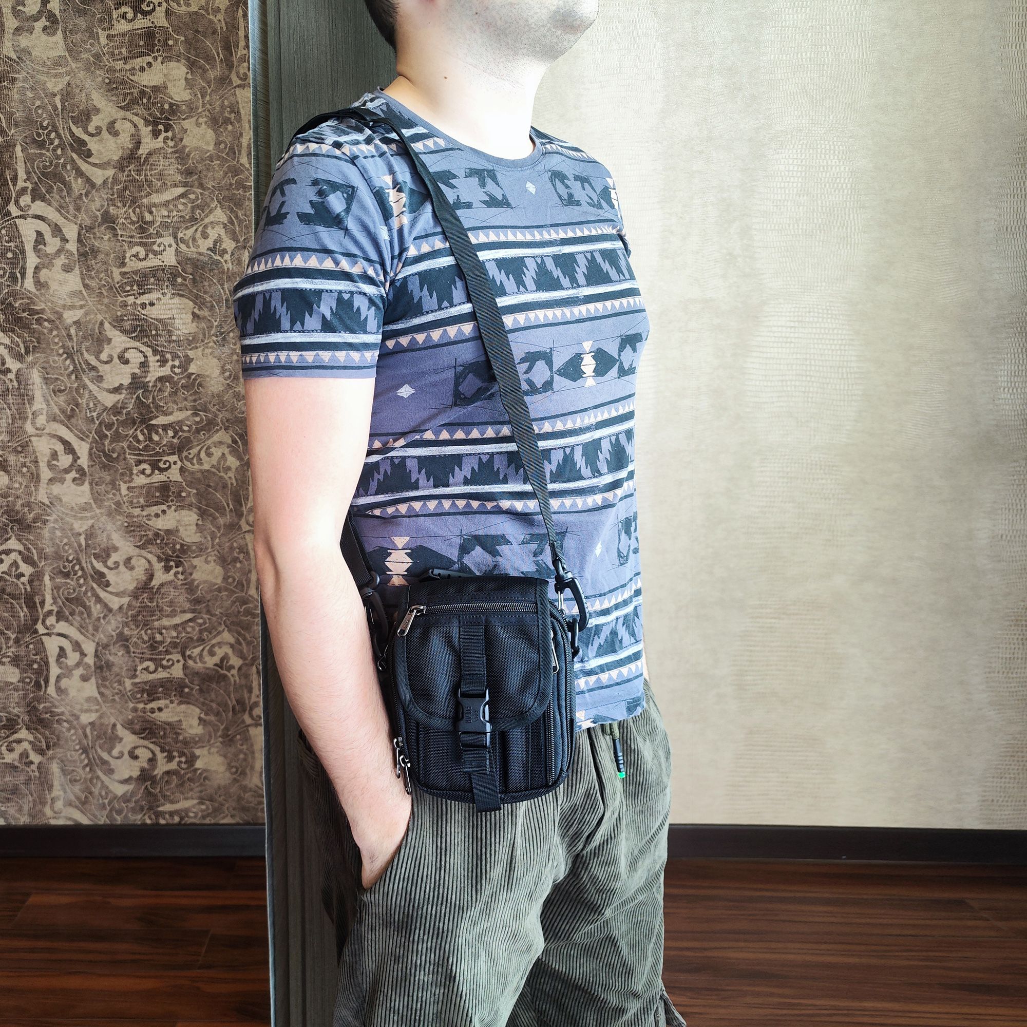Сумка для документов. Внутри - один отдел. Снаружи — один карман на молнии. Сумку можно носить и на плече, и на поясе.