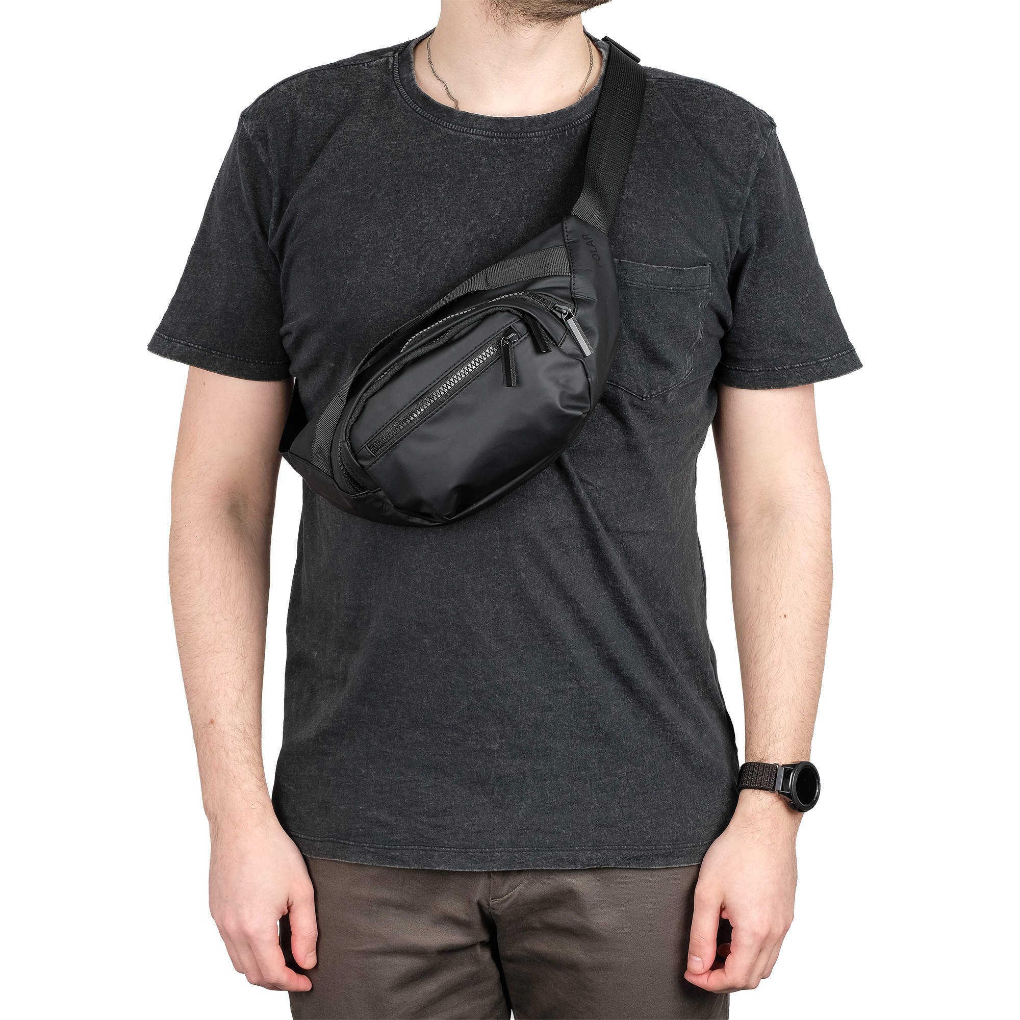 Поясная молодёжная сумка POLAR выполнена из водоотталкивающего полиэстера и прекрасно подходит для пеших прогулок и занятий спортом в черте города и на природе. Сумка состоит из двух отделений, которые закрываются на пластиковую молнию. Спереди накладной карман, закрывающийся на молнию. Модель очень удобная и комфортная. Сумку так же можно носить на кисти руки с помощью ручки. Максимальная длина ремня 118 см.
