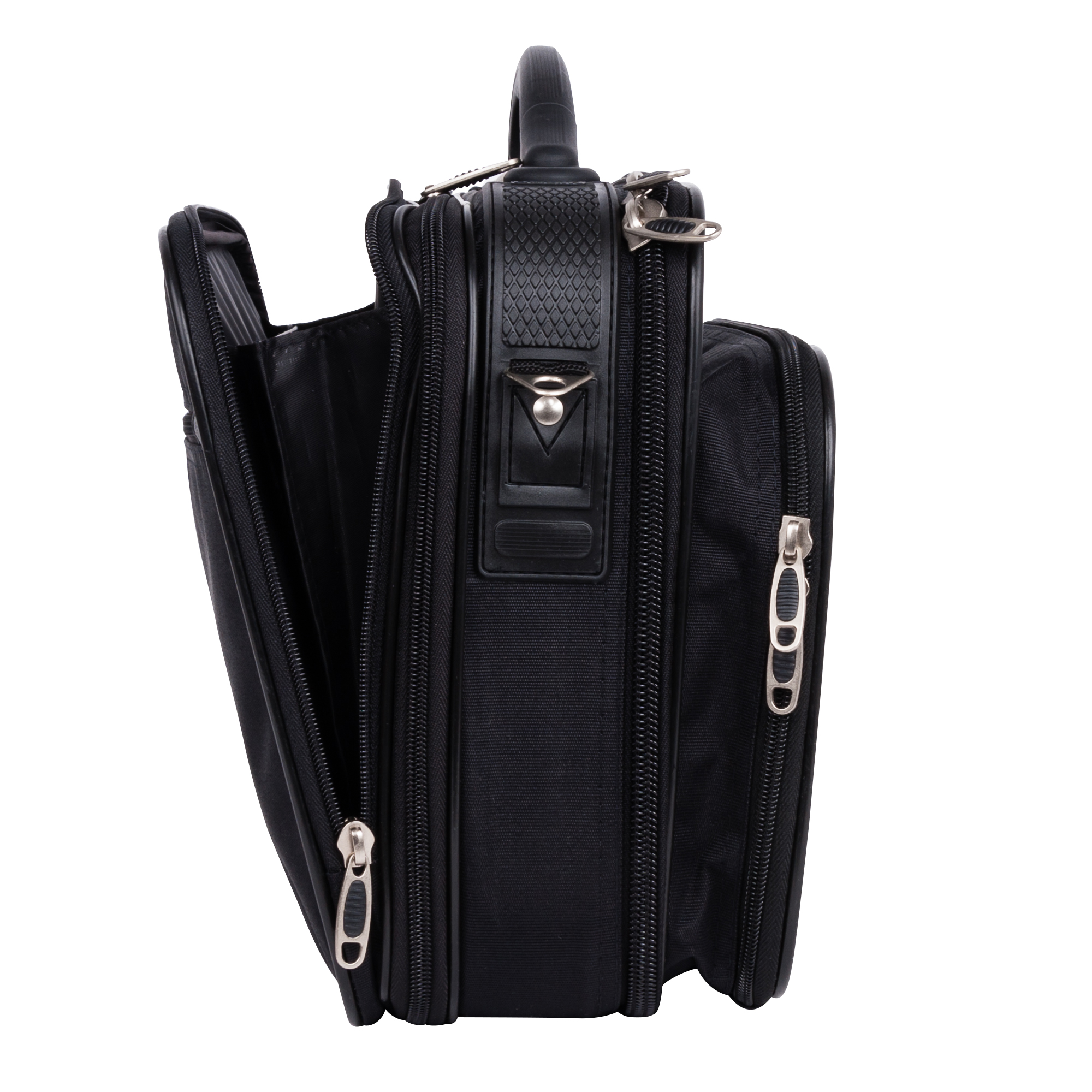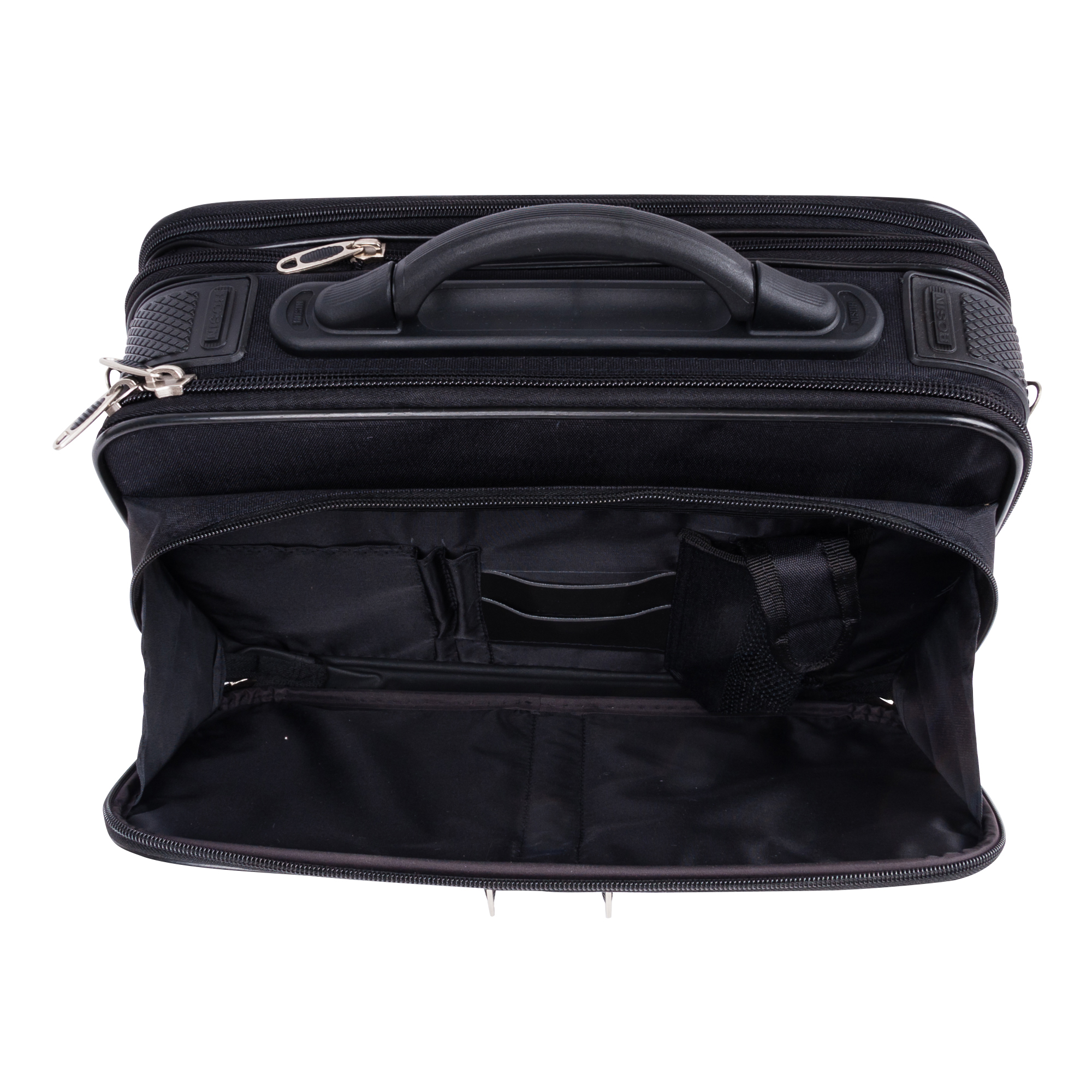 Кейс раздвижной фирмы Rosin. Внутри большое отделение с фиксатором под документы. Спереди большой карман на молнии, внутри которого органайзер, и два небольших кармана на молнии. Сзади большой карман на молнии с двумя секциями под бумаги и документы. Основное отделение увеличивается в объеме на 5 см. В комплекте идет плечевой ремень.