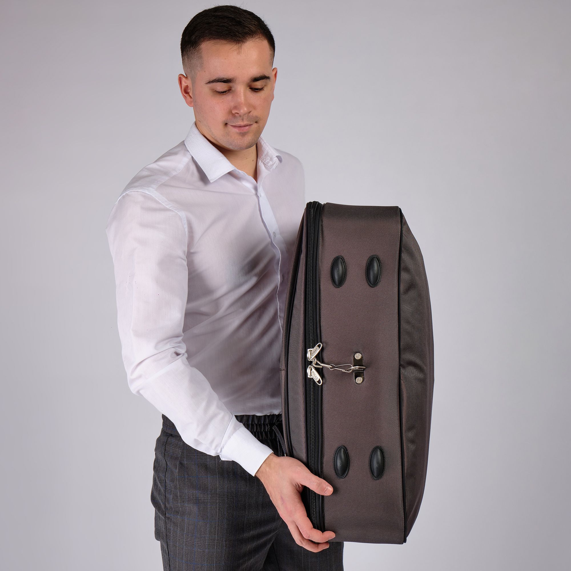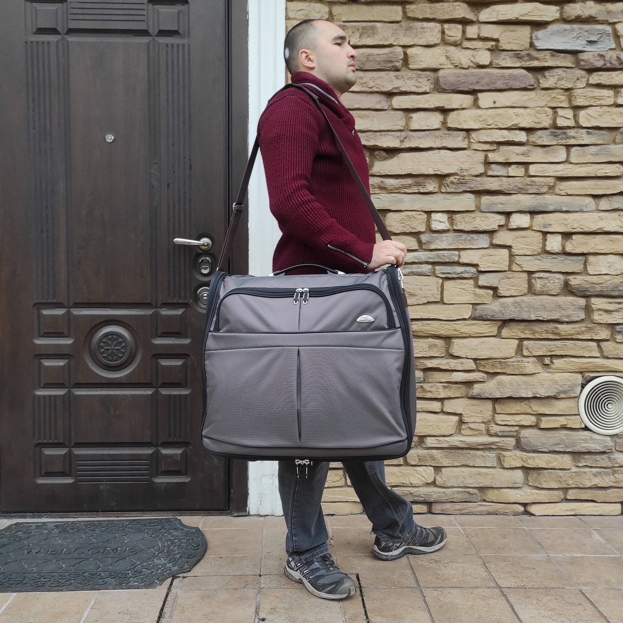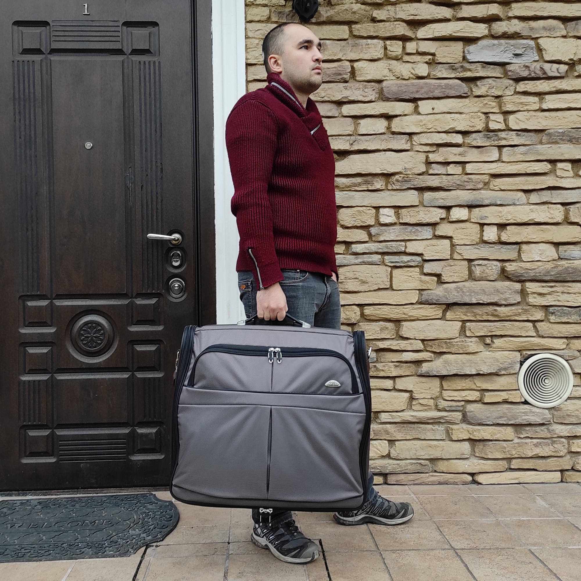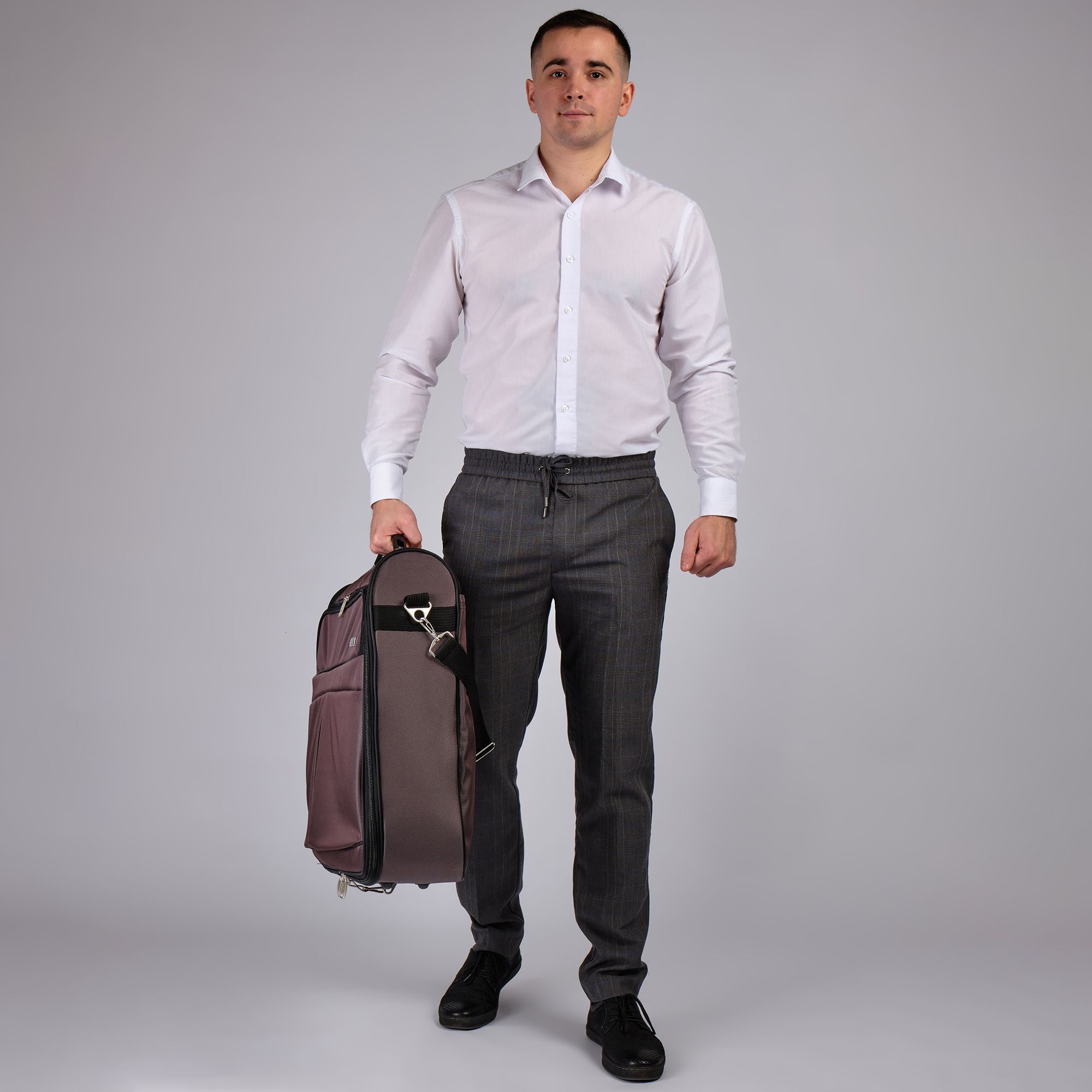 Портплед POLAR Полар – это дорожная сумка – чехол для переноски и хранения костюмов, рубашек, платья. Изготовлен из материалов премиум класса, высококачественный полиэстер, надежный прочный с водоотталкивающей пропиткой, который не выгорает, не трескается на морозе, устойчив к перепаду температур. Портплед для одежды удобен для перевозки деловых костюмов в командировке. Внутри сумки-портпледа фиксатор для одежды с креплением на 4 вешалки. В портпледе есть отделение на липучке для рубашек, футболок с фиксирующими ремнями. Большой глубокий карман на резинке для необходимых вещей, которые нужно взять с собой (галстук, платок, шарф, папка с документами, кошелек, майка, футболка и другое). Снаружи, на передней стенке портпледа, имеется объёмный и плоский карман на молнии для деловых бумаг и папок. Задний большой карман на молнии. Портплед для одежды мужской, женский, унисекс. Для удобства переноски есть плечевой ремень и надежная ручка для переноски. Вешалка в комплект не входит. Перед покупкой уточните у своего авиаперевозчика допустимые габариты для провоза ручной клади, чтобы определить подходит вам эта модель или нет.
