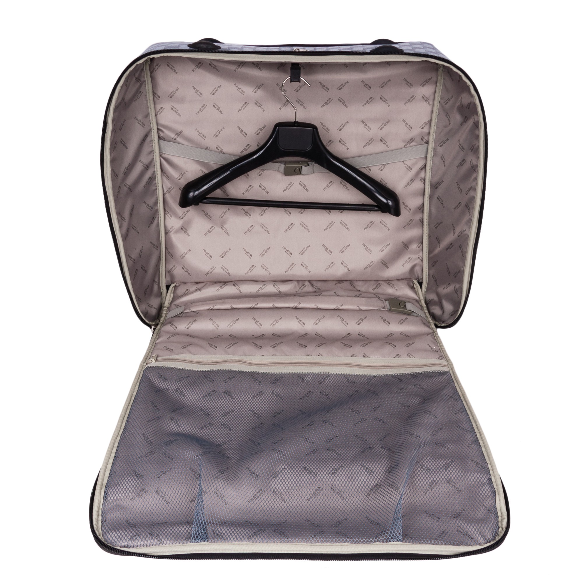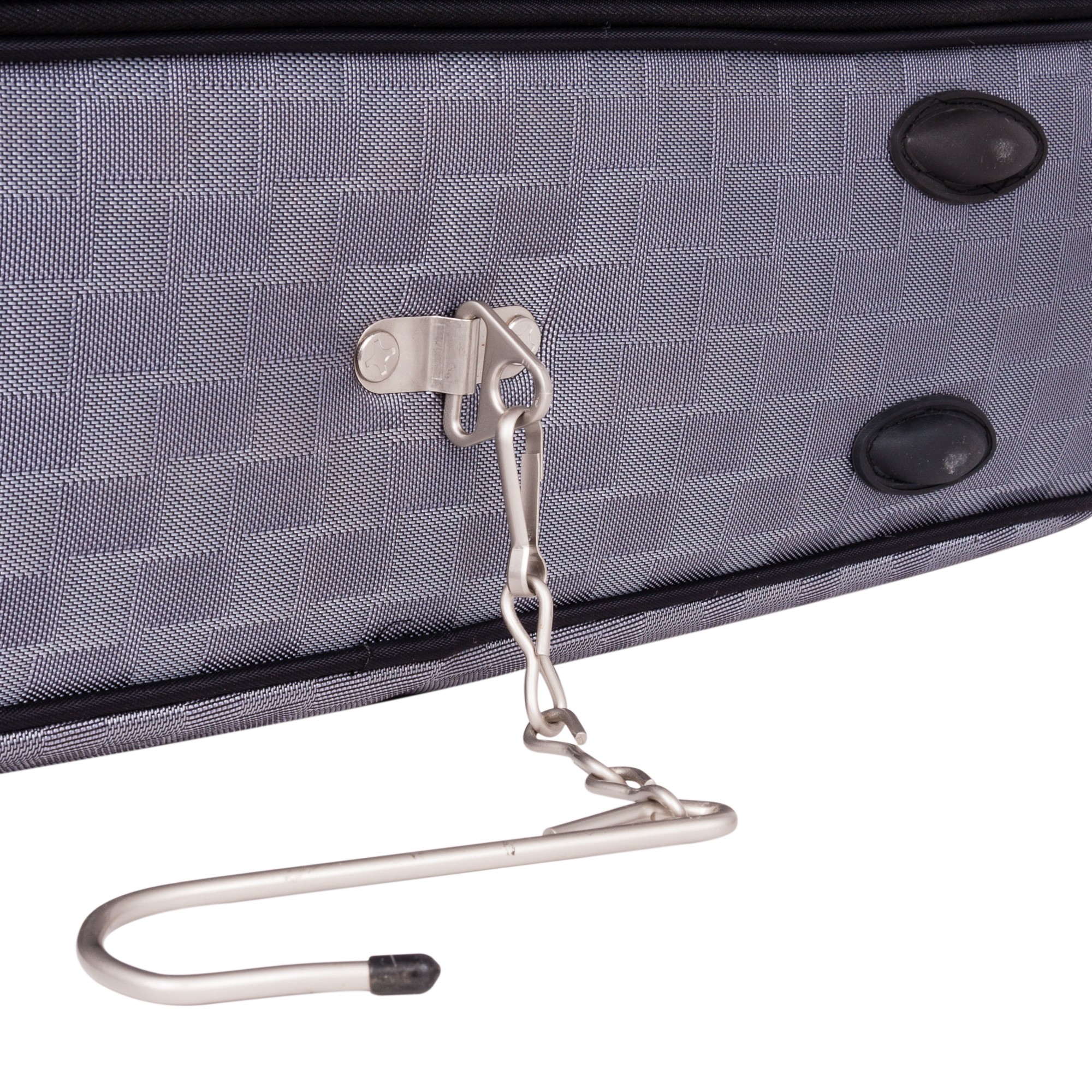 Вешалка в комплект не входит. Перед покупкой уточните у своего авиаперевозчика допустимые габариты для провоза ручной клади, чтобы определить подходит вам эта модель или нет.