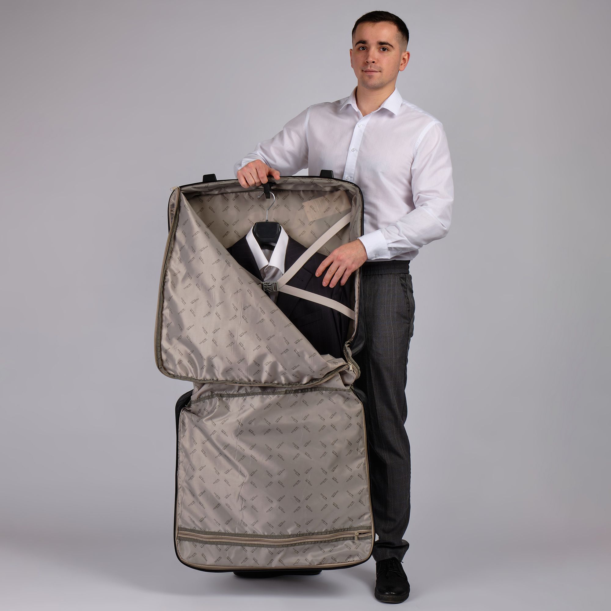 Портплед фирмы Polar на двух колёсах выполнен из полиэстера и предназначен для перевозки деловых костюмов в командировке. Портплед состоит из основного отделения в форме чехла , внутри основного отделения расположен фиксатор багажа. Снаружи, на передней части портпледа, имеется объёмный накладной карман на молнии. У портпледа есть две ручки (ручка для переноски и выдвижная ручка для перевозки, максимальная высота которой составляет 48см, а также крючок для хранения портпледа в шкафу).