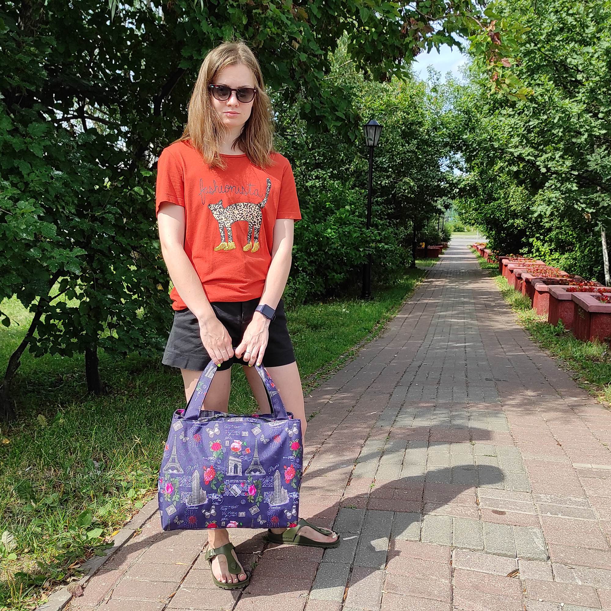 Сумка очень легкая, ее вес всего 400 грамм, очень качественно сшита, все швы ровные, на плотной подкладке. Сумка выдерживает вес до 10 кг.