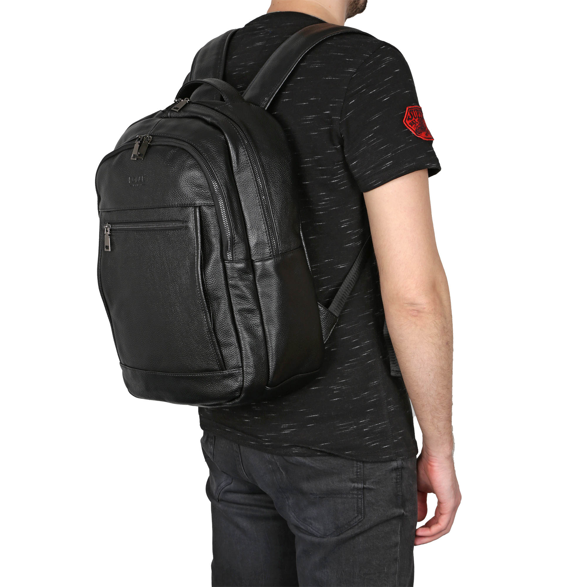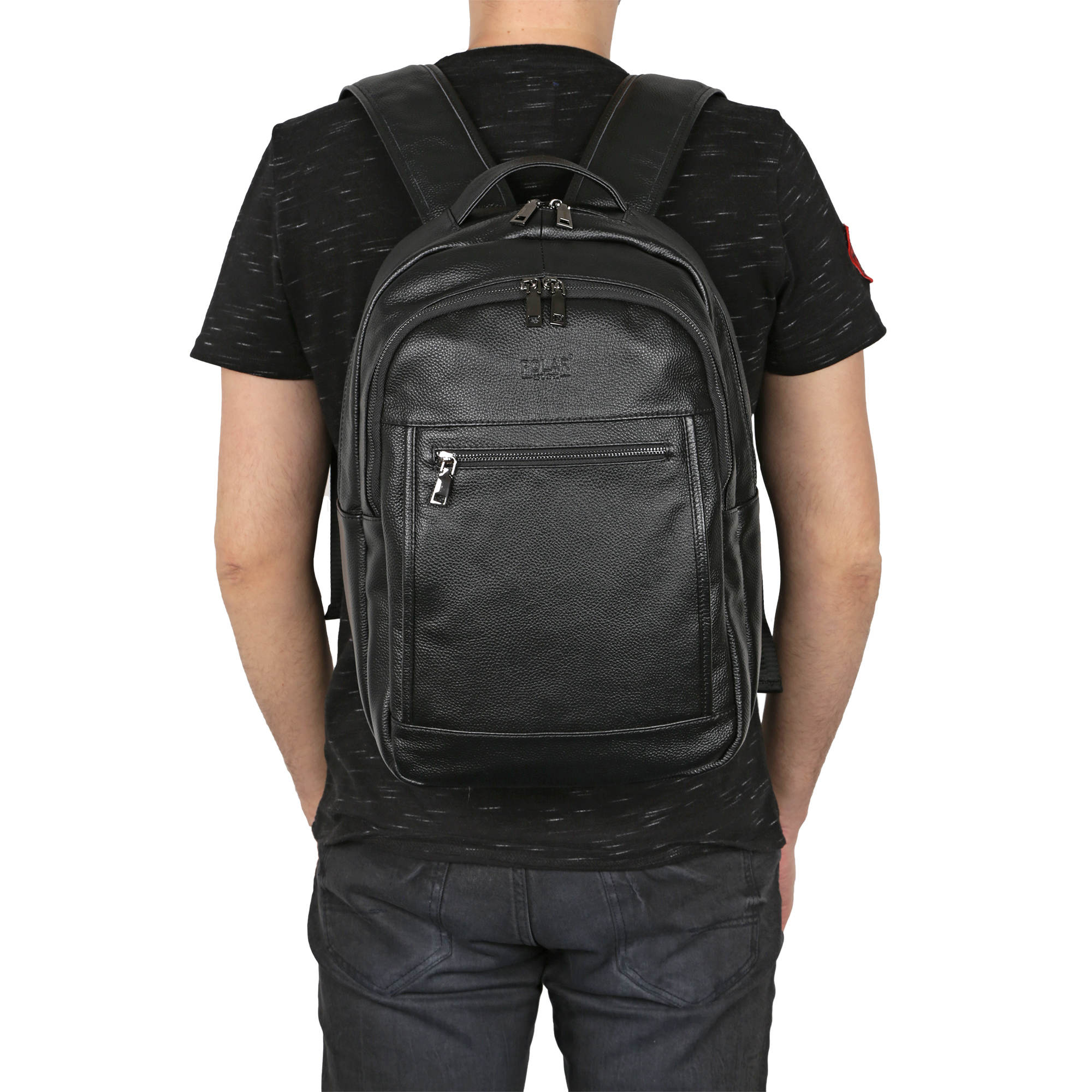 Стильный мужской рюкзак фирмы Polar изготовлен из натуральной кожи. Модель отлично подойдет для повседневного ношения и прогулками с друзьями. Основное отделение закрывается на металлическую молнию. Внутри небольшой карман на молнии для карточек, ключей и один открытый кармашек. На передней стенке рюкзака два накладных кармана на молнии, на обратной стороне карман на молнии. Длина лямок 101 см.,  ширина 7 см.