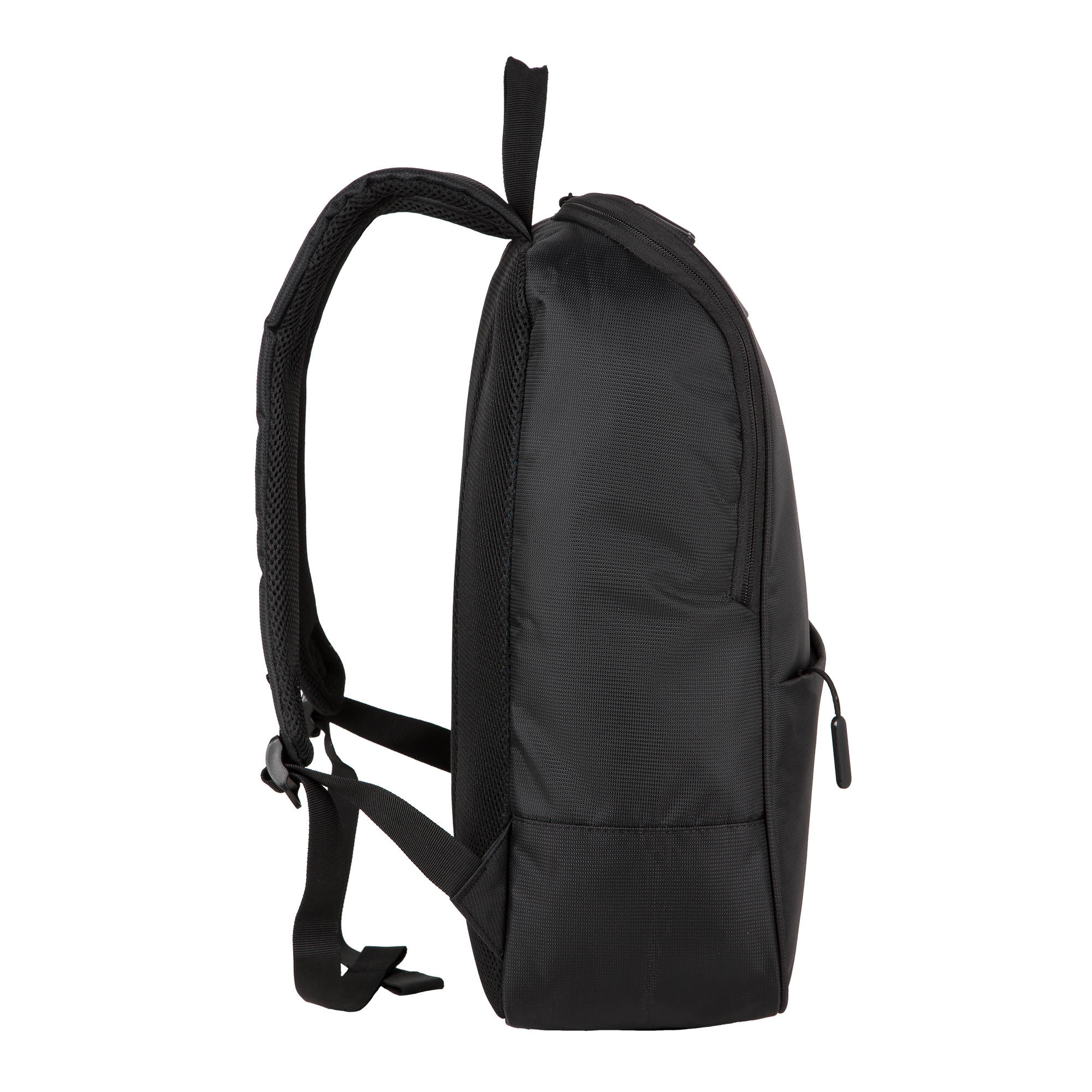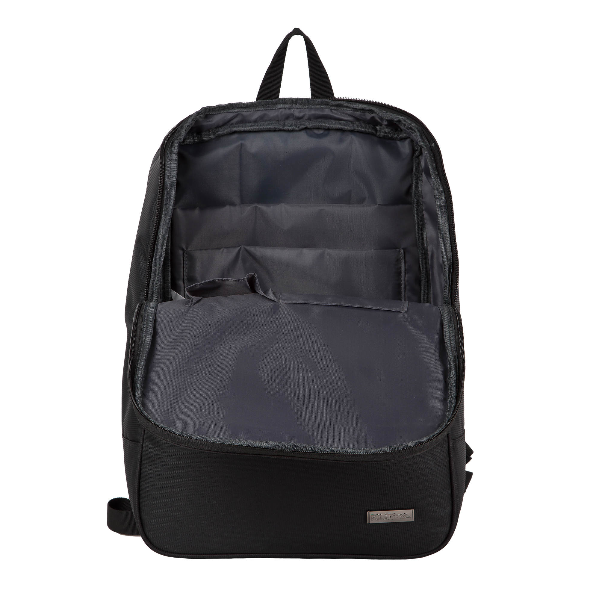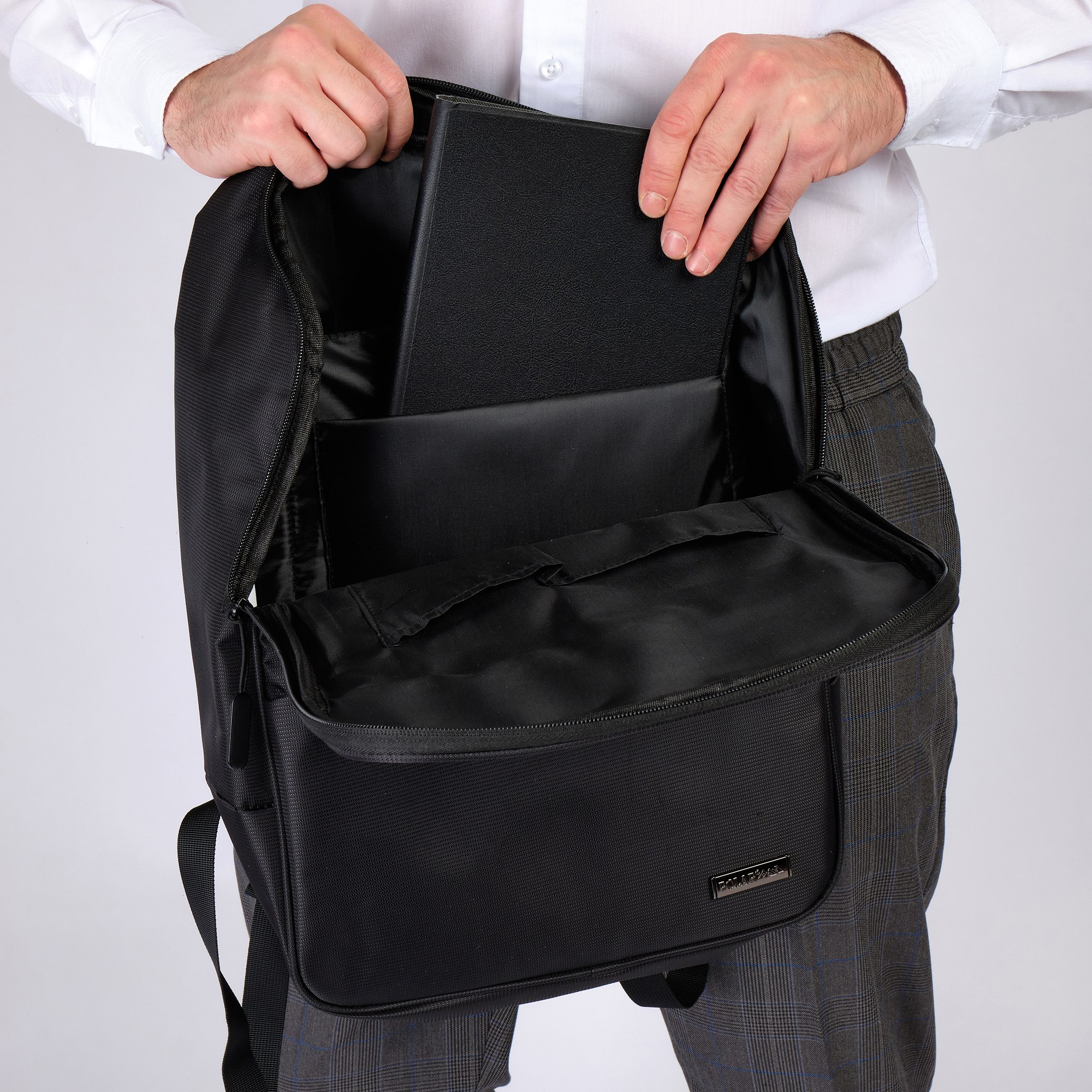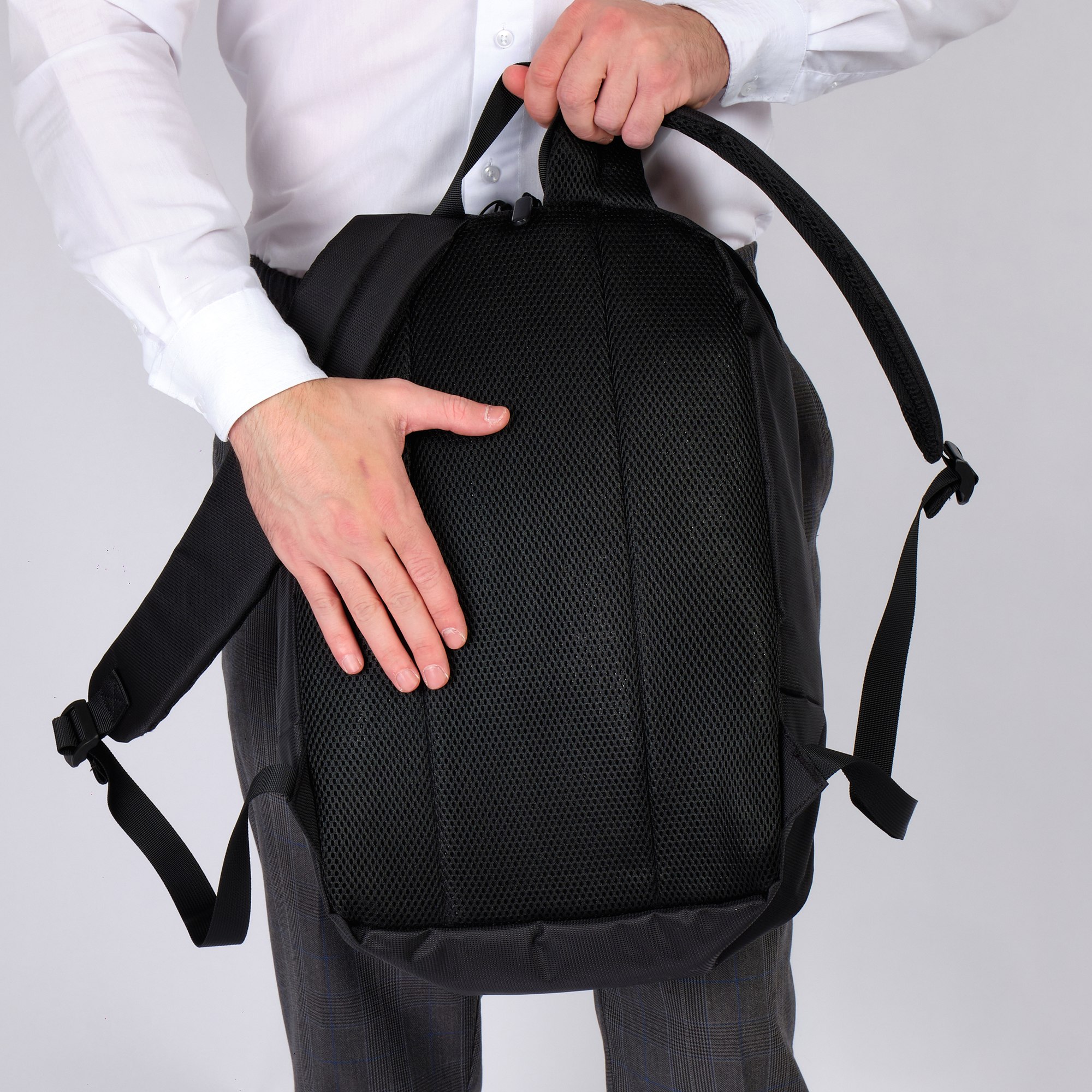 На спинке рюкзака есть открытый отдел для ноутбука с диагональю до 17 дюймов, над ним — карман для планшета или электронной книги. Размеры отсека для ноутбука 27 x 41 x 3.5, а отсека для планшета 21 x 34 x 1.