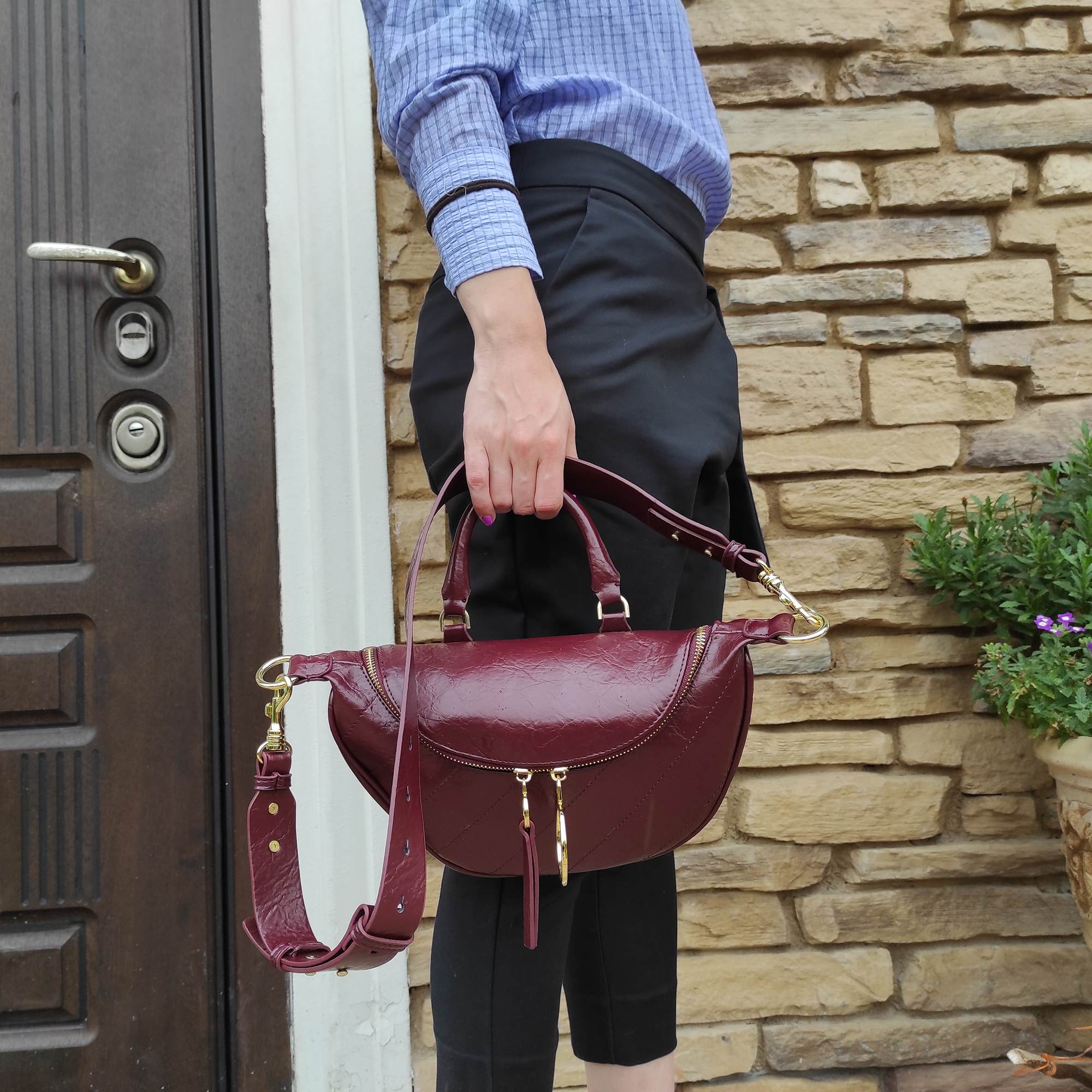 Функциональная сумка фирмы Pola из экокожи, превращает спортивную конструкцию в истинное олицетворение непринужденной элегантности. Модель можно носить в качестве поясной сумки, а также через плечо или на плече для создания еще более эффектного и яркого образа. Сумка закрывается на металлическую молнию. Внутри карман на молнии для документов и кармашек для визиток, карточек. Высота ручки 11см. Максимальная длина поясного ремня 88 см. Цвет фурнитуры-золото.