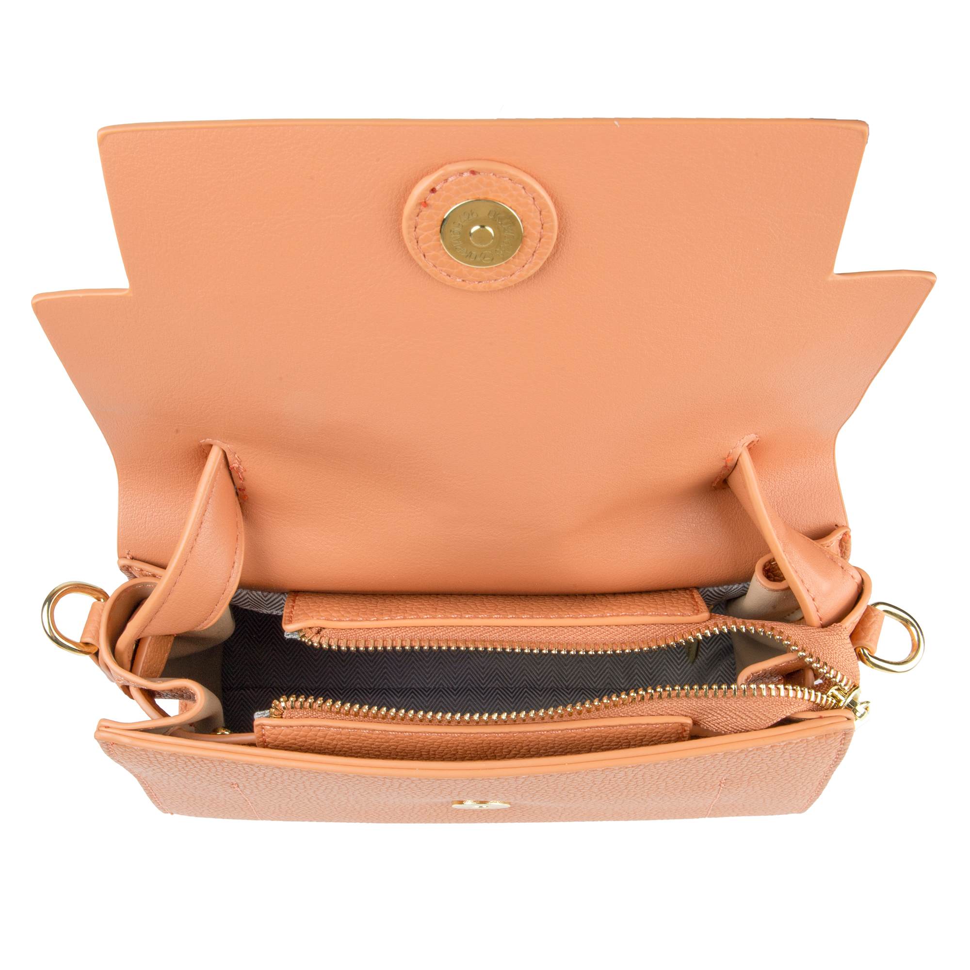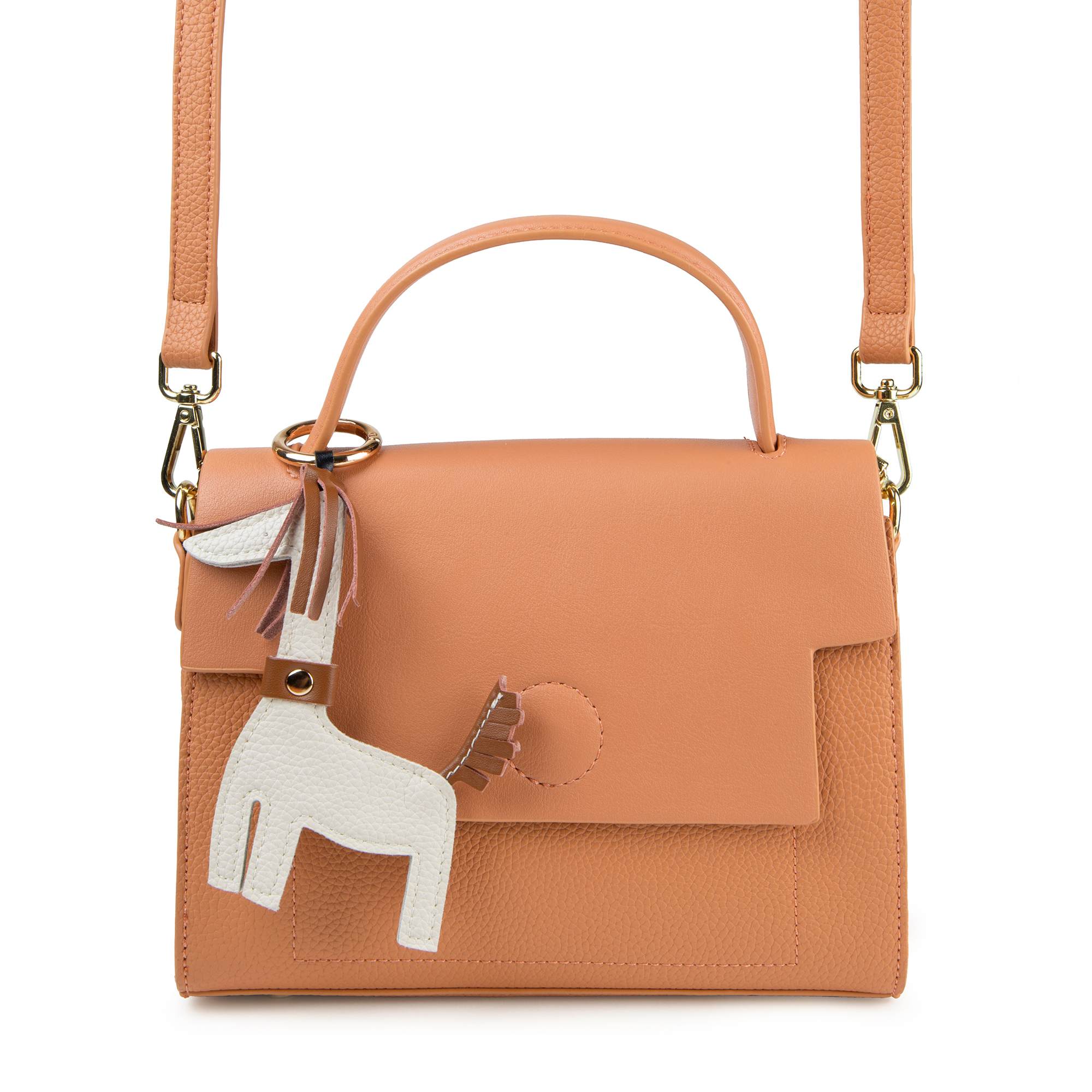 Стильная сумка фирмы Pola выполнена из экокожи со съемным брелком ламы и является прекрасным аксессуаром. Основное отделение на молнии, сверху закрывается на металлическую магнитную кнопку. Внутри один карман на молнии и один открытый кармашек. Сзади сумки карман на молнии. У сумки есть ручка для переноски, высота которой составляет 9 см и два съёмных ремешка, тонкий регулируемый ремешок длина которого- 115см, и длина второго 93см, что позволяет носить сумку на плече. Цвет фурнитуры-золото.