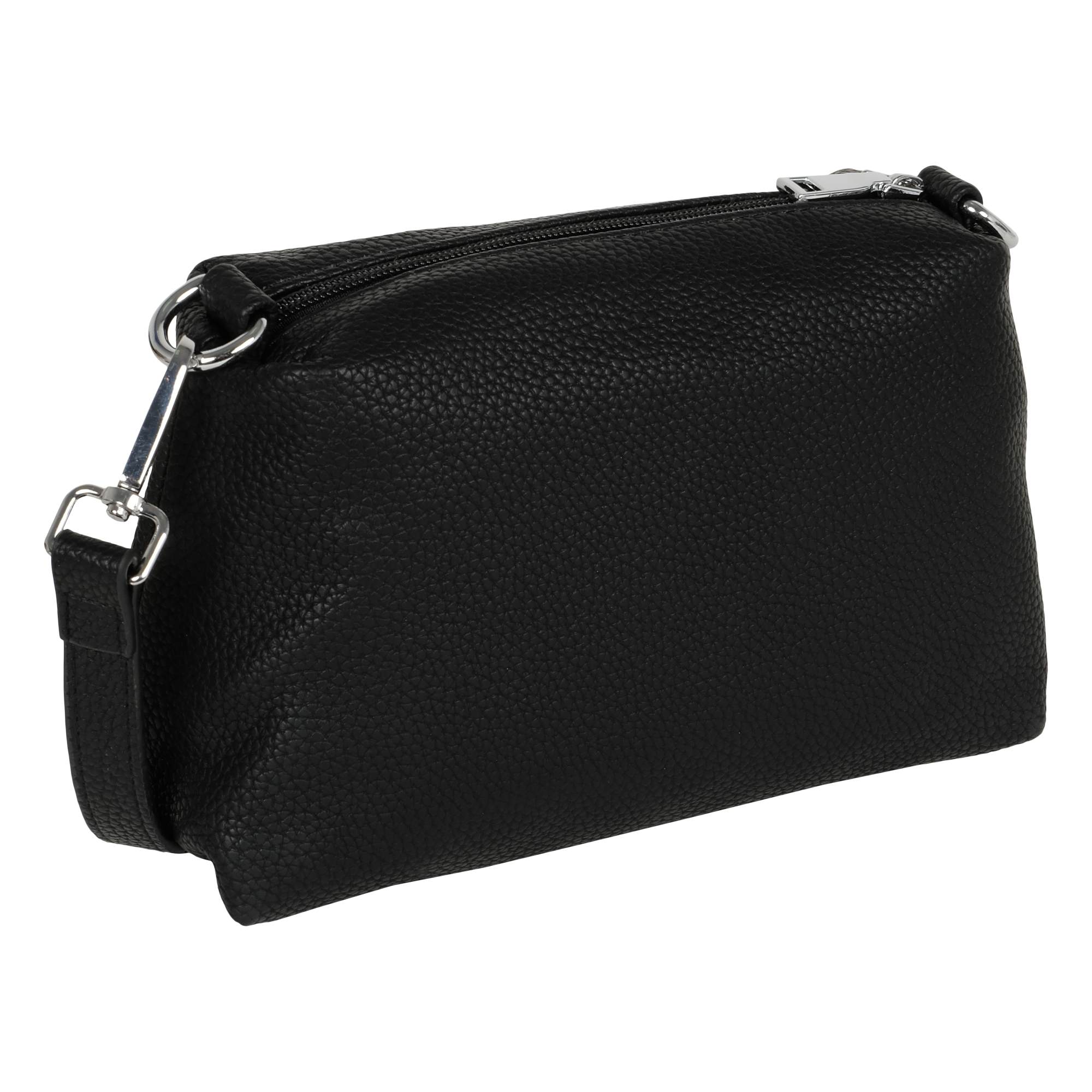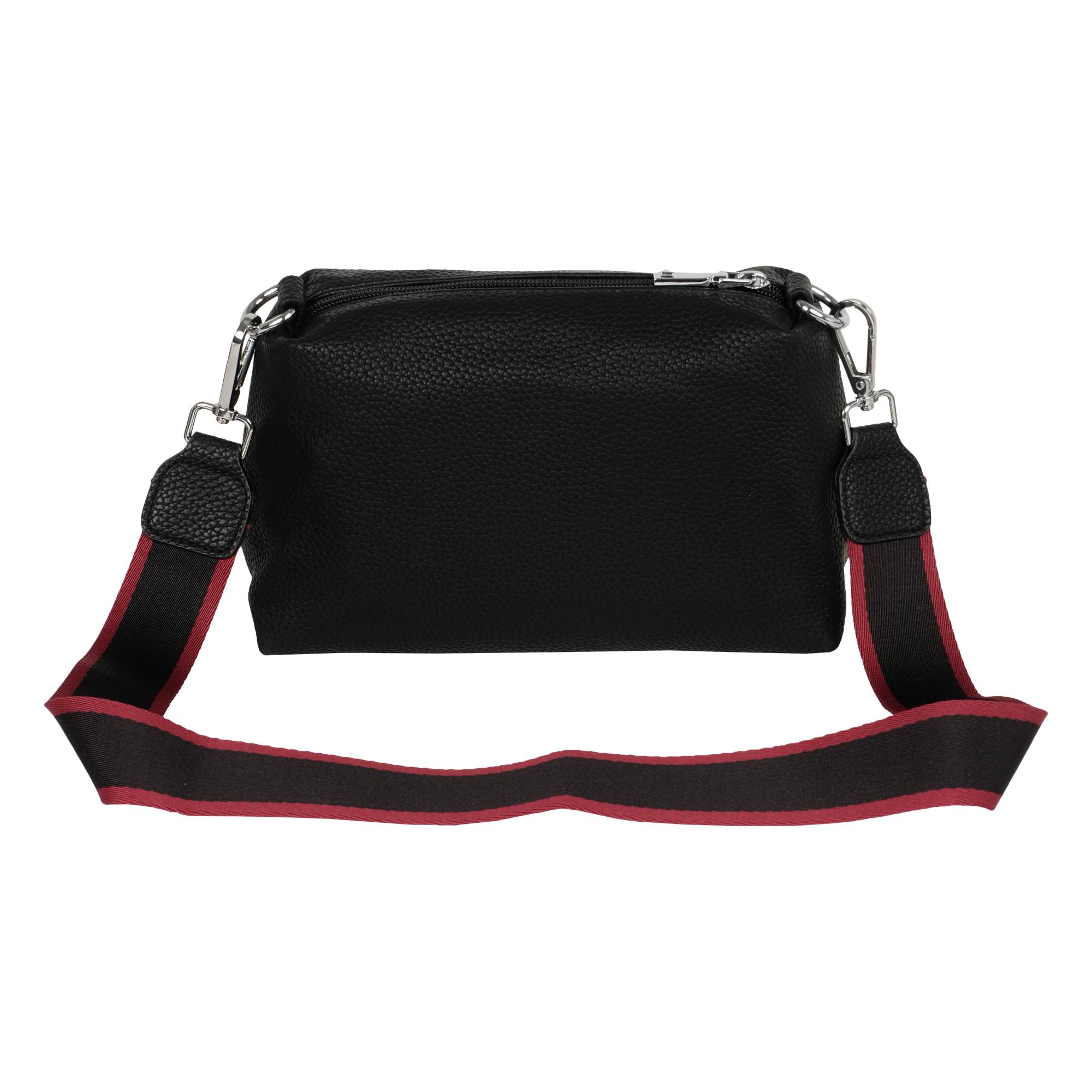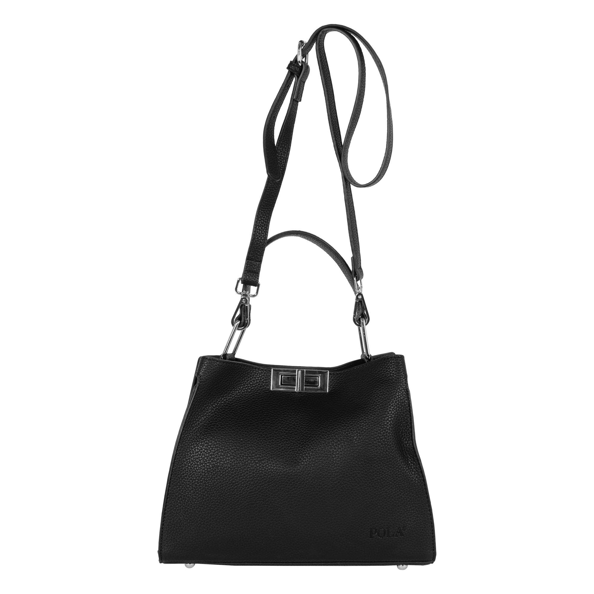 Стильная женская сумка фирмы Pola выполнена из экокожи. Основное отделение закрывается на металлический поворотный замок. Особенность модели состоит из сумки и кросс-боди, можно носить как самостоятельную сумку. Закрывается на металлическую молнию. Внутри сумочки кросс-боди маленький карман на молнии и два открытых. Высота ручки для переноски, высота которой составляет 14 см и два съёмных, ремешка, один тонкий регулируемый длина которого 115 см и 85 см второй текстильный ремешок. На дне сумки есть металлические ножки. Цвет фурнитуры-серебро.