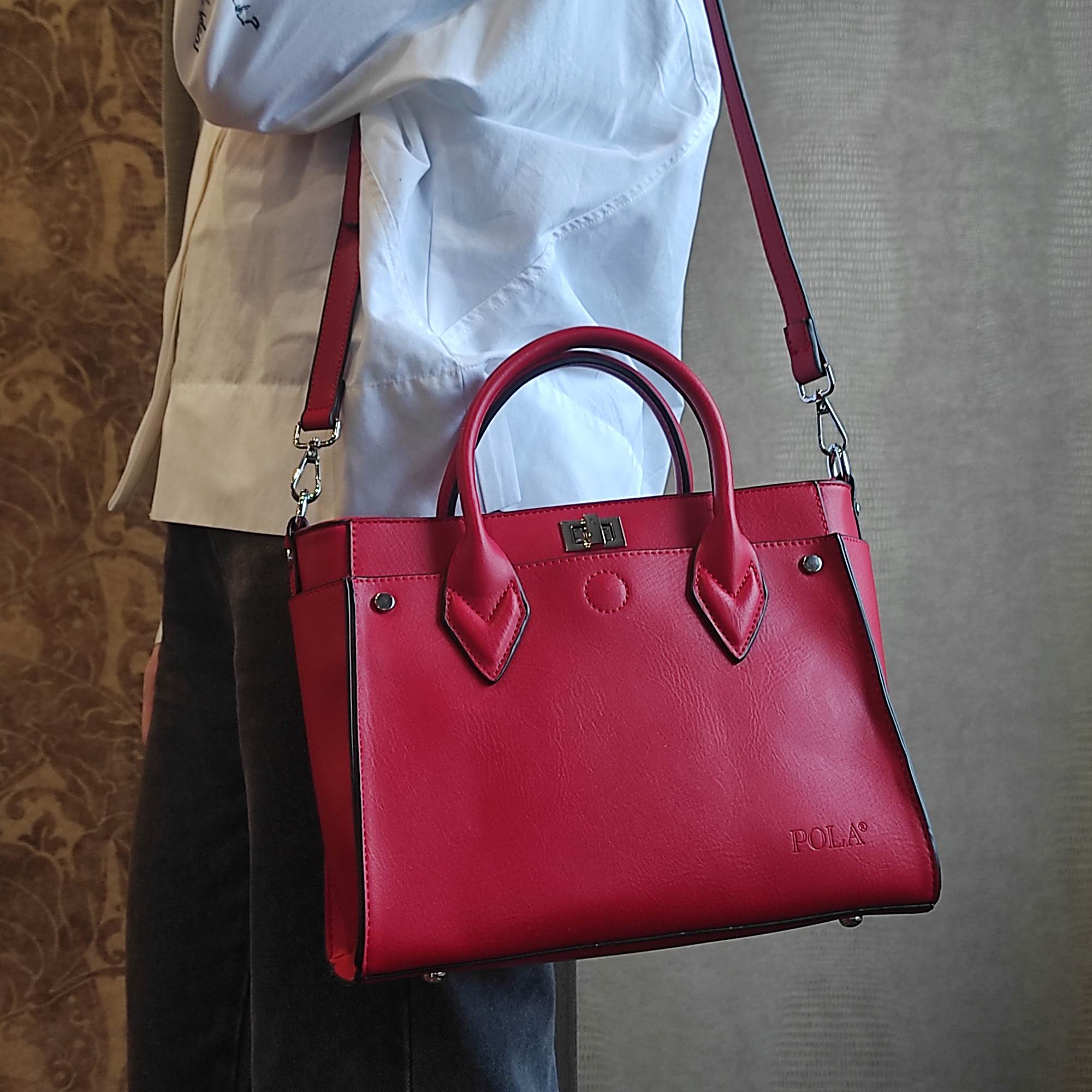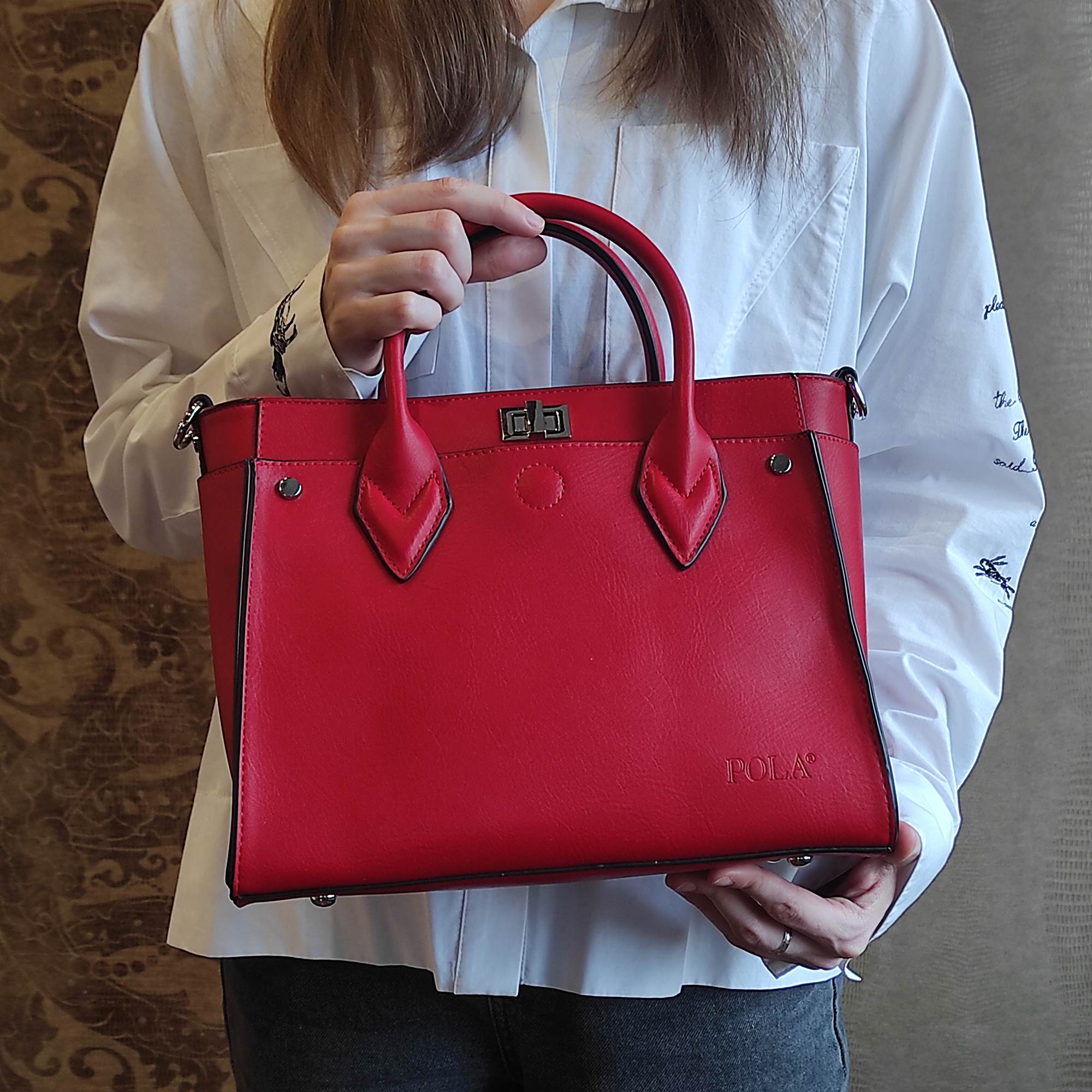 Стильная женская сумка-тоут с двумя ручками для переноски фирмы Pola выполнена из экокожи и предназначена для повседневного использования. Основное отделение закрывается на металлическую молнию и разделено кармашком на молнии на два отделения. Внутри сумочки есть маленький карман на молнии и два открытых кармашка. Отличительной особенностью данной модели является наличие с двух сторон боковых отделений в виде карманов на магнитной кнопке. Высота ручек 11 см. В комплекте два съёмных, регулируемых ремешка, один тонкий, длиной 115 см, из экокожи, второй ремешок из текстиля, длиной 90 см. Цвет фурнитуры-серебро.