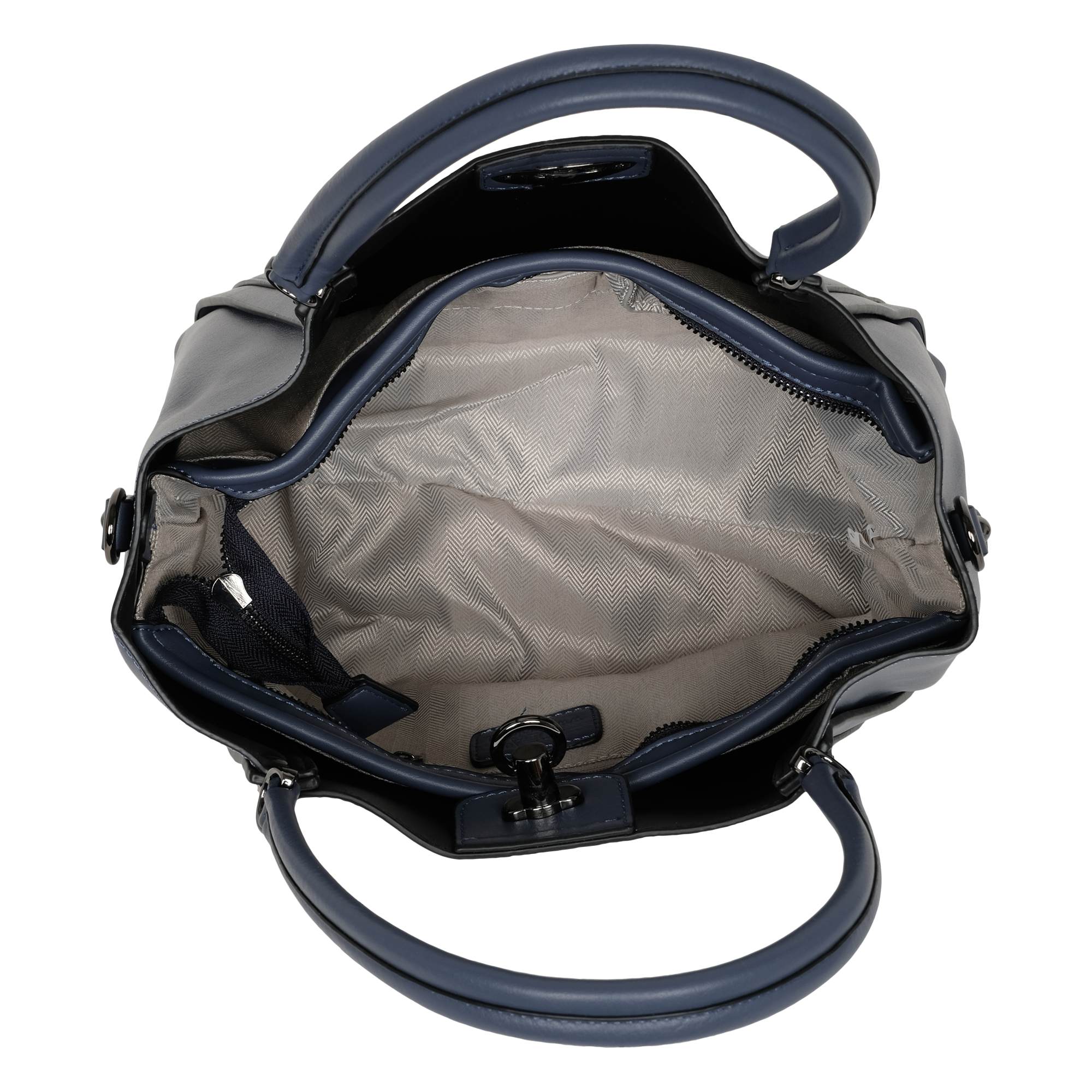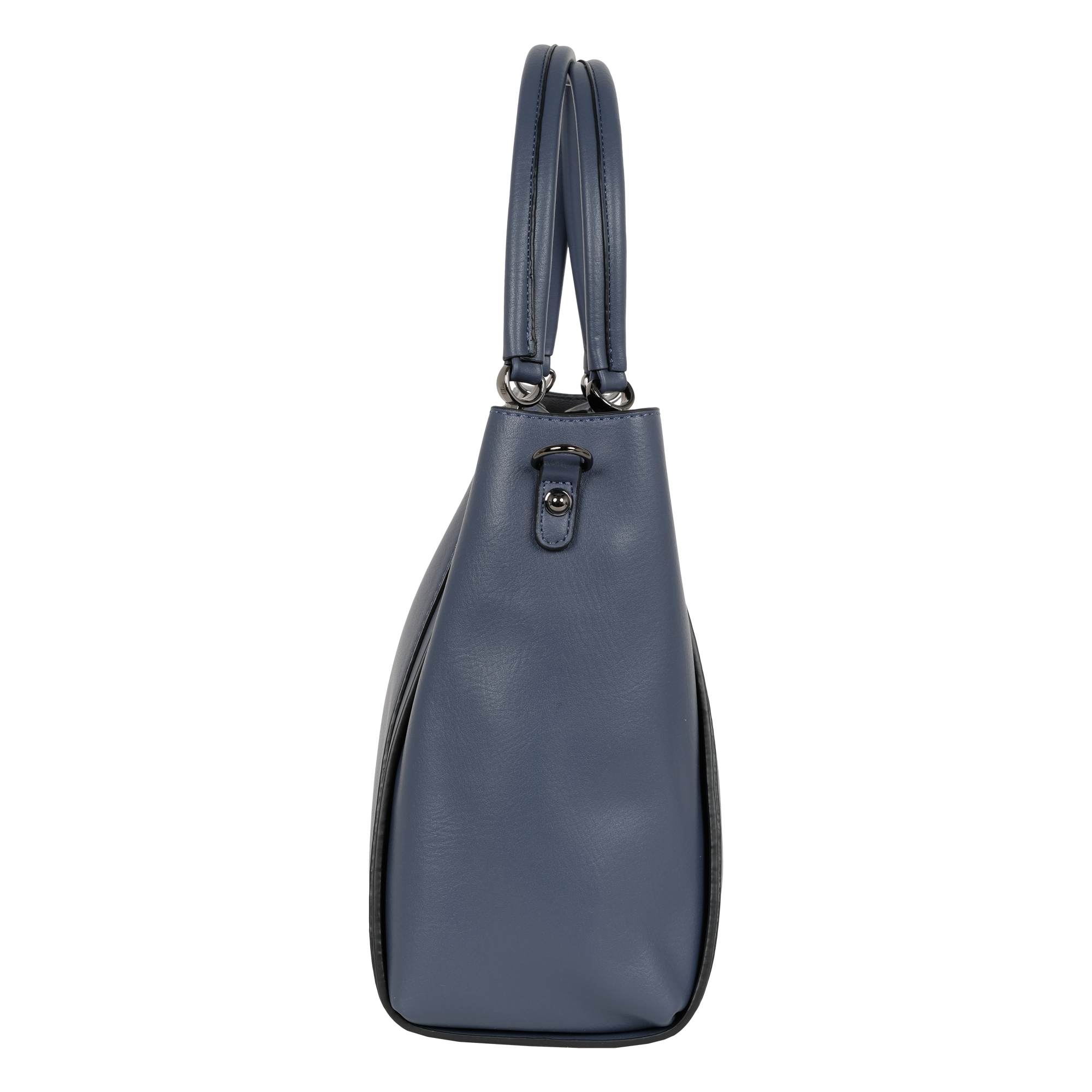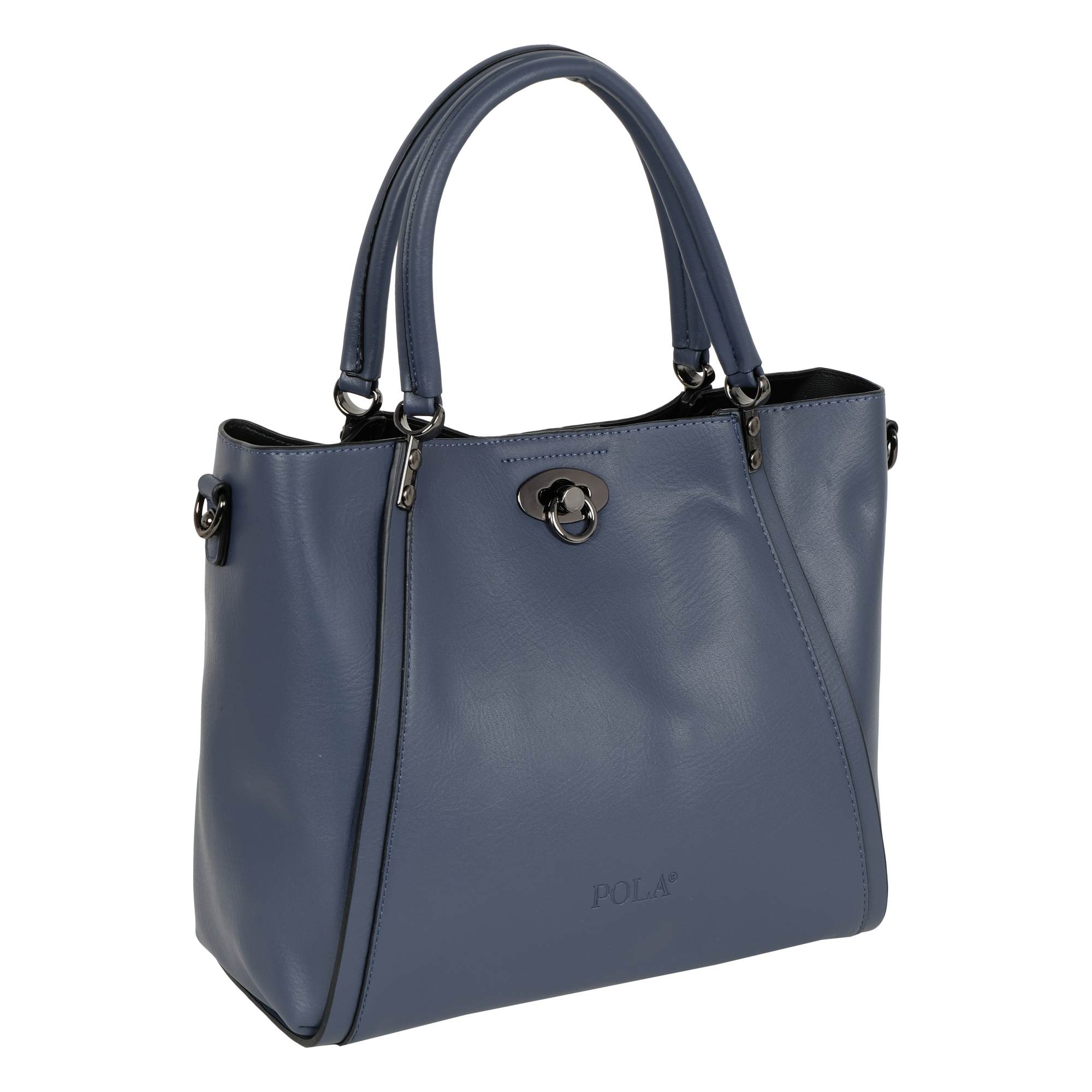 Стильная женская сумка-тоут с двумя ручками для переноски фирмы Pola выполнена из экокожи и предназначена для повседневного использования. Основное отделение закрывается на металлический замочек. Внутри сумка разделена кармашком на молнии на два отделения. Внутри кармашка есть маленький карман на молнии и два открытых кармашка. Высота ручек 14 см. У данной модели есть съёмный регулируемый ремень, максимальная длина которого составляет 115 см. Цвет фурнитуры-черный никель.