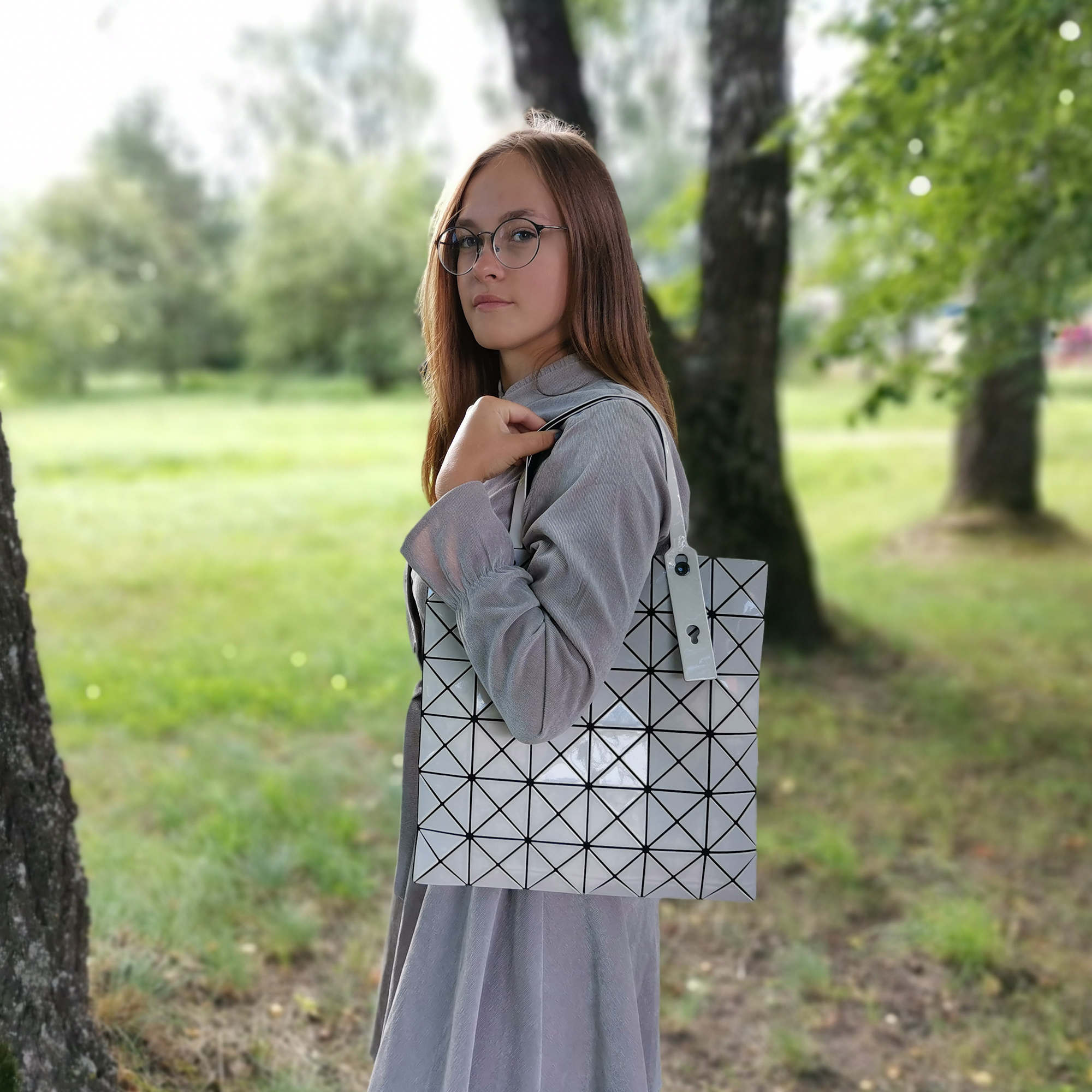 Ультрамодная ретро-сумка классической формы выполнена из мягкого силикона, благодаря этой особенности сумка может изменять форму (из плоской преобразуется в объёмную). Модель обладает глянцевой, ребристой поверхностью, которая переливается на свету, а также обтекаемой формой, что делает её невероятно уникальной и универсальной. Яркие цвета, впечатляющая эргономичность, неизбитый дизайн, высокое качество материала сумки станет совершенно незаменимой для активных, стильных, современных модниц, любящих ежедневный комфорт и желающих всегда быть в центре внимания. Основное отделение закрывается на пластиковую молнию, сумка имеет две ручки для переноски, высота которых составляет 16 см. Особенностью является то, что ручки можно регулировать по длине.