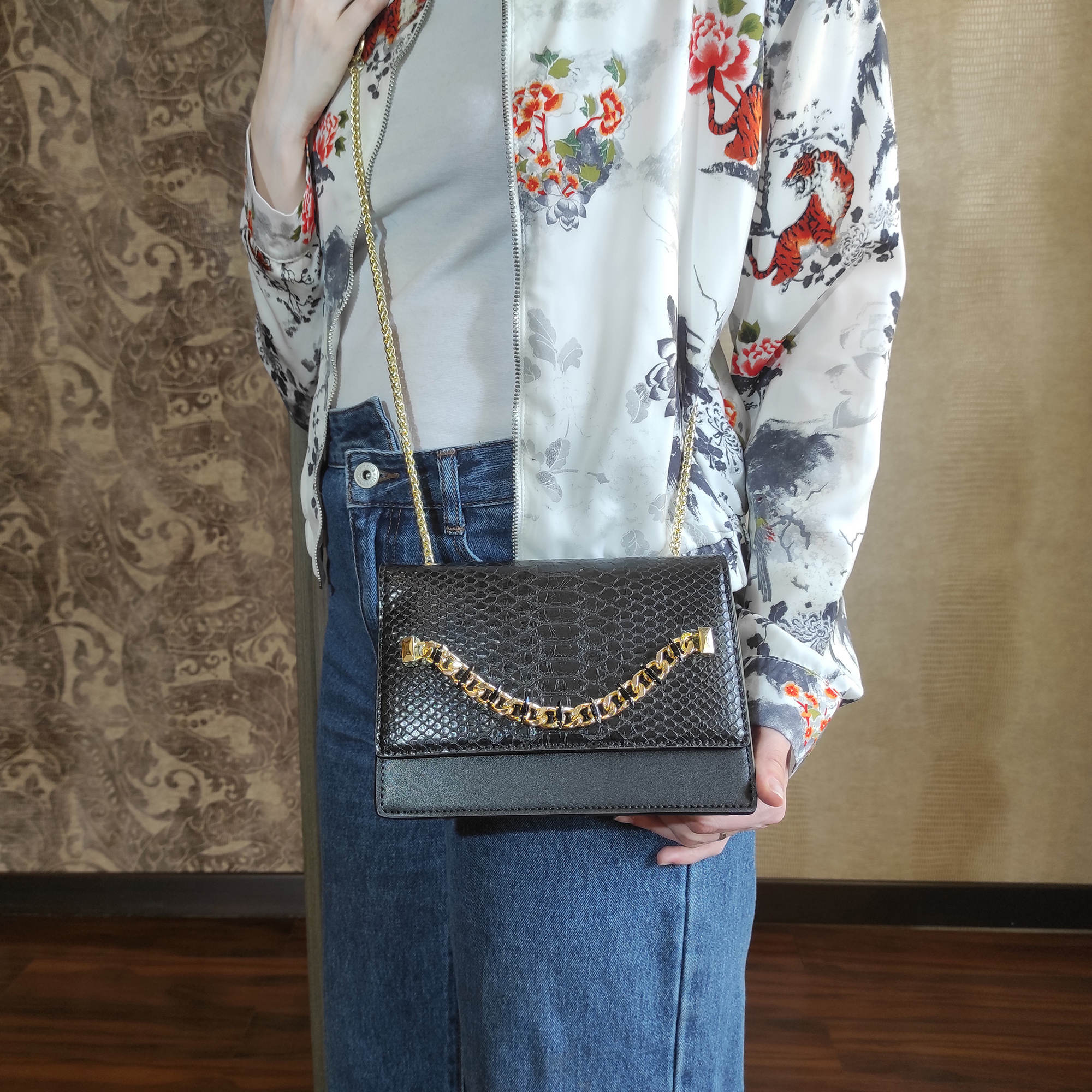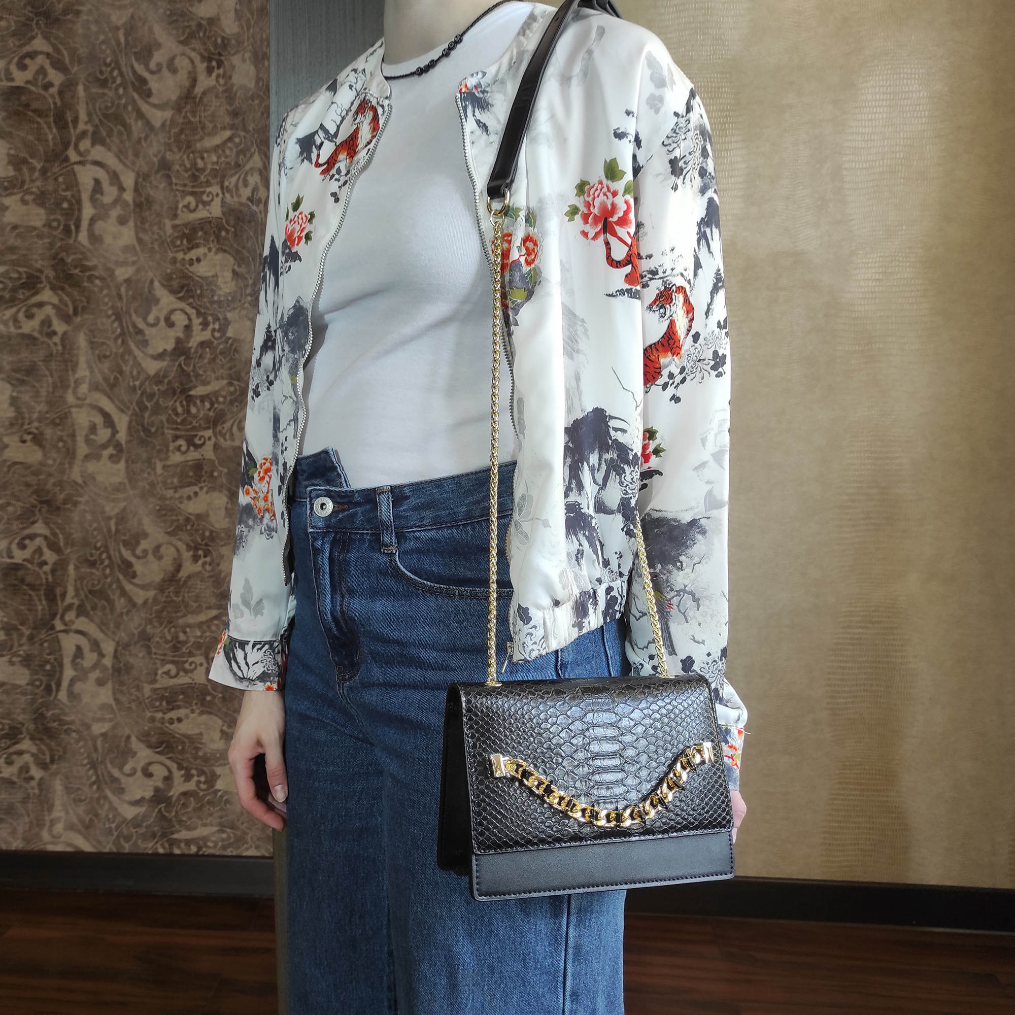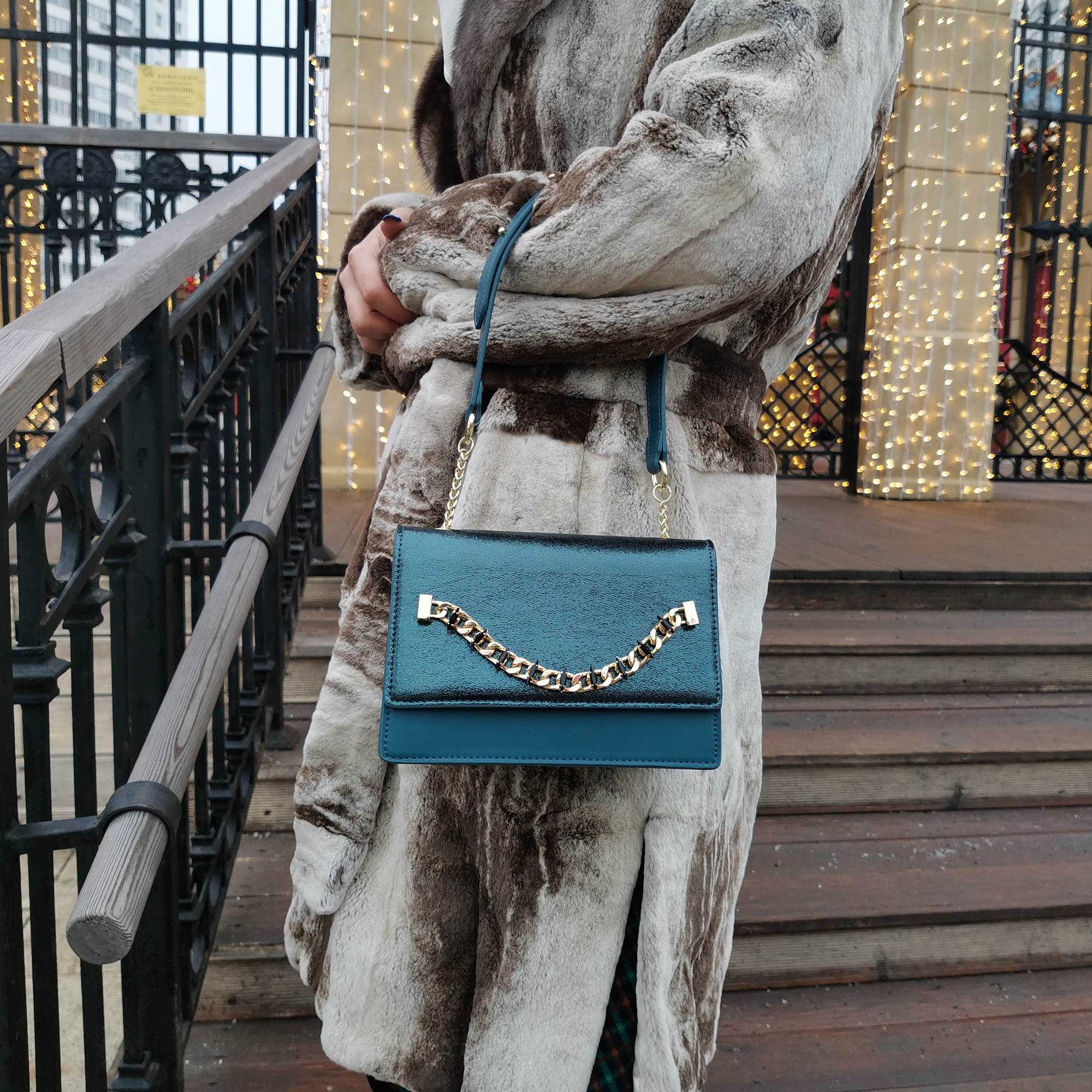 Модная, изысканная сумка фирмы Pola выполнена из экокожи и великолепно подходит стильным женщинам со вкусом. Изюминкой данной модели является наличие металлической цепочкой. Основное отделение закрывается магнитным клапаном. Внутри карман на молнии и открытый кармашек. Сзади сумки открытый карман. Ремень-цепочка, максимальная высота 54 см. Цвет фурнитуры-золото.
