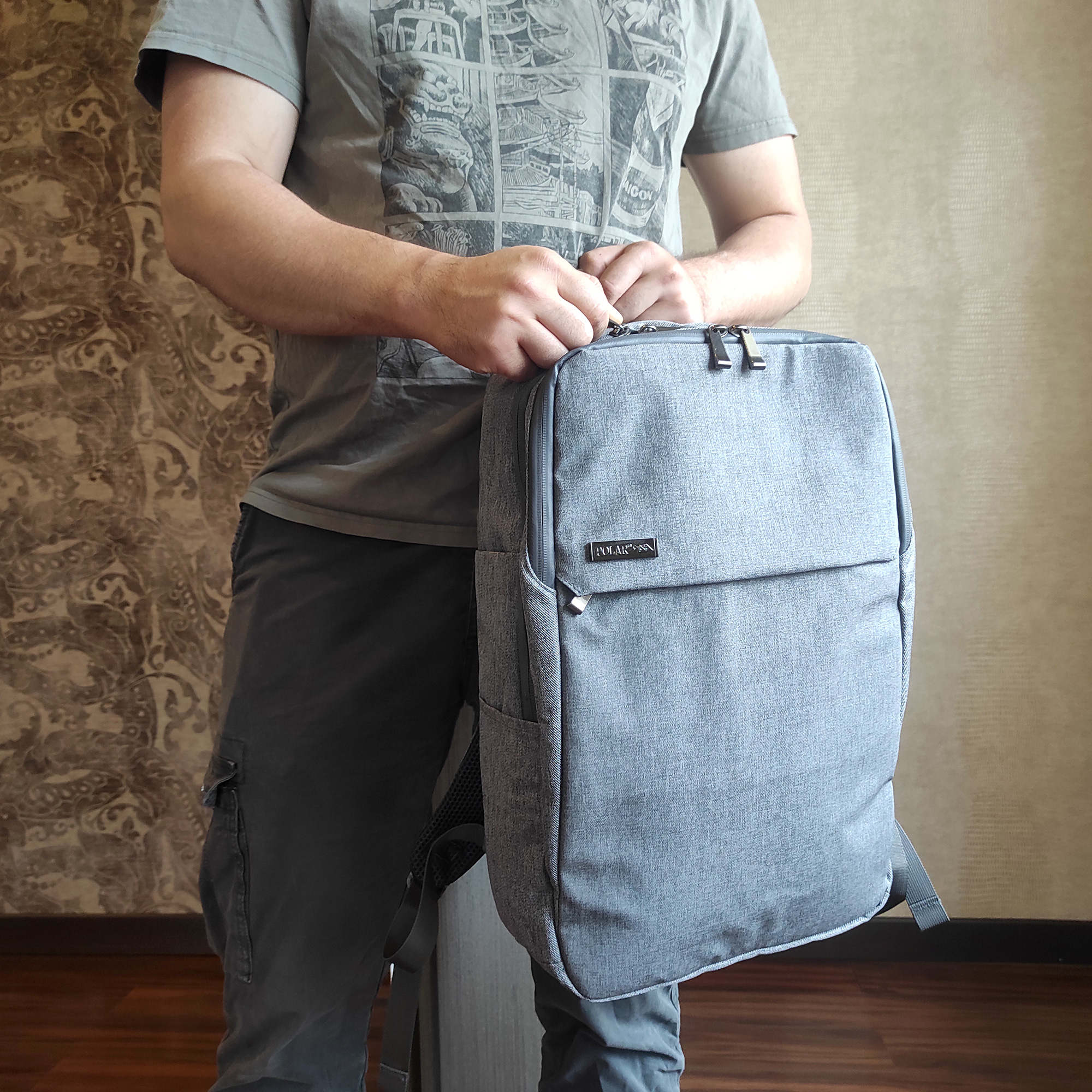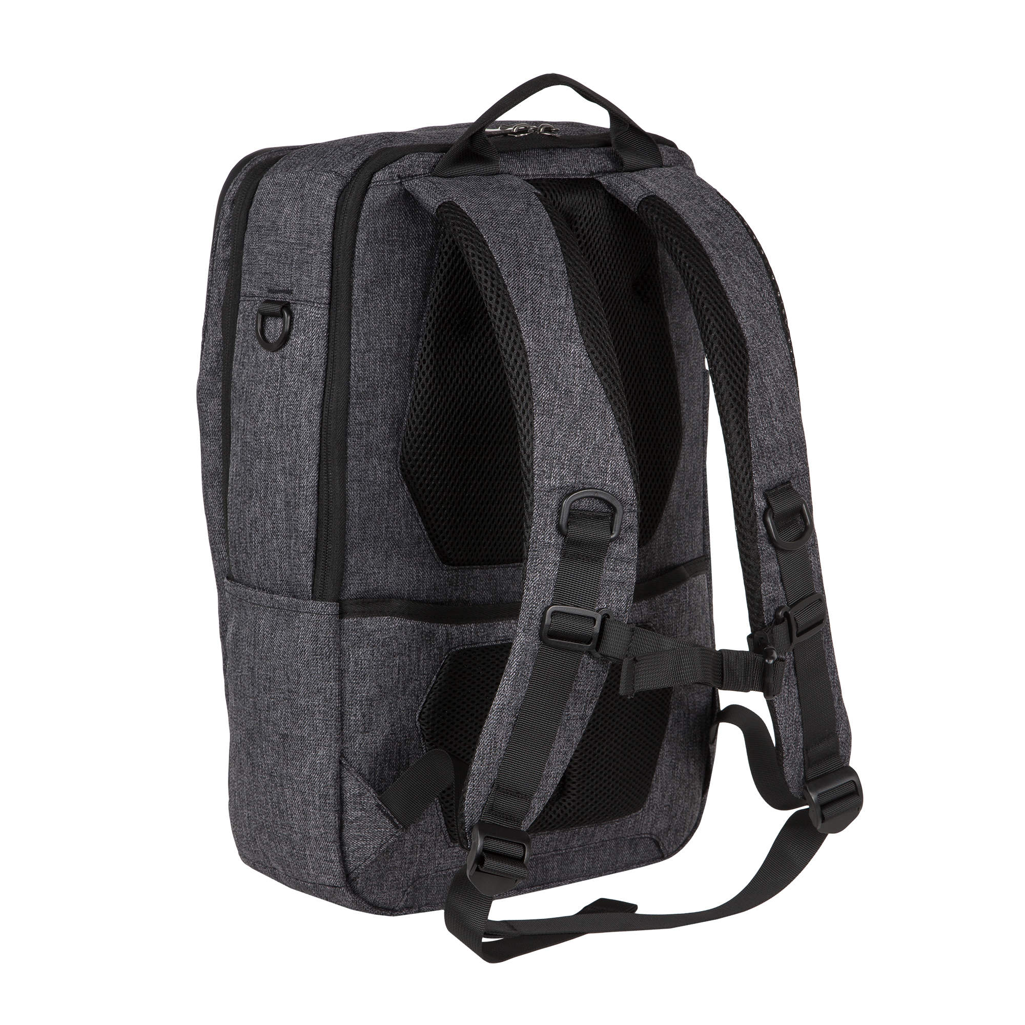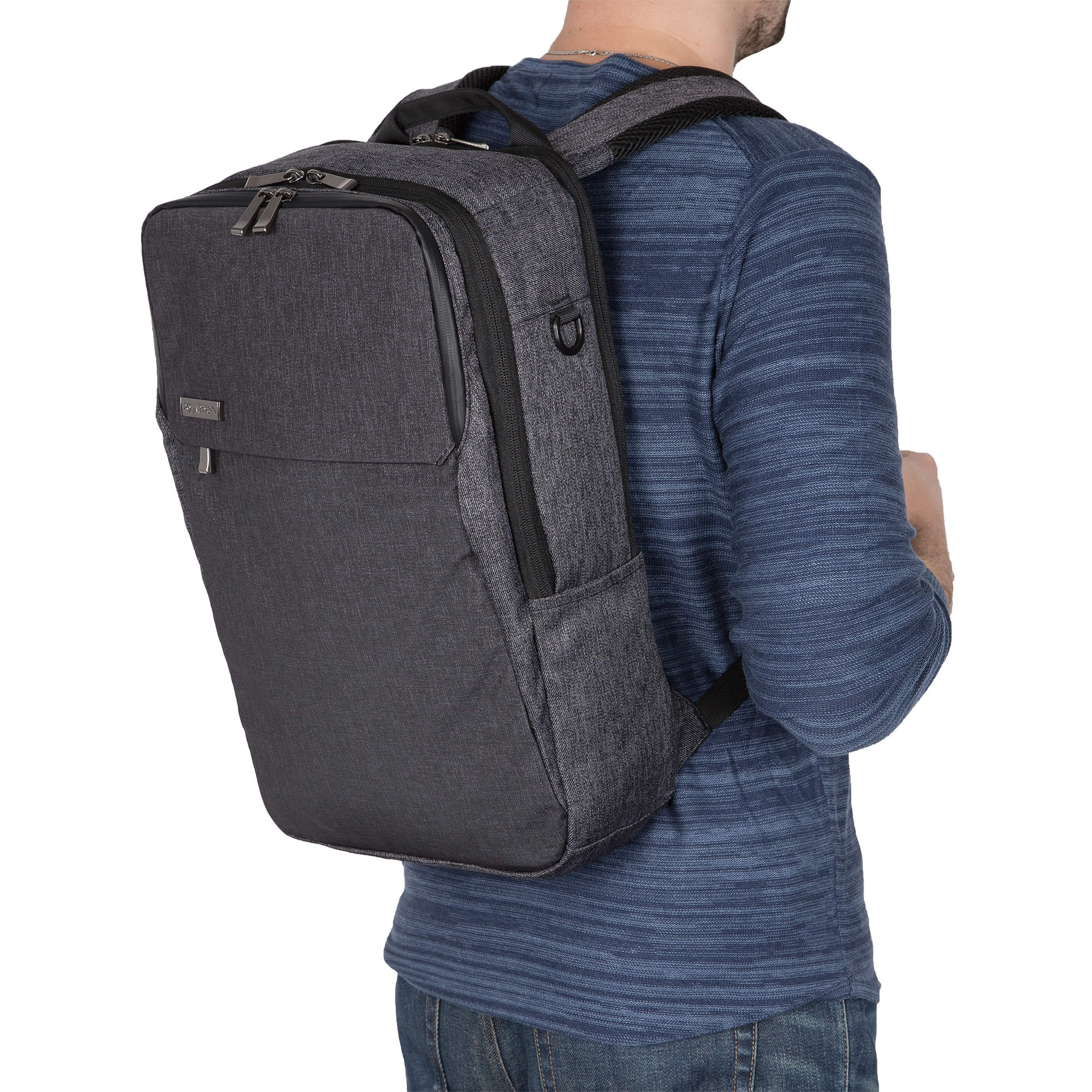 Городской рюкзак с отделением для ноутбука создан специально для повседневной жизни и имеет множество удобных и нужных особенностей. У рюкзака три независимых отделения, в которых можно разместить все необходимые вещи для школы, работы или путешествия. В первом отделении есть уплотненный карман для ноутбука диагональю до 17”, размеры отсека для ноутбука 39 x 27 x 2.5. Второе отделение свободного назначения, имеет открытый карман и карман на молнии. В этом отделении отлично разместятся книги или документы формата А4. В третьем отделении множество потайных карманов на молнии и открытый карман с флисовой подкладкой для планшета или другого гаджета. На передней стенке прорезной карман на молнии для мелочей. По бокам несколько открытых карманов. Сзади рюкзака предусмотрена широкая лента, с помощью которой рюкзак можно повесить на ручку чемодана, что очень удобно в путешествии или в деловой поездке.