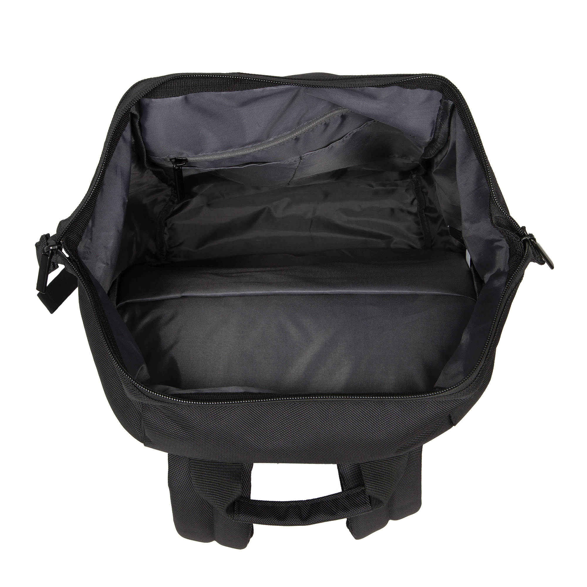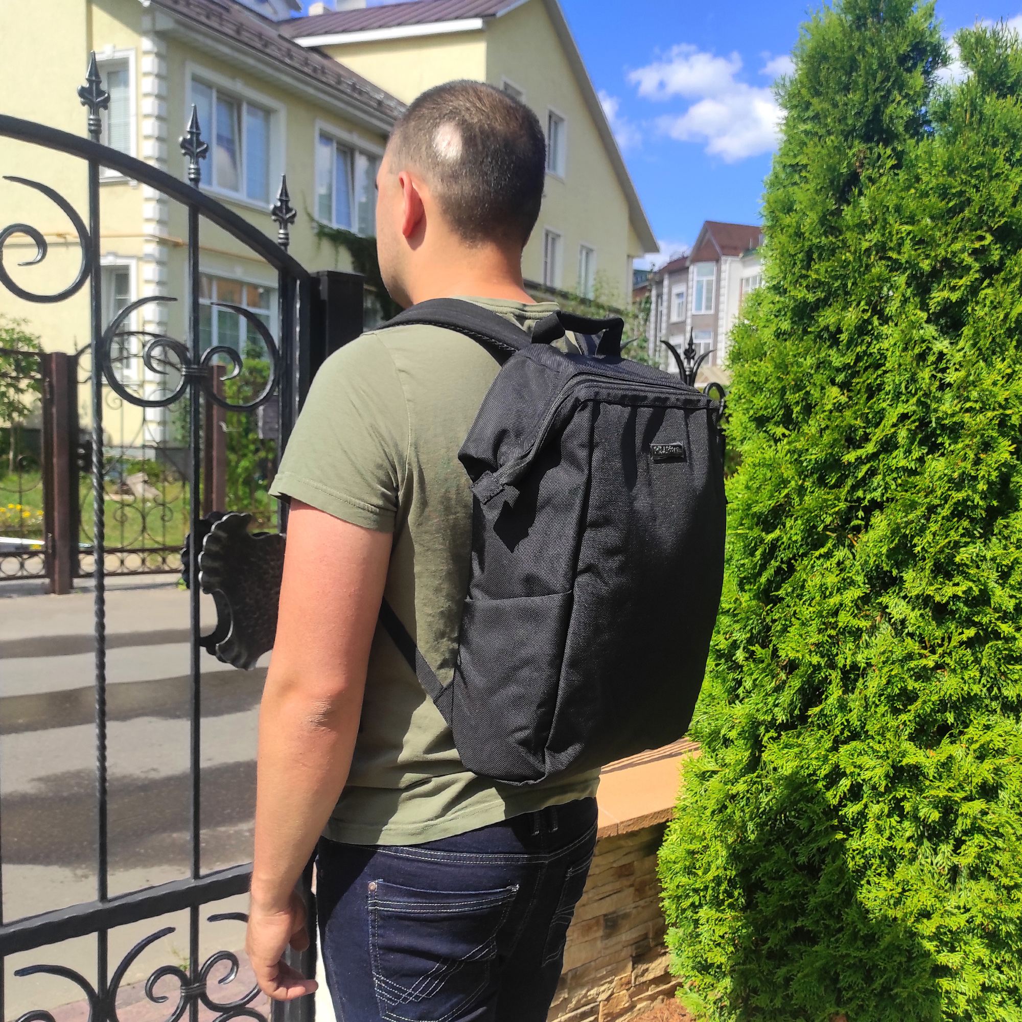 В нижний части спинки рюкзака расположен карман на молнии.