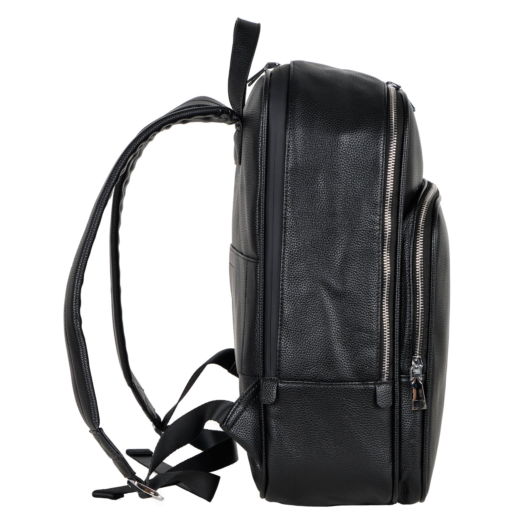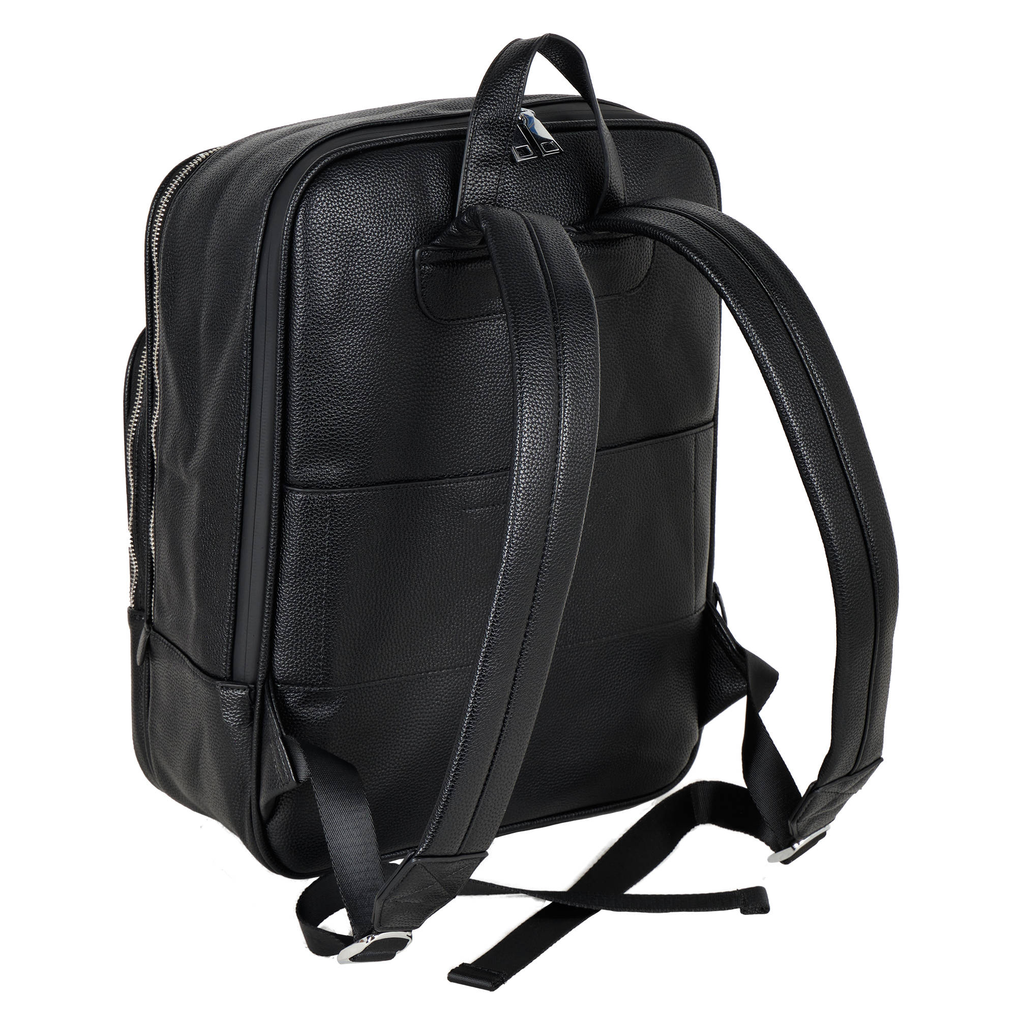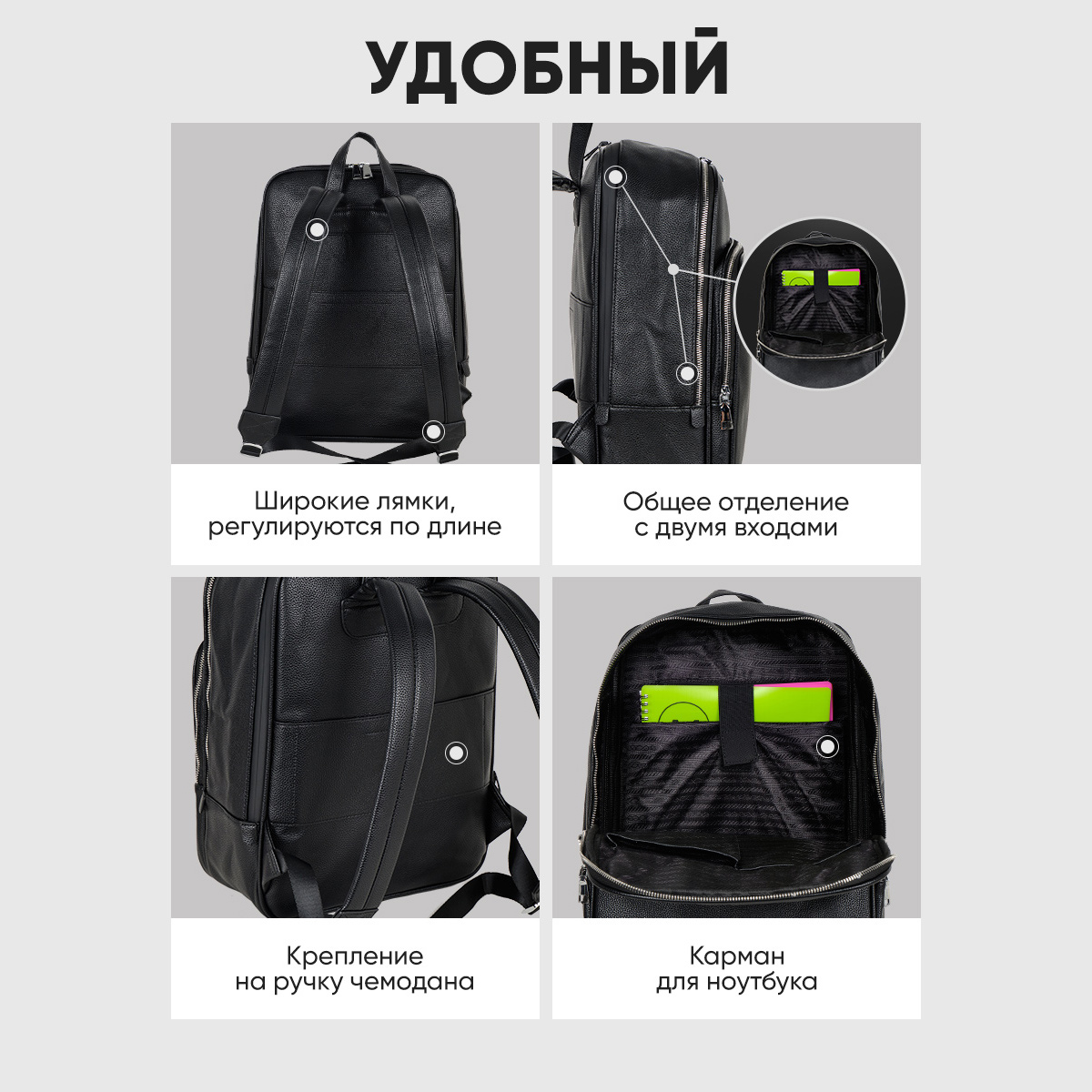 Городской рюкзак фирмы Polar из экокожи с отделением для ноутбука состоит из одного вместительного отделения и закрывается на молнию. Идеальная модель для города и учебы. Рюкзак свободно вмещает формат А4. Внутри расположены два открытых кармана и один на молнии, также отделение для ноутбука диагональю до 14. размеры отсека для ноутбука 35 x 24 x 2. Спереди рюкзака расположен большой накладной карман на молнии. На задней стенке сумки предусмотрено крепление на ручку чемодана. Лямки регулируются по длине максимальная 93 см. Сверху расположена ручка высотой 9 см.