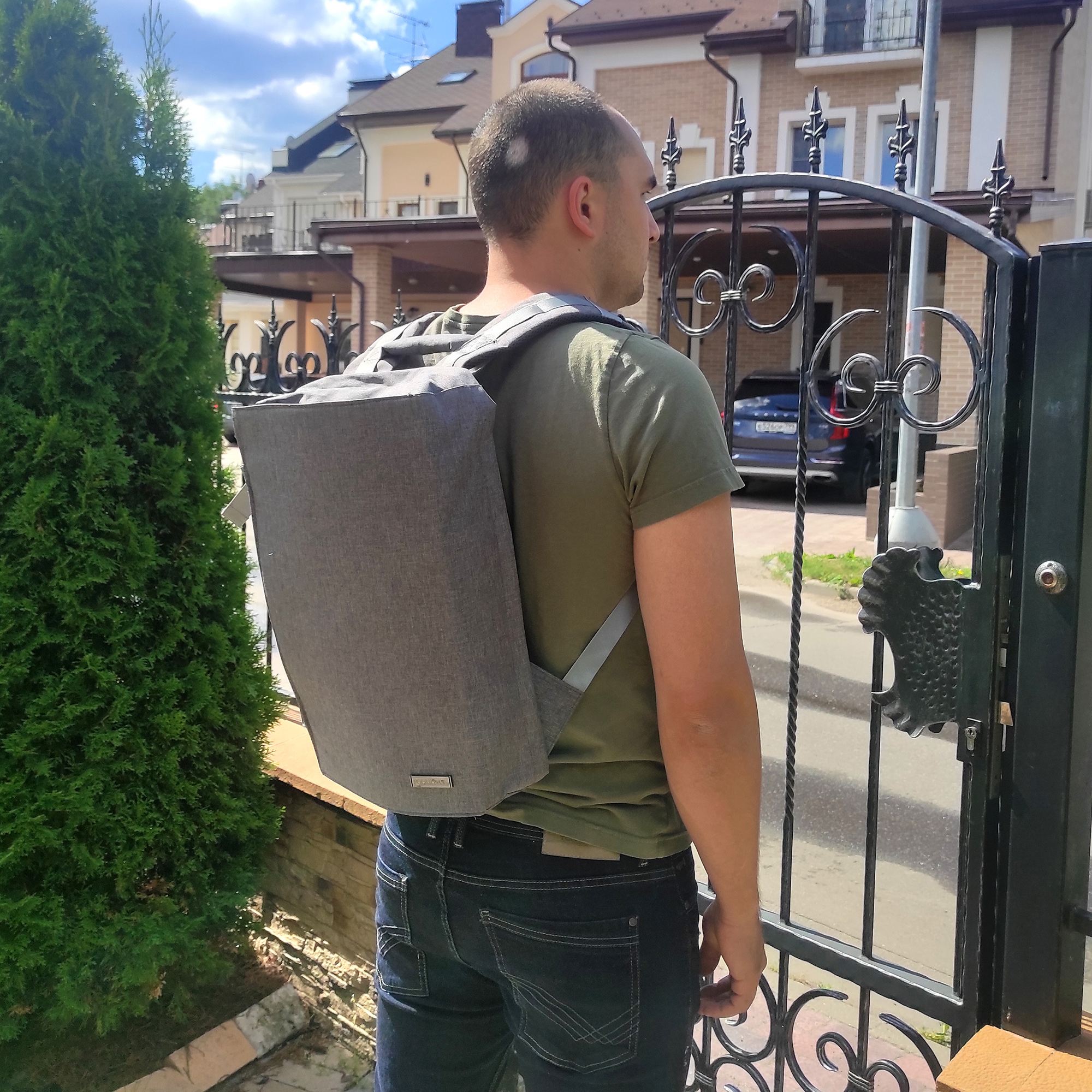 Рюкзак имеет одно основное отделение, которое закрывается на потайную молнию (антивор), внутри которого есть карманы для ноутбука диагональю до 17” , размер отсека 40 х 27 х 3 и планшета.