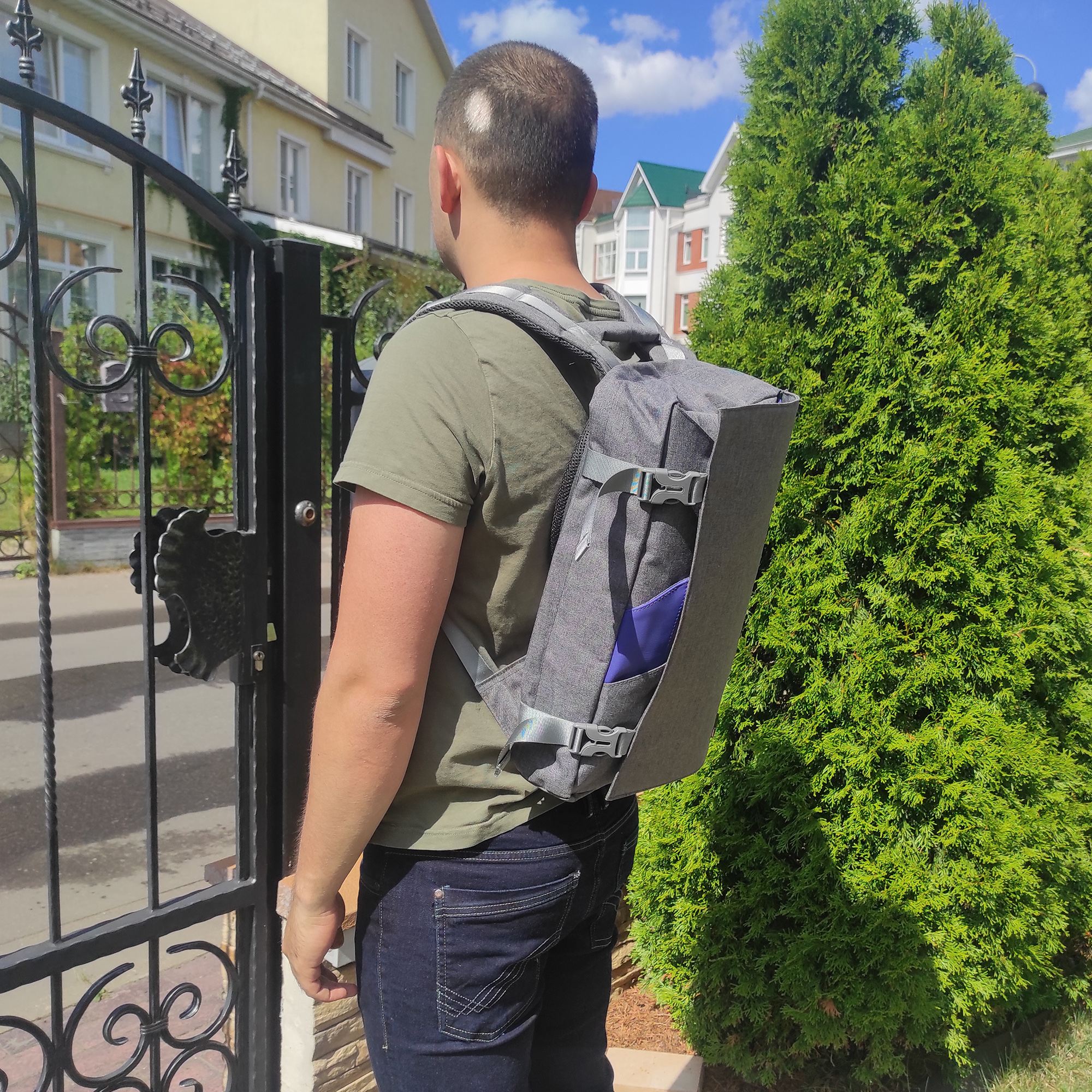 У рюкзака ортопедическая спинка, очень удобная мягкая ручка для переноски и комфортные лямки – майка, сшиты так чтобы не врезаться в плечи и правильно распределять вес. Спинка отделана мягким вентилируемым материалом, благодаря этому с рюкзаком комфортно ходить целый день. Также на спинке пришита лента, с помощью которой удобно крепить рюкзак на выдвижной ручке чемодана, а это дополнительный комфорт для путешественников.