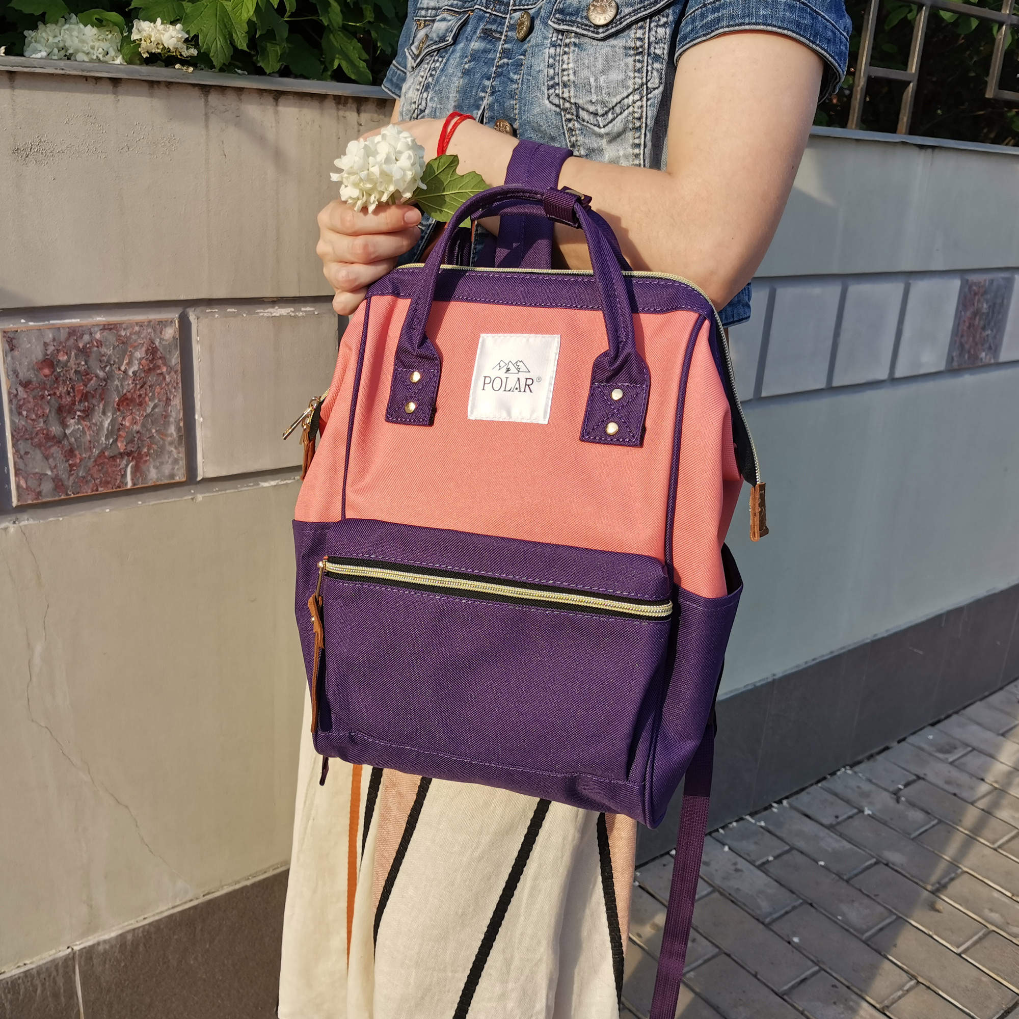 Небольшой рюкзак- сумка с ручками для переноски отлично подойдет для активных молодых людей. Рюкзак изготовлен из плотной водонепроницаемой ткани. Яркие расцветки этой модели позволят вам выделиться из толпы. Сумка-рюкзак имеет вместительное каркасное отделение, закрывающееся на двухстороннюю молнию. Внутри два небольших кармашка, накладной карман спереди и карманы по бокам для бутылки воды или зонта. На спинке рюкзака есть вертикальная молния, для быстрого и удобного доступа к вещам, не снимая рюкзак. Удобные ручки для переноски в руке и лямки, регулируемые по длине для максимального комфорта.