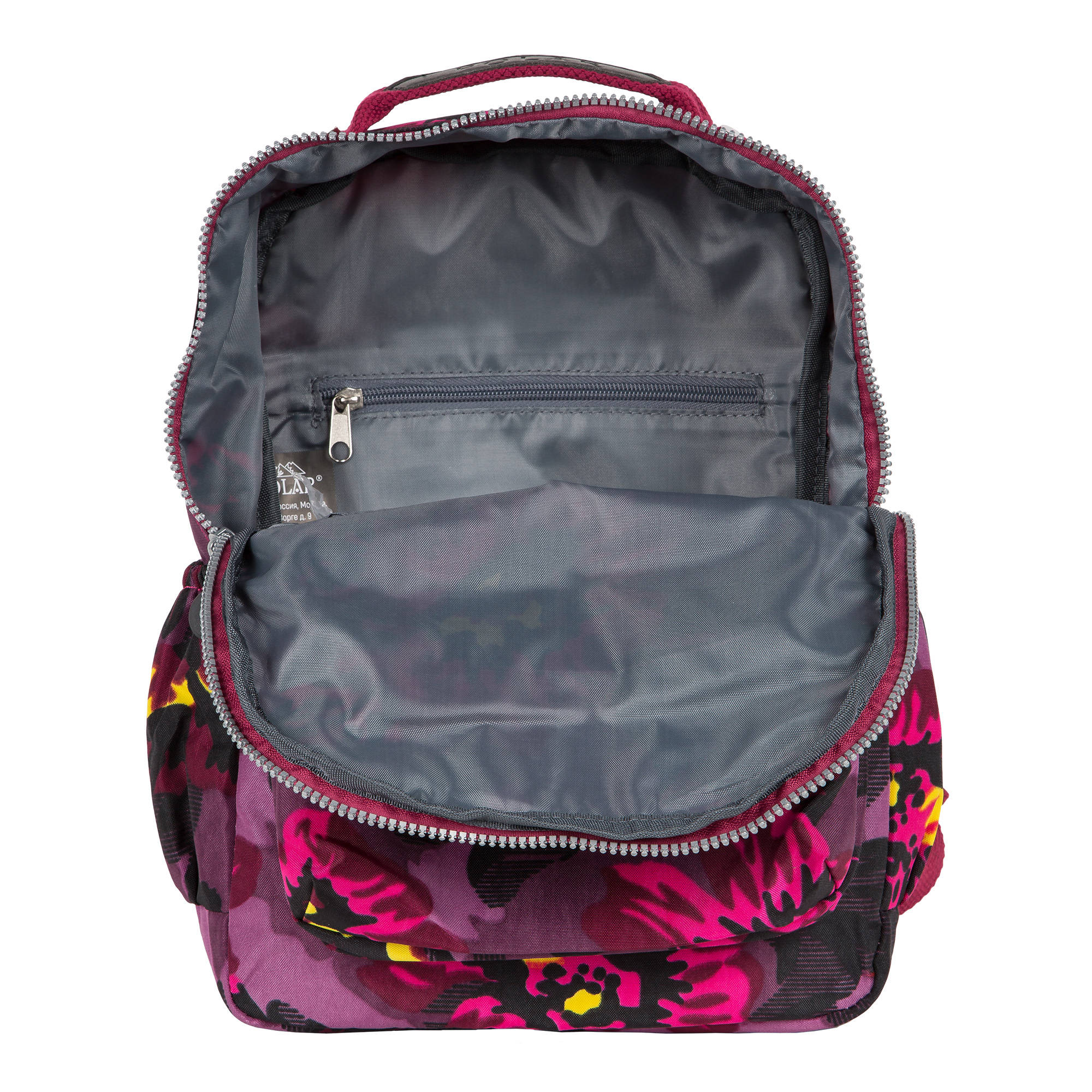 Небольшой городской рюкзак Полар выполнен из полиэстера и прекрасно подходит для прогулок и учёбы. Модель состоит из основного отделения, внутри которого есть большой карман на резинке для документов и планшета и небольшой кармашек на молнии , а также вместительного накладного кармана, на котором есть в свою очередь один маленький закрытый кармашек. Боковые открытые карманы на резинке предназначены для бутылок с водой, сзади есть карман на молнии.