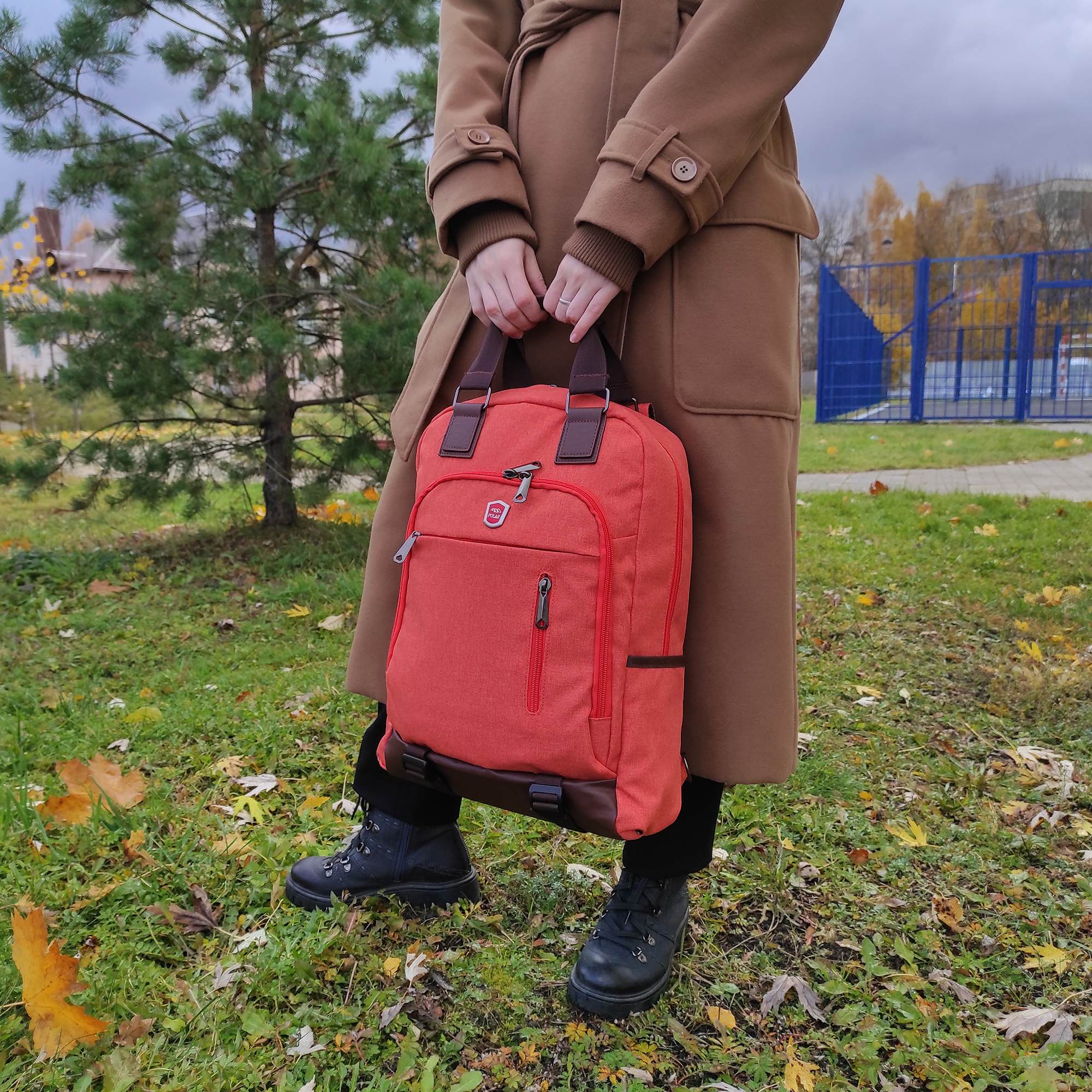 Городской рюкзак-сумка фирмы Polar с отделением для ноутбука состоит из одного вместительного отделения и закрывается на молнию. Внутри расположены два больших кармана из сетчатого материала, и отделение для ноутбука диагональю до 15. размеры отсека для ноутбука 36 x 26 x 2.Спереди сумки расположен большой накладной карман на молнии; на клапане есть два дополнительных кармана на молнии для небольших предметов. По бокам расположены два открытых кармана. Лямки пристегиваются карабинами, и регулируются по длине. Сзади расположен большой открытый карман на липучке, куда можно спрятать лямки, и переносить сумку в руке. Сверху расположены ручки высотой 11 см. Края карманов, ручки, и дно обработаны вставками из экокожи.