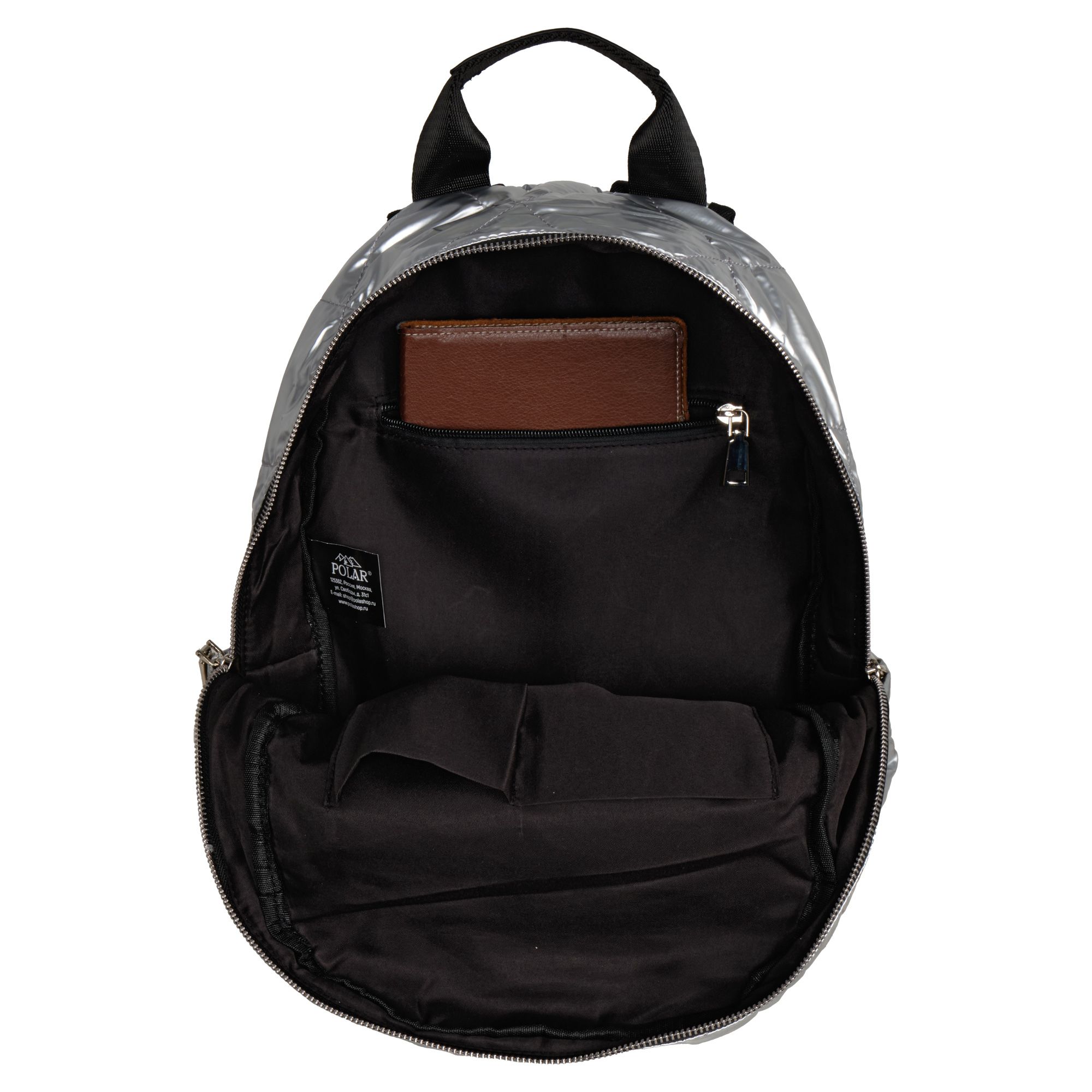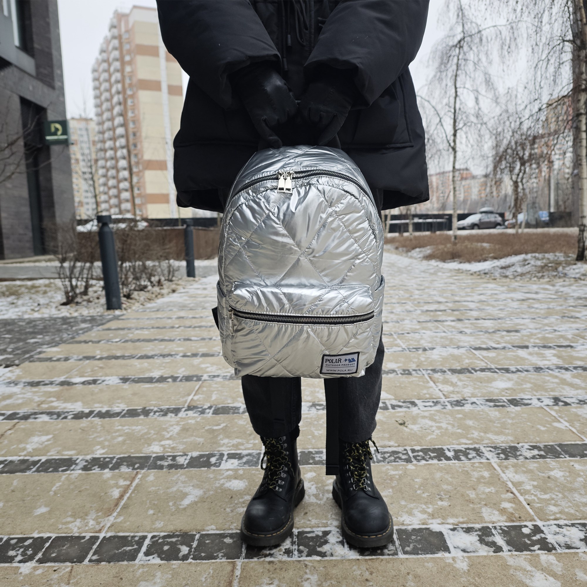 Женский стеганый маленький рюкзак фирмы Polar из болоньи, дополнит Ваш зимний образ с курткой и станет незаменимой вещью в Вашем гардеробе на каждый день. Рюкзак состоит из одного отделения, которое закрывается на молнию. Внутри отделения один карман на молнии и два открытых кармашка. Спереди накладной карман на молнии для мелочей. По бокам два открытых кармана. Максимальная длина лямок 85 см. Высота ручки 7 см.