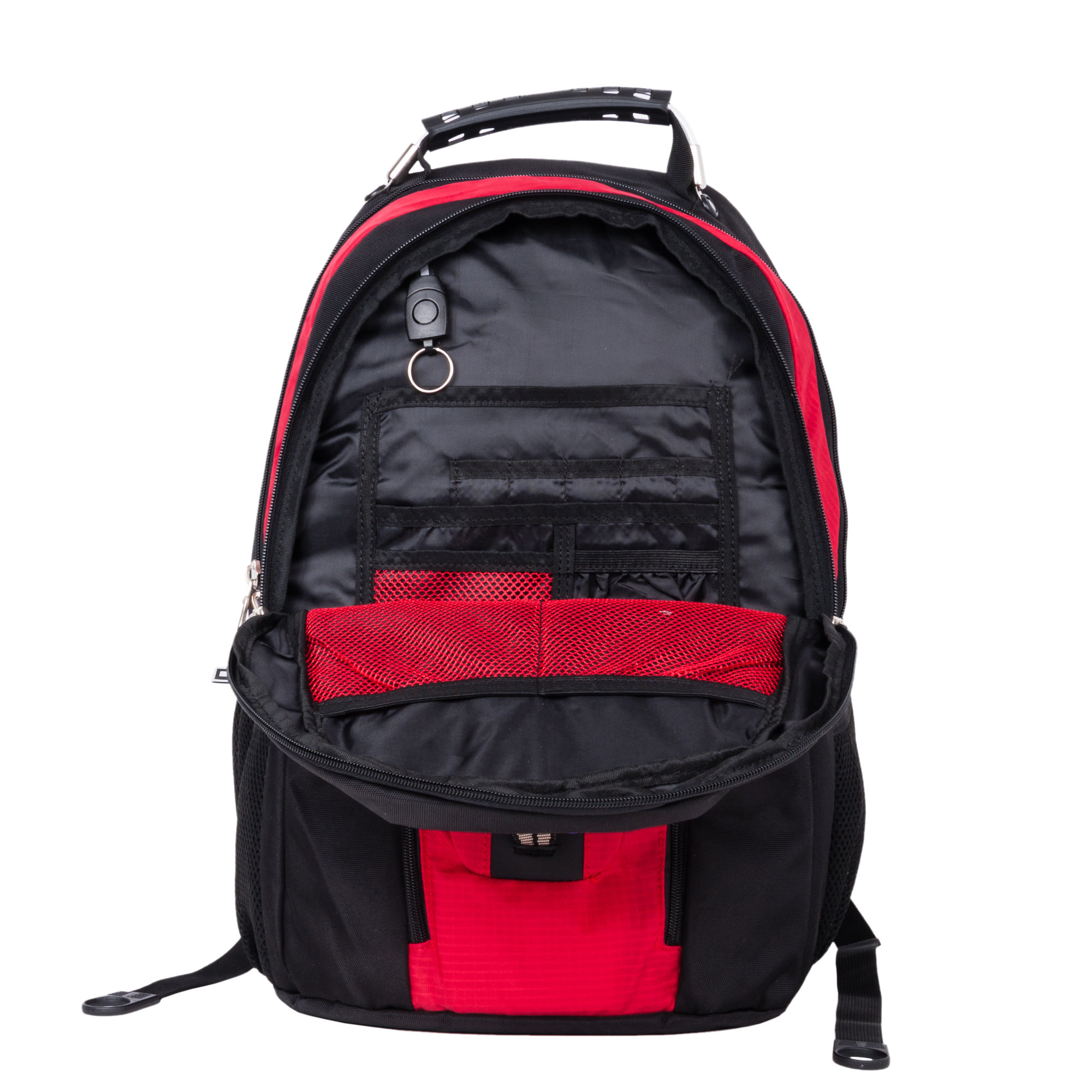 Городской рюкзак с отделением для ноутбука состоит из двух отделений ,в одном из них есть карман для ноутбука диагональю до 15,6, размеры отсека для ноутбука 38 x 29 x 2.5. Большой карман на молнии для личных вещей, а также миниатюрный открытый карман для мелких предметов. Спереди накладной карман на молнии, внутри которого органайзер и крепление для ключей. На клапане накладного кармана расположены два кармана на молнии. По бокам два кармана из мягкого сетчатого материала на резинке. Сверху эргономичная и крепкая ручка с металлическим тросом внутри для переноски, а также есть петля подвешивания.