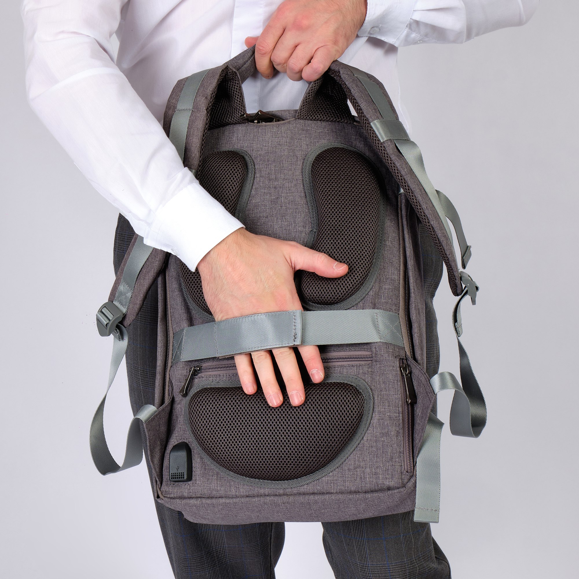 Стильный, городской рюкзак с USB-портом и отделением для ноутбука выполнен в строгом дизайне с минимумом внешних деталей. Модель имеет универсальную расцветку, которая прекрасно сочетается как с повседневной одеждой, так и с офисным дресс-кодом.