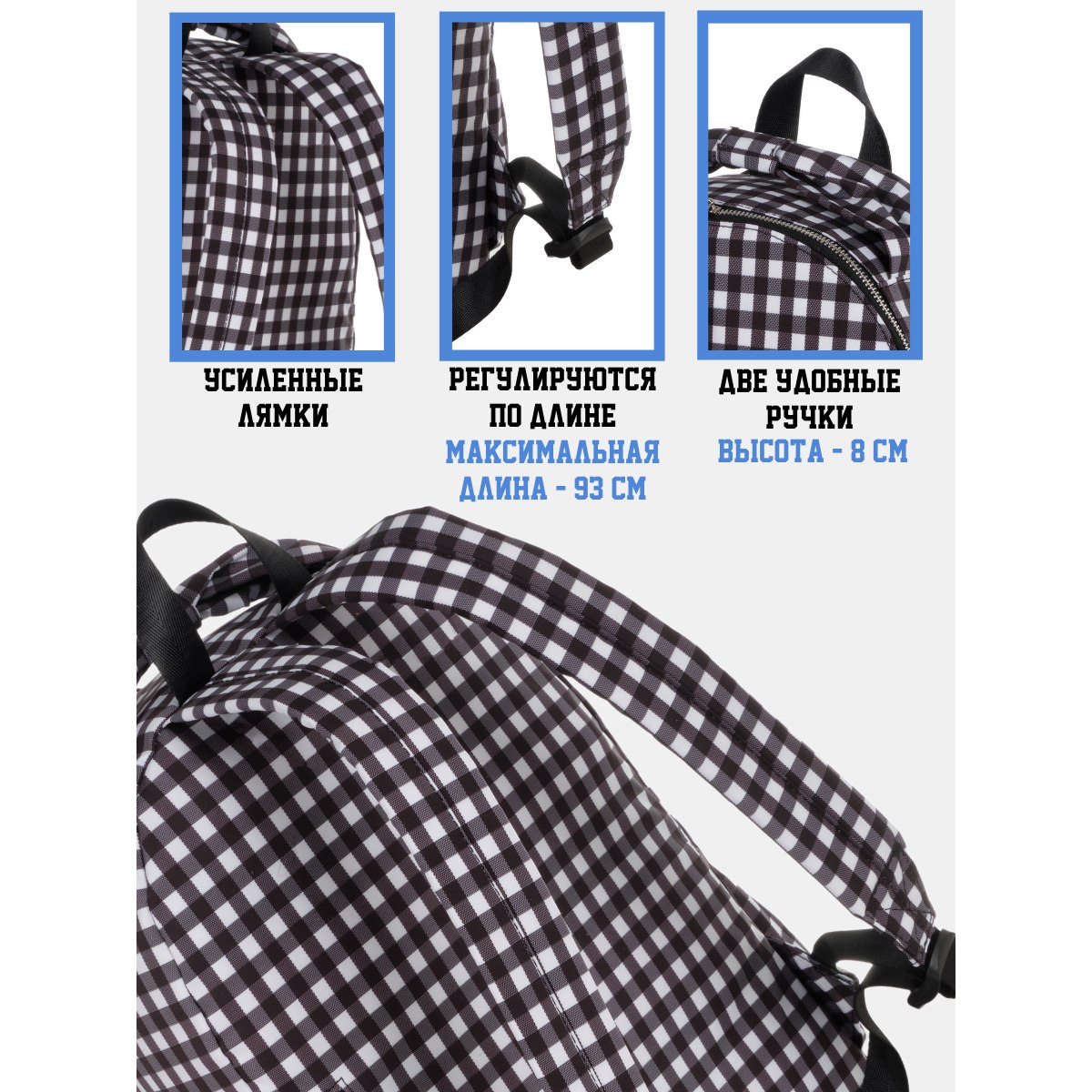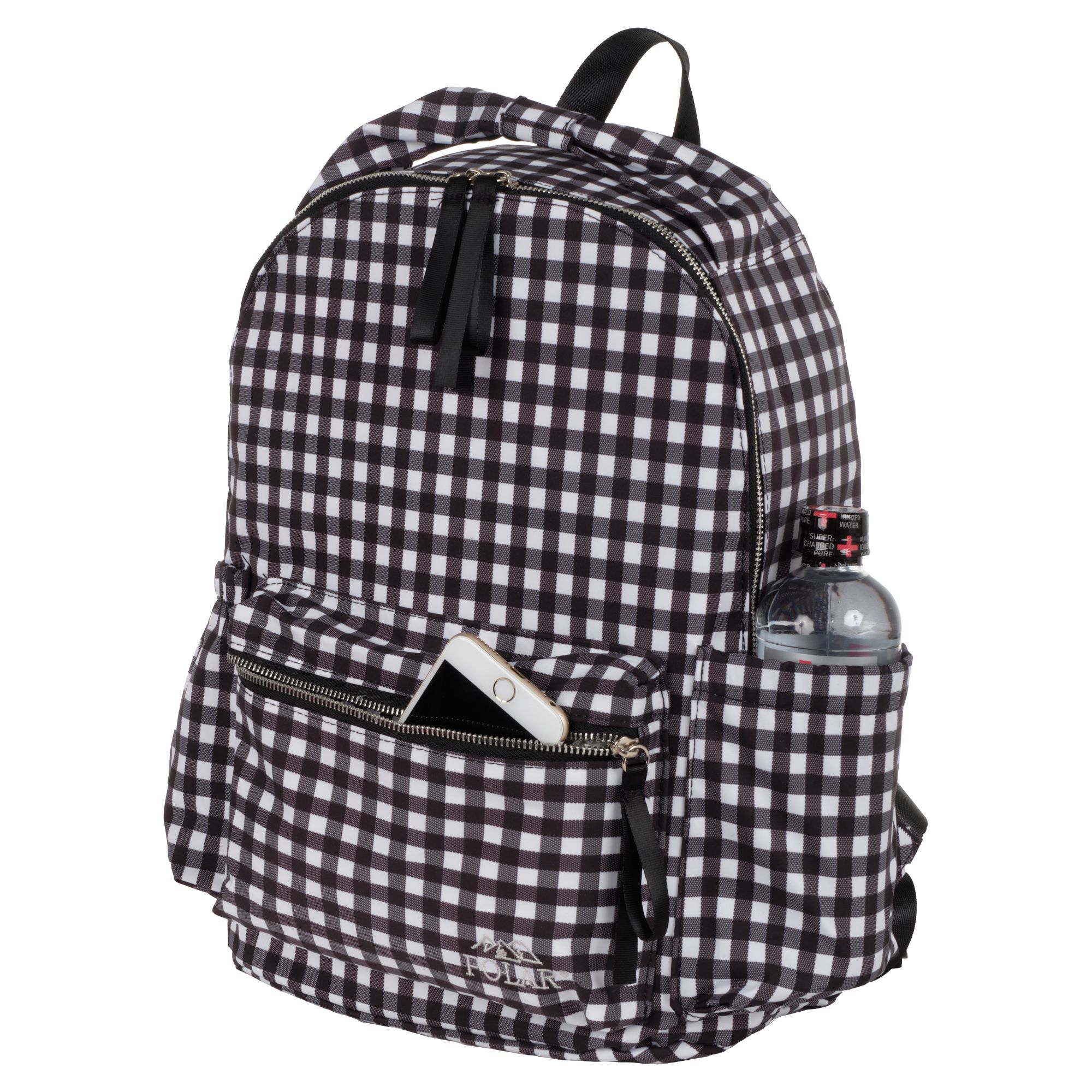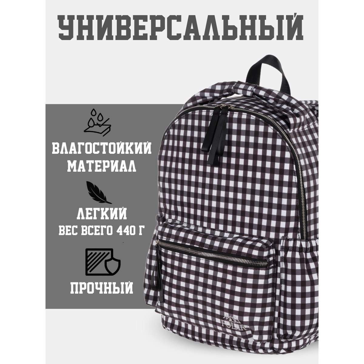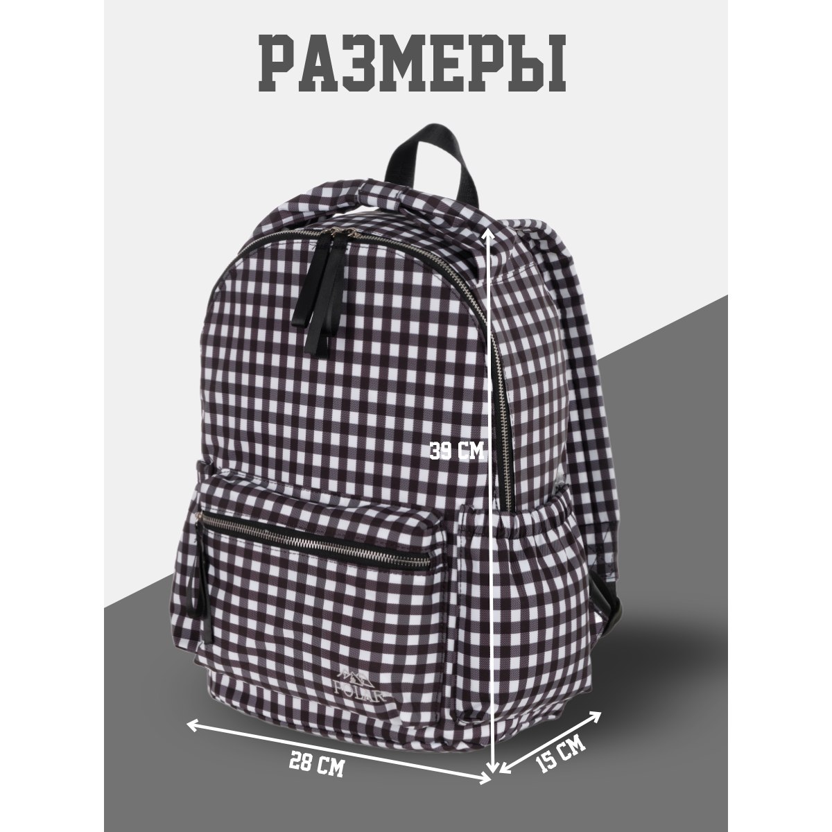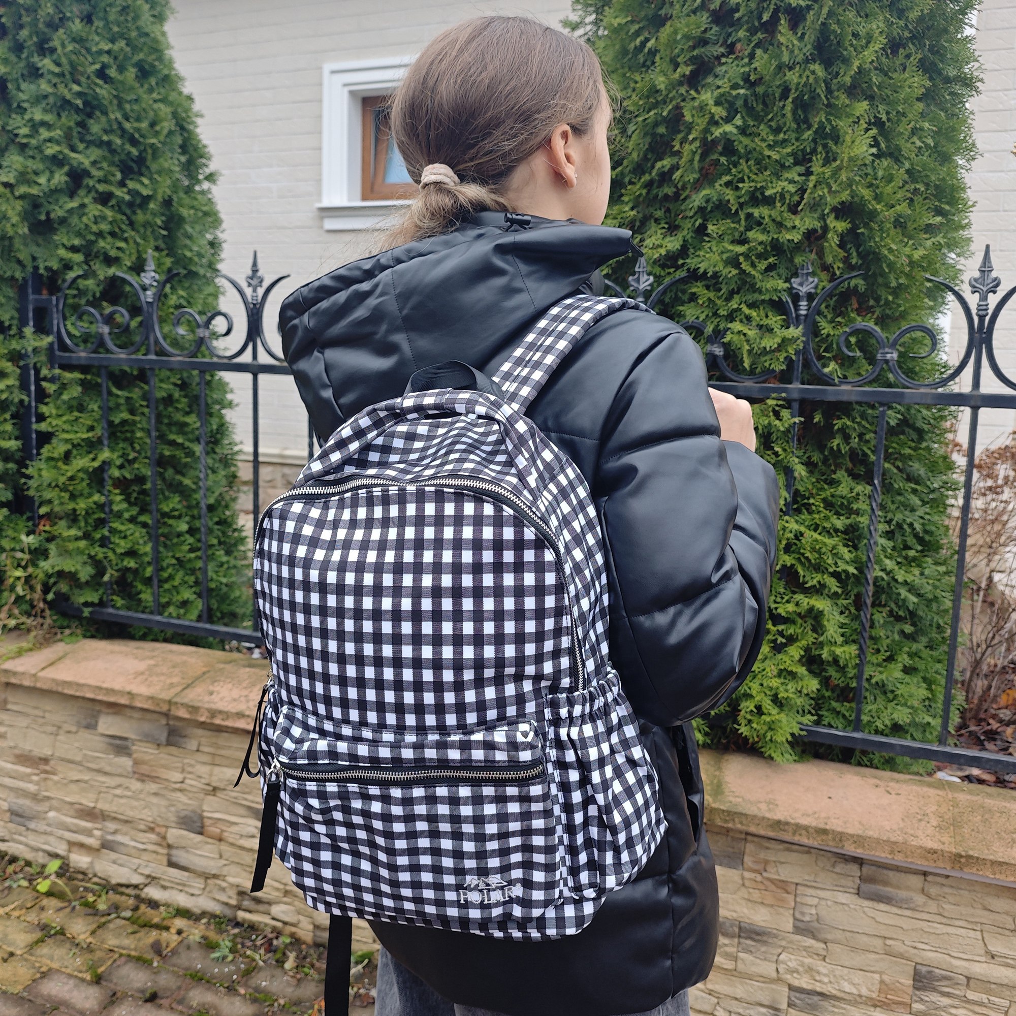 Городской рюкзак фирмы Polar имеет мягкую поролоновую спинку и мягкие лямки. Рюкзак состоит из одного отделения, которое закрывается на металлическую молнию. Внутри отделения один сетчатый карман на молнии. Спереди объемный карман для небольших предметов. По бокам два кармана на резинке. Сзади потайной небольшой кармашек. Максимальная длина лямок 93 см. Высота ручки 8 см.