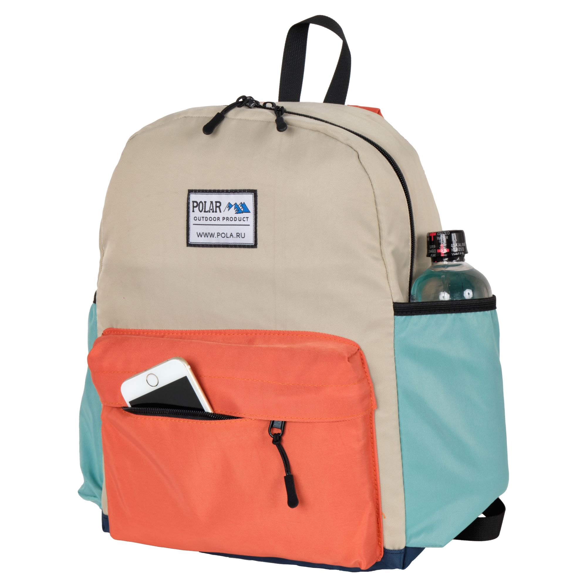 Городской рюкзак фирмы Polar мягкая поролоновая спинка и мягкие лямки. Рюкзак состоит из одного отделения, которое закрывается на молнию. Внутри отделения один карман на молнии и открытый кармашек. Спереди накладной карман для небольших предметов. По бокам два кармана на резинке. Максимальная длина лямок 93 см. Высота ручки 8 см.