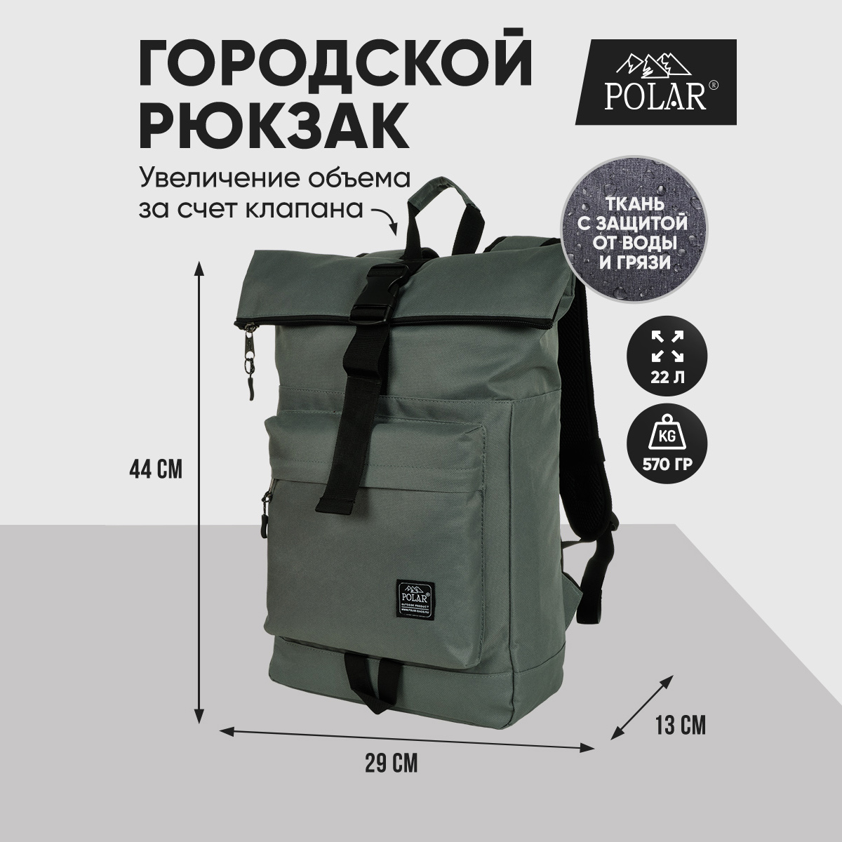 Стильный рюкзак фирмы POLAR для прогулок и учебы, путешествий и спорта, работы, школы, института с верхним клапаном на удобной пряжке. Такая конструкция позволяет менять объем рюкзака, когда вы захотите увеличить его основное отделение за счет клапана на застежке. Так же верхний клапан — это дополнительная защита ваших вещей от краж и дождя. Рюкзак выглядит очень современно. Он универсален и очень надежный, подходит как для мужчин, так и для женщин. Материал рюкзака с водо- и грязеотталкивающей пропиткой. Эргономические лямки с сетчатыми уплотнителями делают этот рюкзак очень комфортным в использовании и снимают лишнюю нагрузку. Регулирующая грудная стяжка с удобным фиксатором. Основное отделение закрывается на молнию и регулирующую застежку с клапаном на пряжке. Внутри один большой карман для документов формата А4, планшета или ноутбука до 15" и небольшой карман на молнии. Есть накладной карман на молнии для карточек, ключей. Длина лямок 82 см, ширина 7,5 см.
