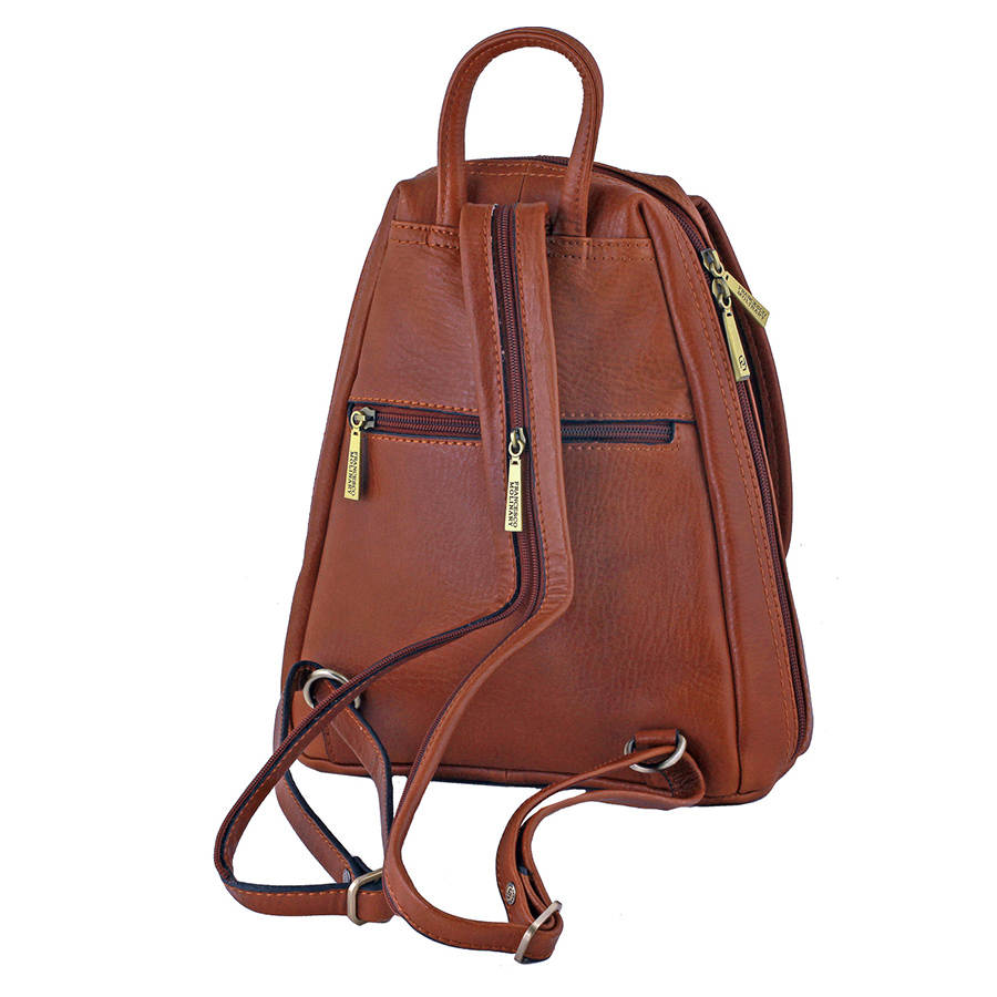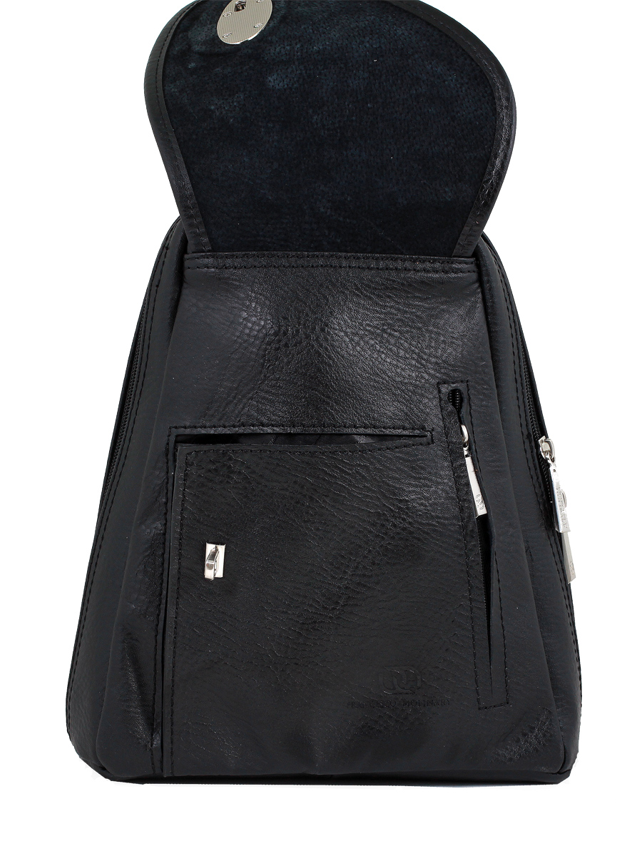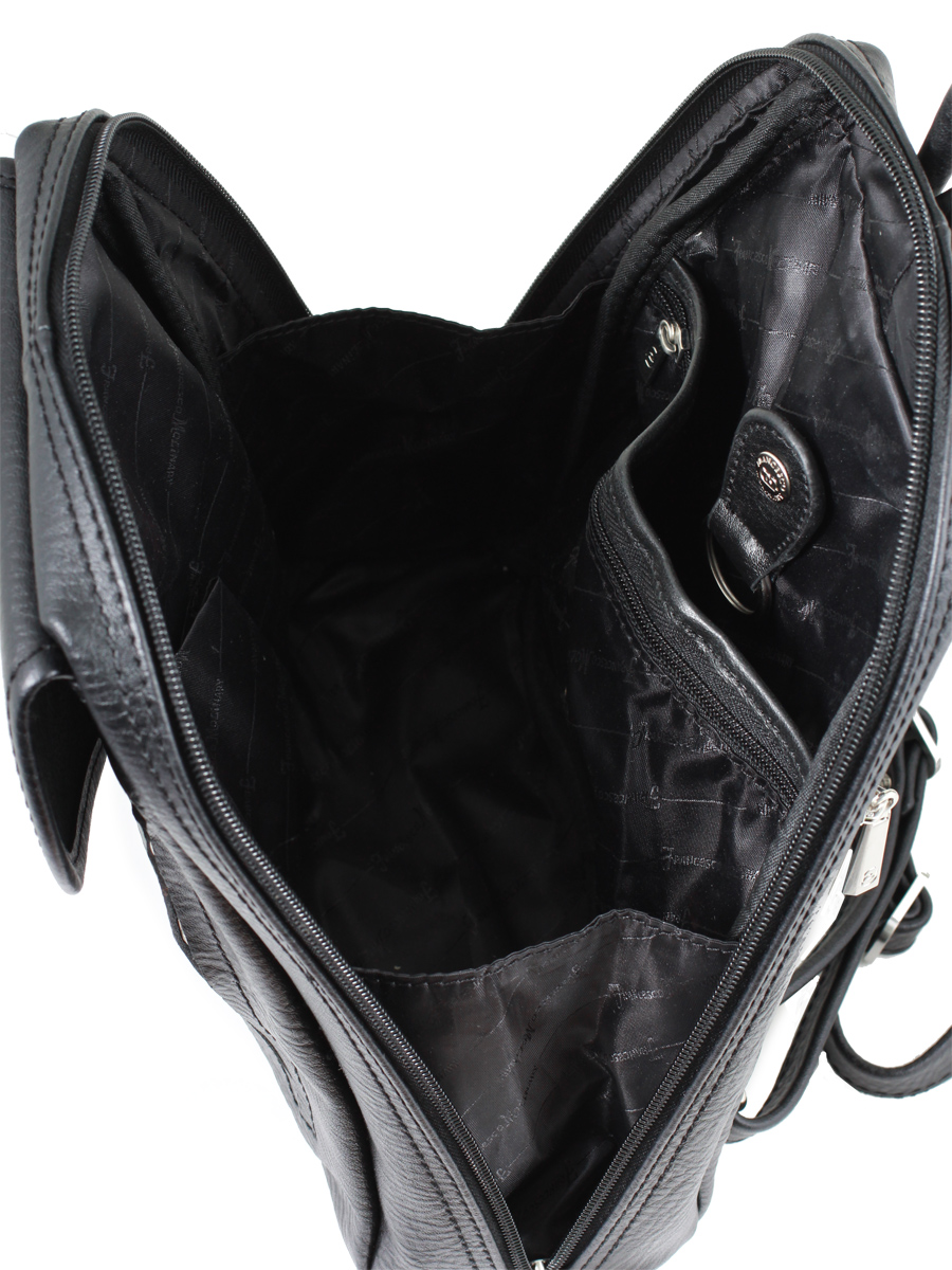 Компактный кожаный рюкзачок Francesco Molinary из высококлассной гладкой плотной кожи. Оригинальный замок на пружинке придает изделию элегантность. В основном отделении есть кармашки для мобильного телефона и других некрупных предметов. А ключница на кнопке поможет Вам быстро найти ключи. Особое практичное назначение несет карман на молнии сзади. Вы можете быть уверены, что ценные вещи в нем будут надежно спрятаны. Кожаные плечевые лямки соединены молнией, что позволяет Вам носить рюкзак как на одном, так и на двух плечах.