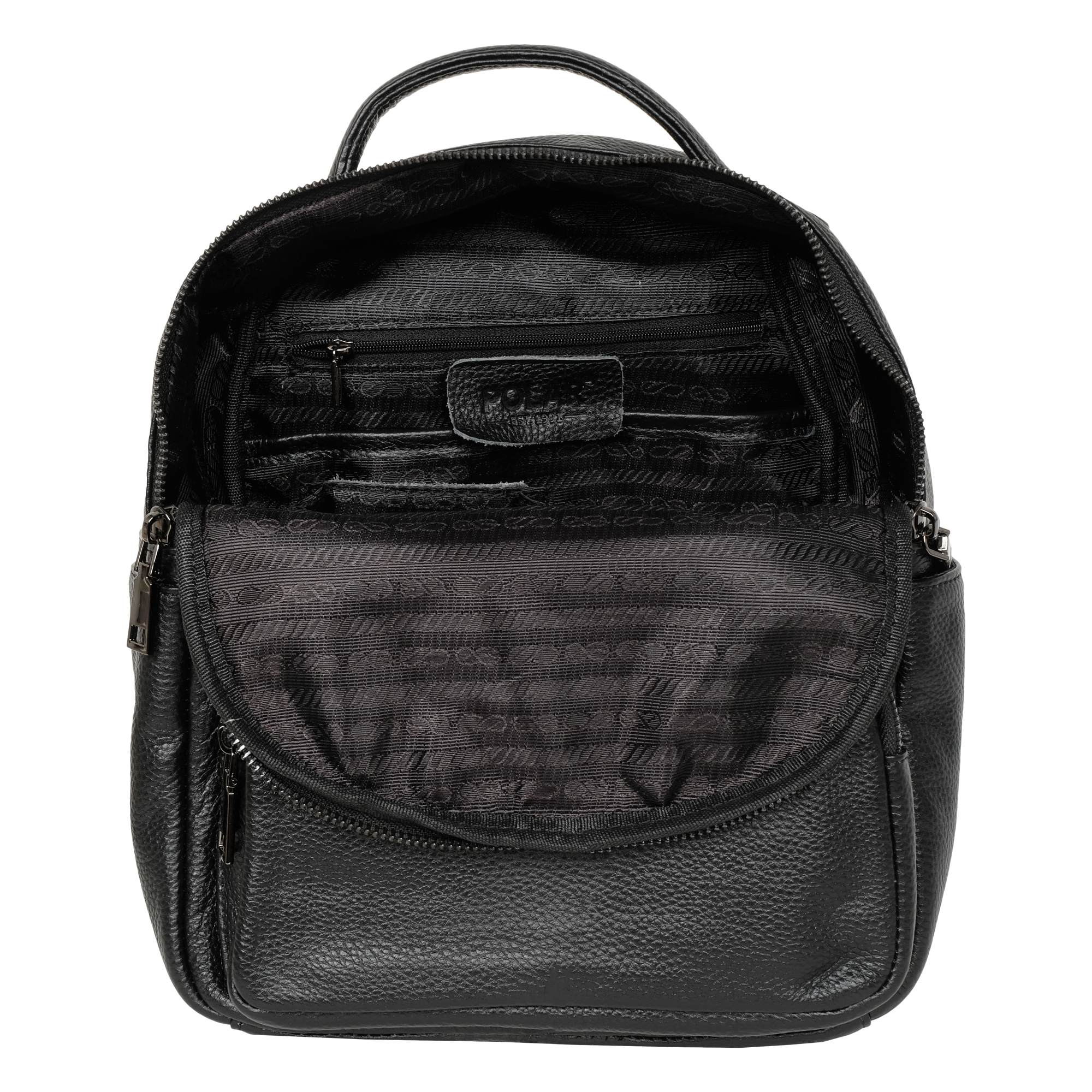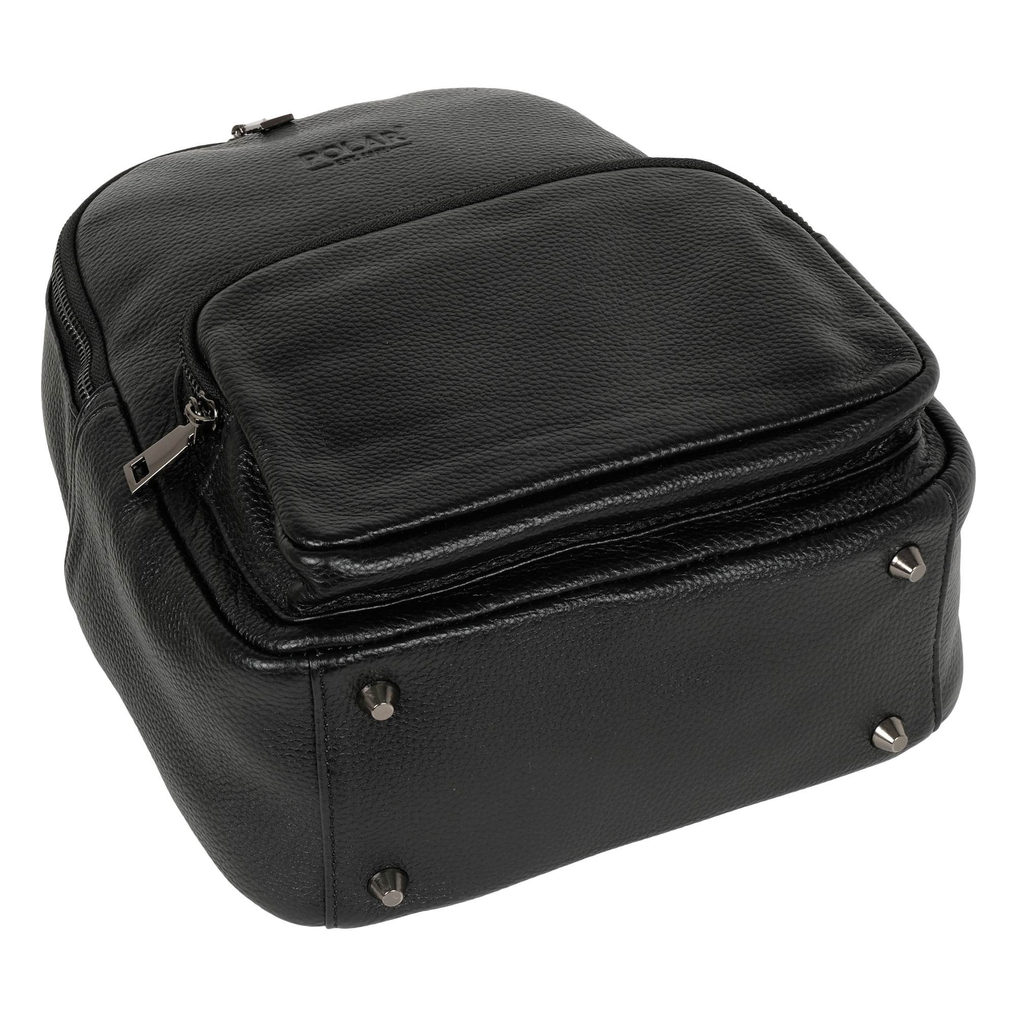 Женский рюкзак фирмы Polar изготовлен из натуральной кожи. Модель отлично подойдет для повседневного ношения и прогулками с друзьями. Основное отделение закрывается на металлическую молнию. Внутри небольшой карман на молнии для карточек, ключей и три открытых кармашка. На передней стенке рюкзака один накладной карман на молнии, есть два кармашка по бокам, закрываются на металлические кнопки. Сзади небольшой карман на молнии. Длина лямок 88 см.