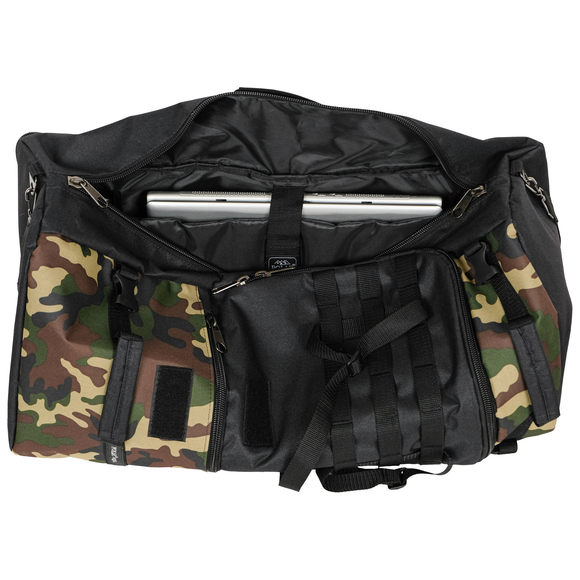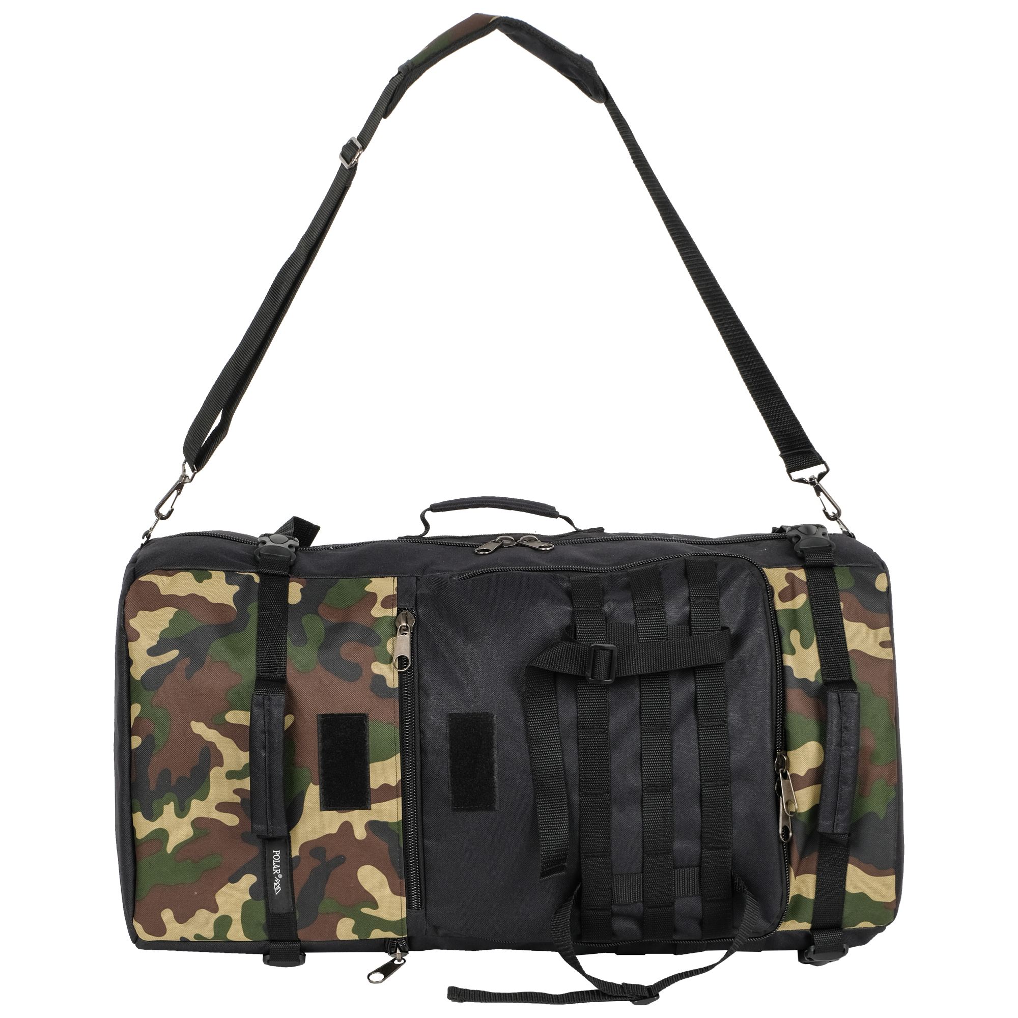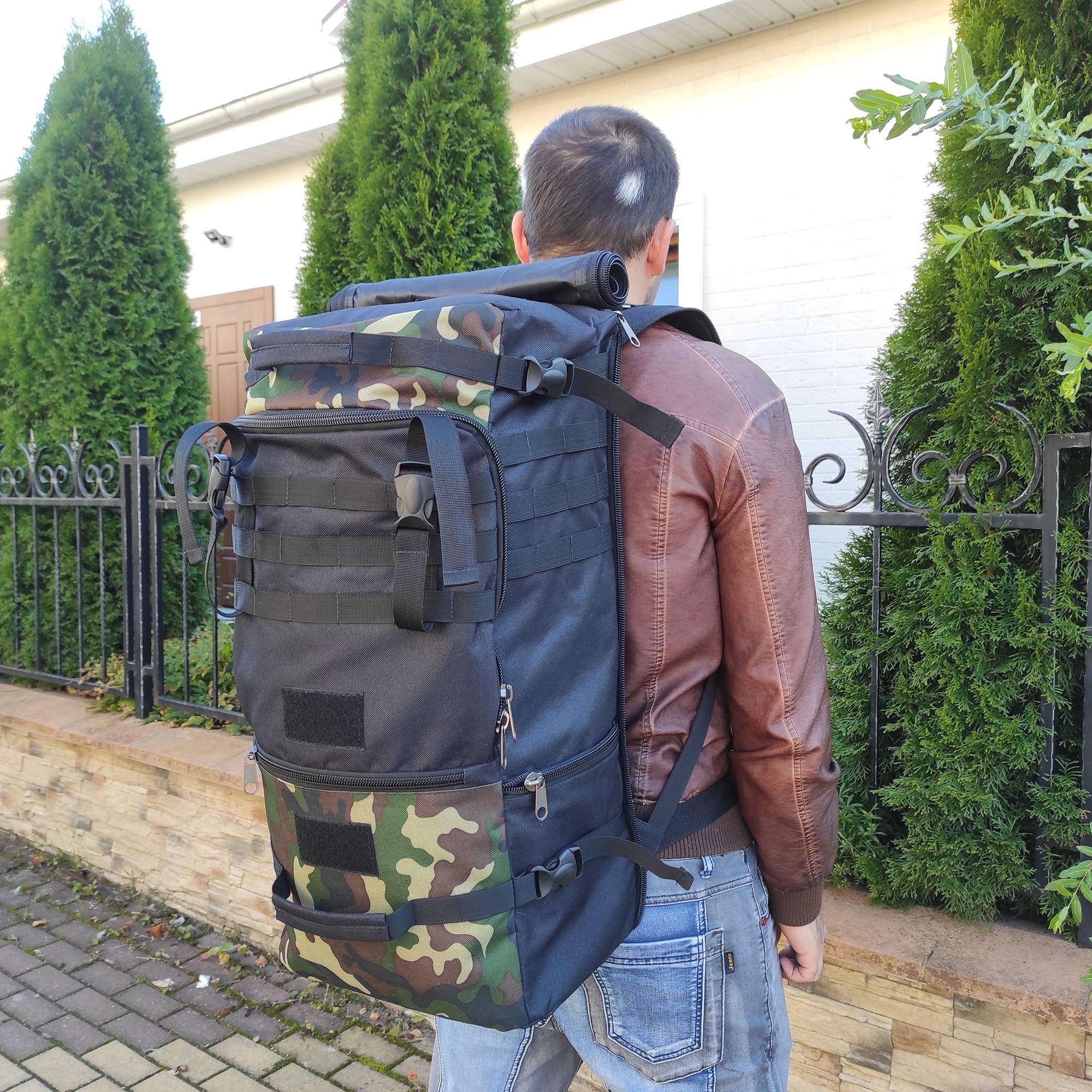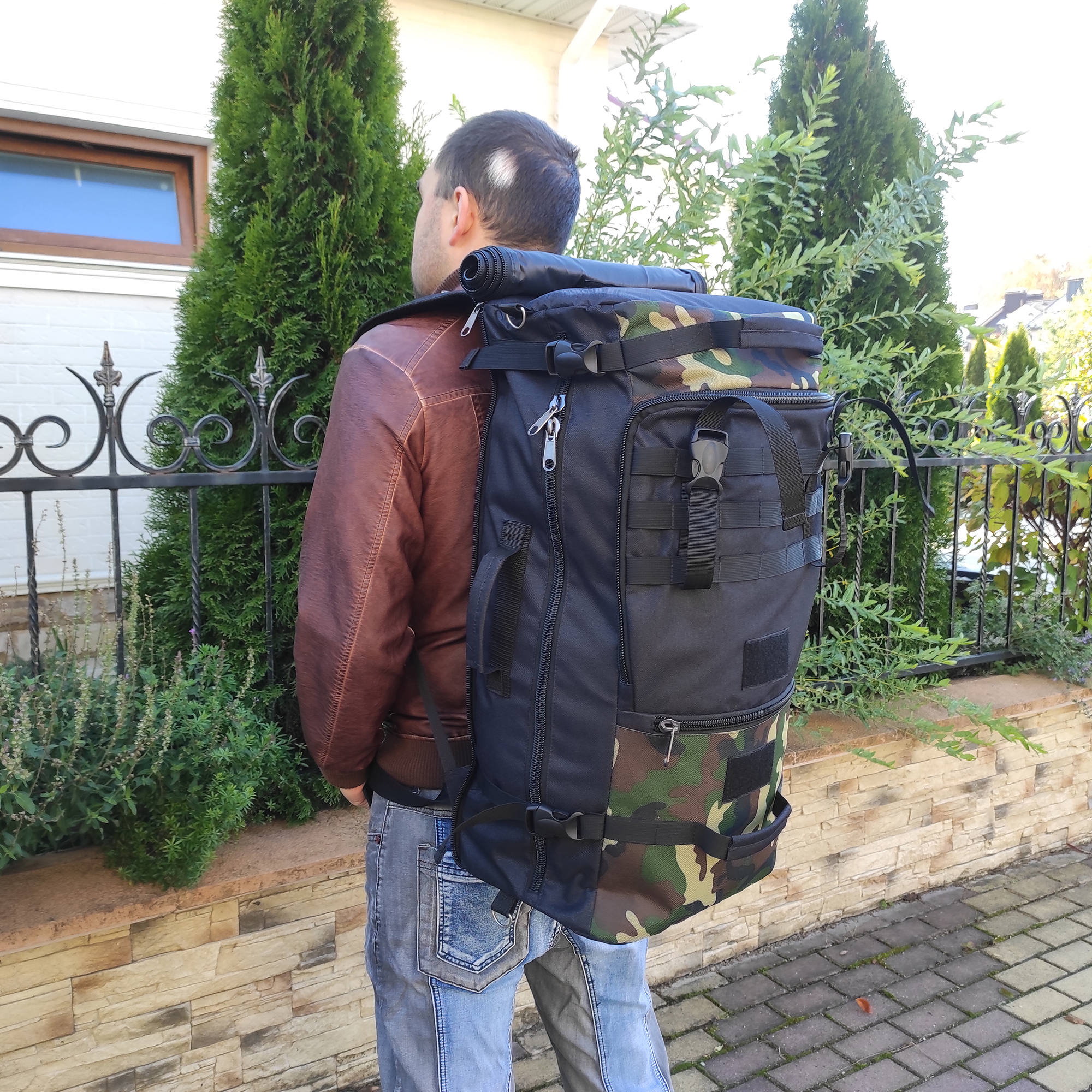 При необходимости, рюкзак легко трансформируется в большую дорожную сумку, если взять его за боковую ручку длина и убрать лямки под дополнительное отделение, отстегнув его сверху и закрыв на молнию. В комплекте есть съемный, регулируемый по длине ремень, длина до 135 см.