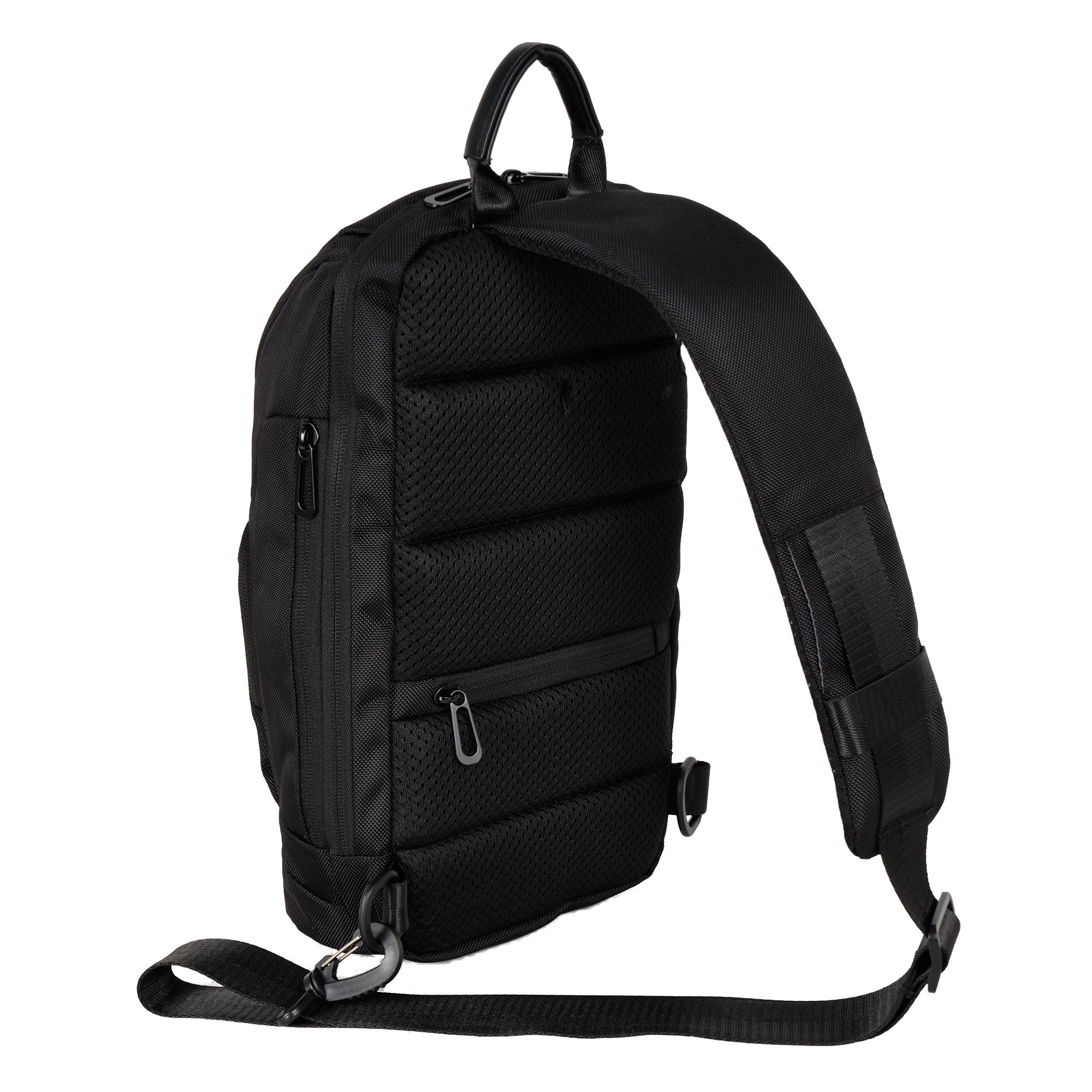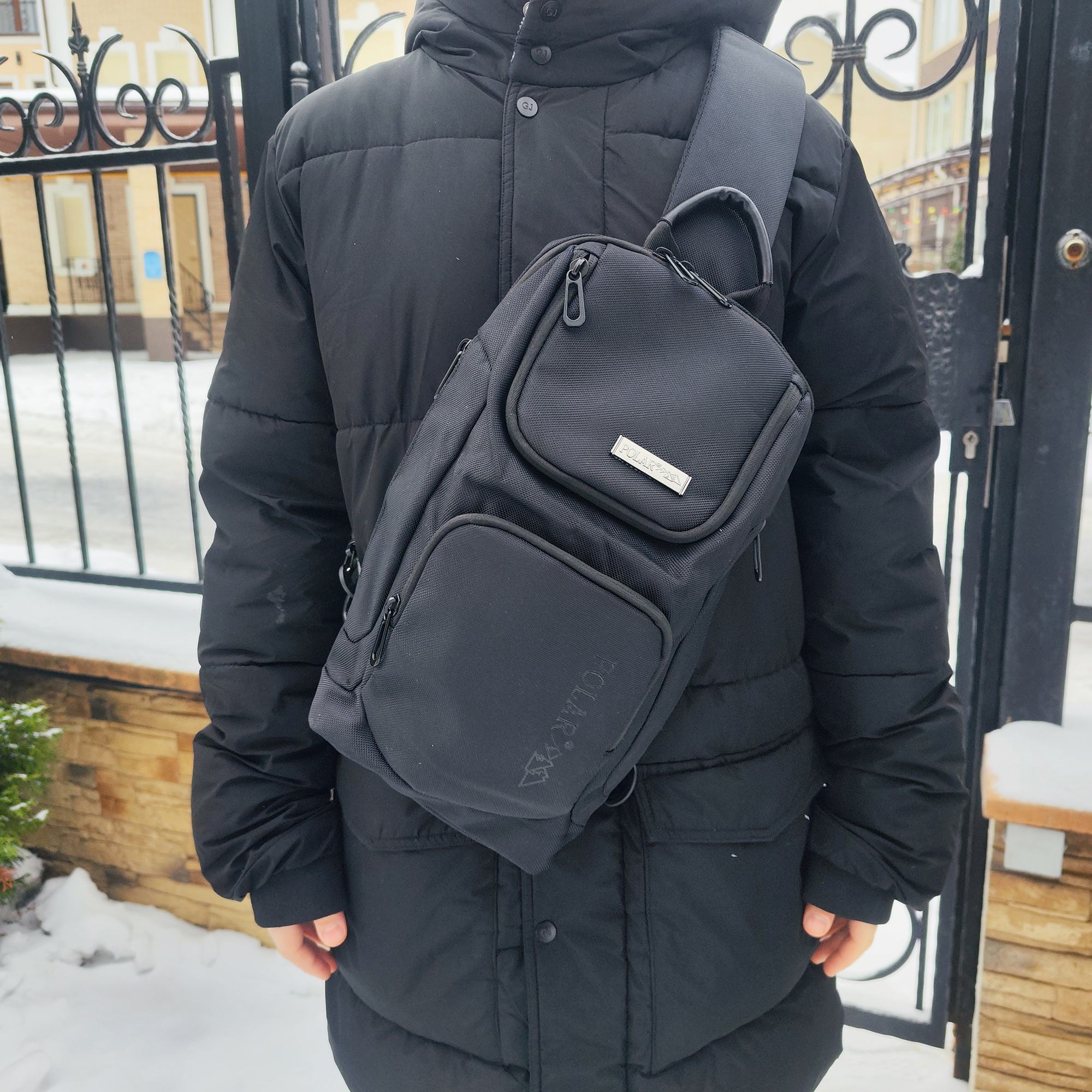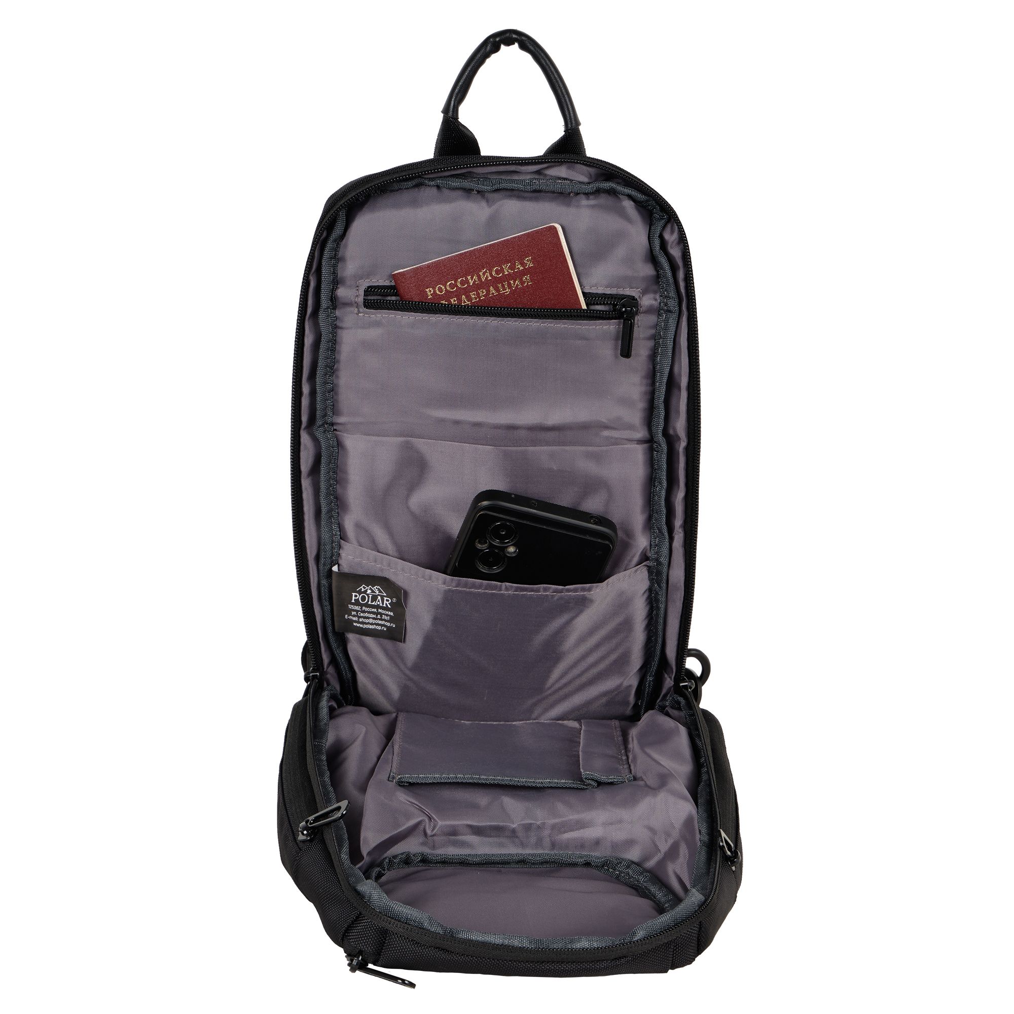 Модный однолямочный рюкзак POLAR. Полностью вентилируемая и удобная анатомическая спинка с сетчатыми уплотнителями делают этот рюкзак очень комфортным в использовании и снимают лишнюю нагрузку, мягкая лямка создает дополнительный комфорт при использовании данной модели. Рюкзак состоит из основного отделения, предназначенного для стандартного ежедневного набора вещей, состоящего из кошелька, документов, мобильного, телефона, очков и ключей, внутри основного отделения есть два открытых кармашка и карман на молнии. Спереди рюкзака есть два накладных кармана на молнии. И два кармана по бокам на молнии. Рюкзак можно носить через плечо, а также крест-накрест с помощью перемещения лямки, максимальная длина которой 120 см. Ширина лямок 7см. На лямке есть потайной карман. Сзади рюкзака тоже небольшой потайной карман. Прекрасно подойдёт для прогулок по городу, велосипедных поездок или путешествий.