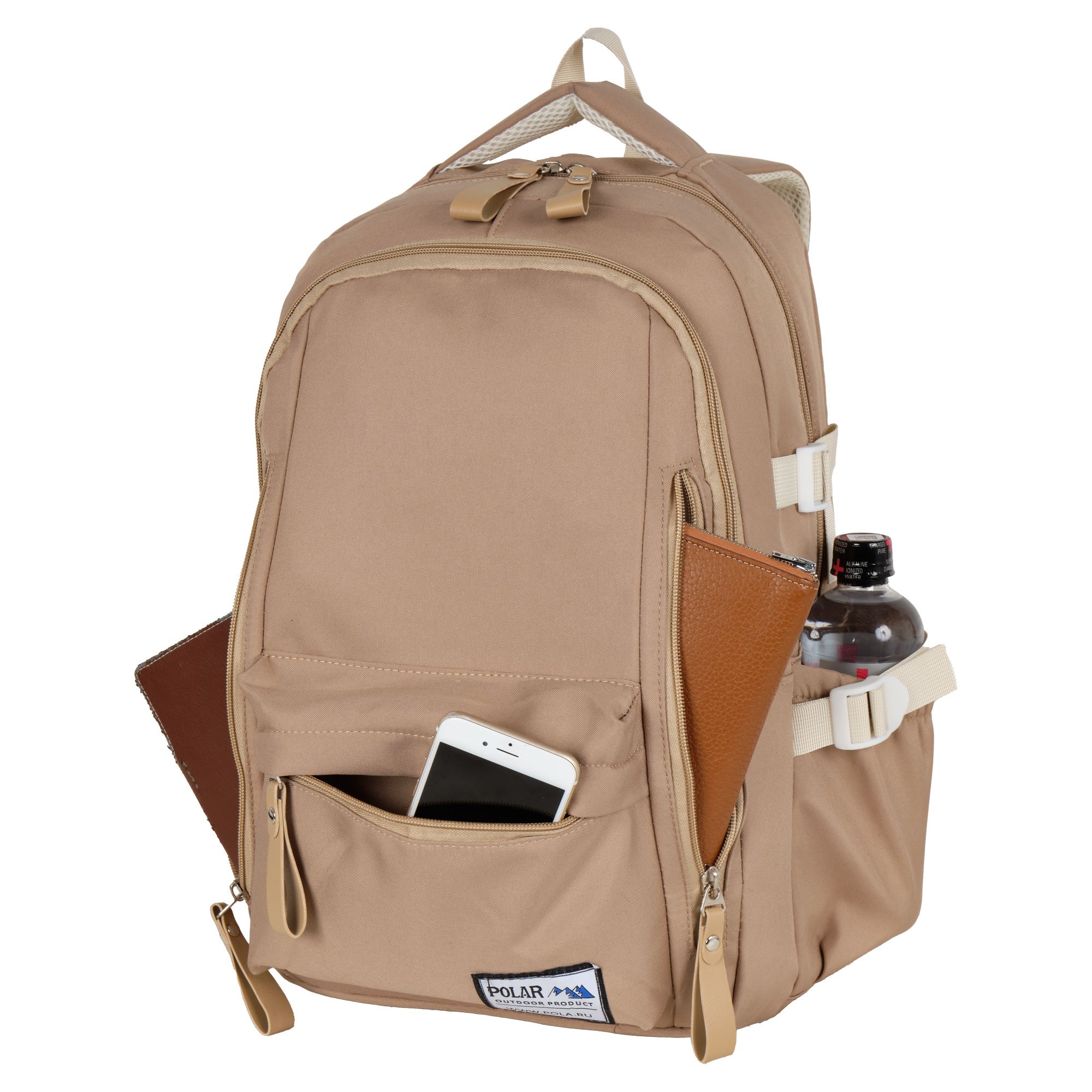Городской рюкзак Polar для повседневной носки. Два независимых отделения на молнии формата А4. Внутри большого отделения открытый карман, где можно разместить планшет/ноутбук или документы, папки . Спереди скрытый карман с боковыми молниями, а так же передний накладной карман. Боковые карманы на резинке с фиксирующими ремнями для регулирования объема рюкзака. Сзади расположен потайной карман Антивор. Спинка и лямки мягкие, с поролоновыми вставками. Сверху рюкзака ручка для переноски и петля для подвешивания. Материал Полиэстер.