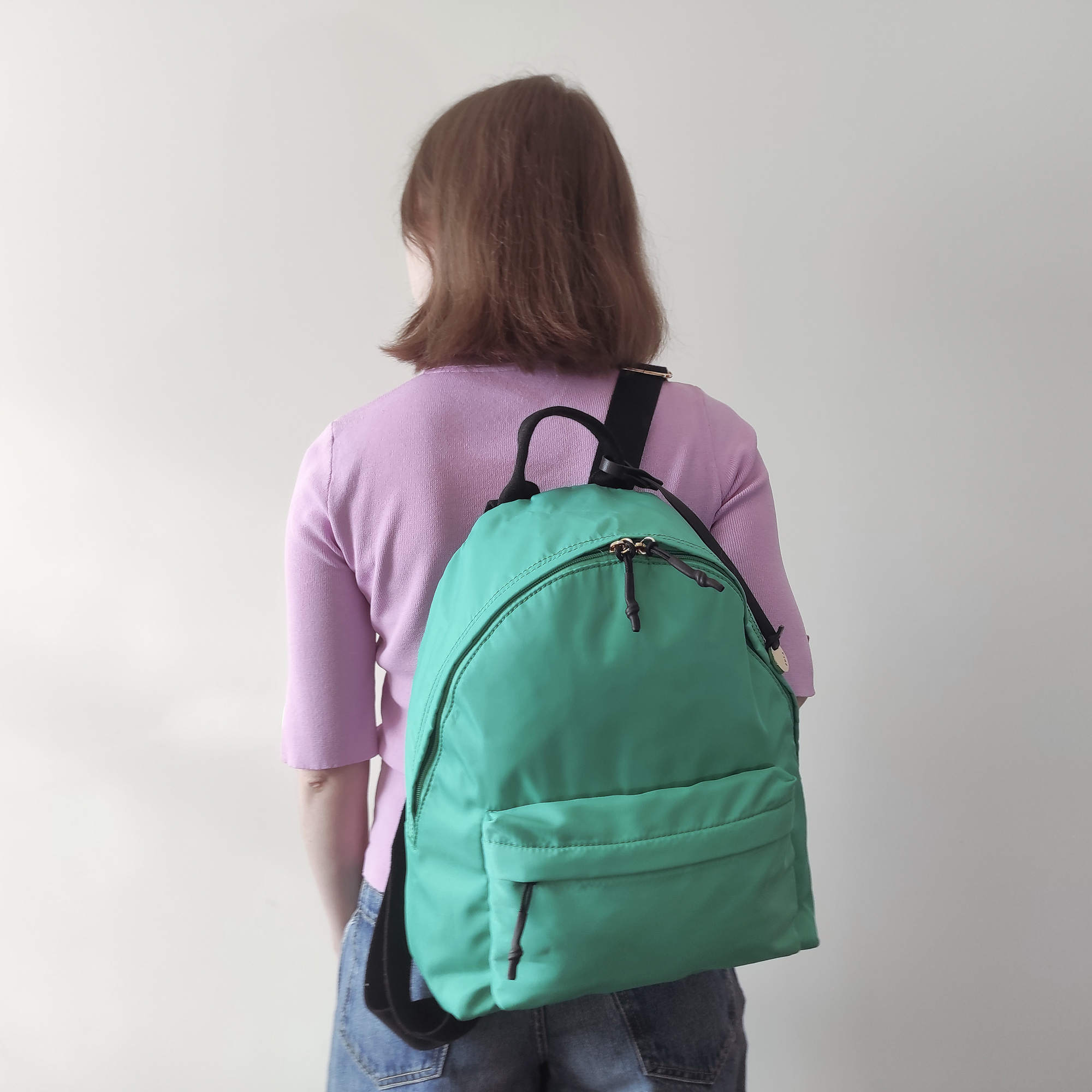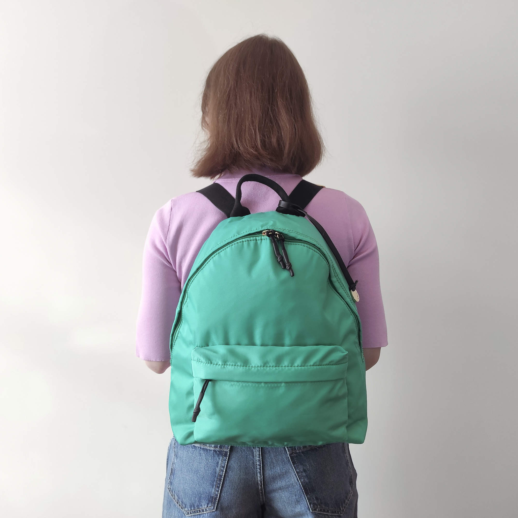 Классический городской рюкзак фирмы Pola выполнен из полиэстера – это идеальная модель для города и для учебы. Рюкзак имеет стильные яркие цвета. Рюкзак свободно вмещает формат А4, объем рюкзака также позволяет его использование в поездках. Внутри рюкзака небольшой кармашек на молнии и один открытый карман. Спереди карман на молнии для мелочей. Рюкзак изготовлен их легкого и очень прочного полиэстера. Высота ручки 9 см. Максимальная длина лямок 110 см. Цвет фурнитуры-золото.
