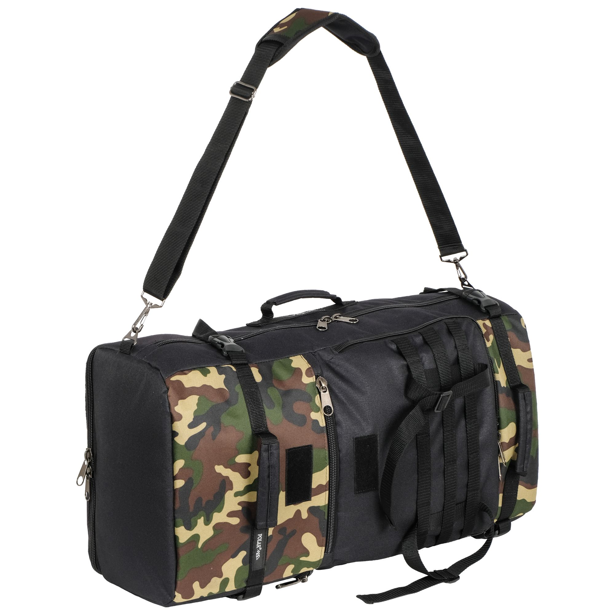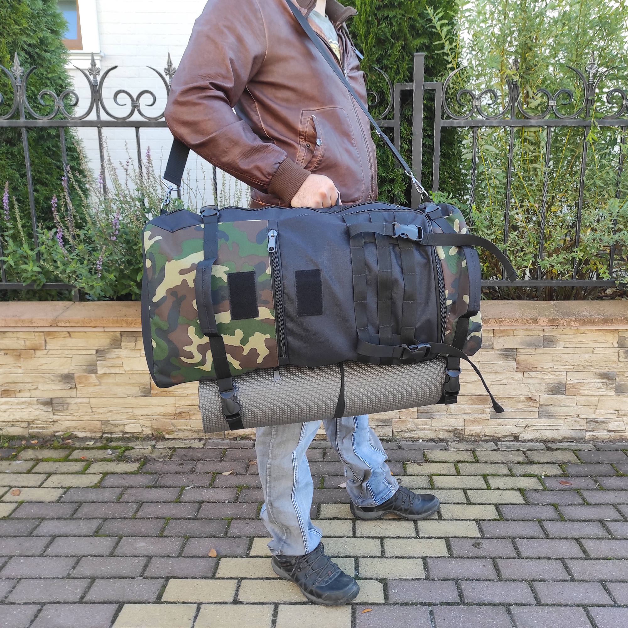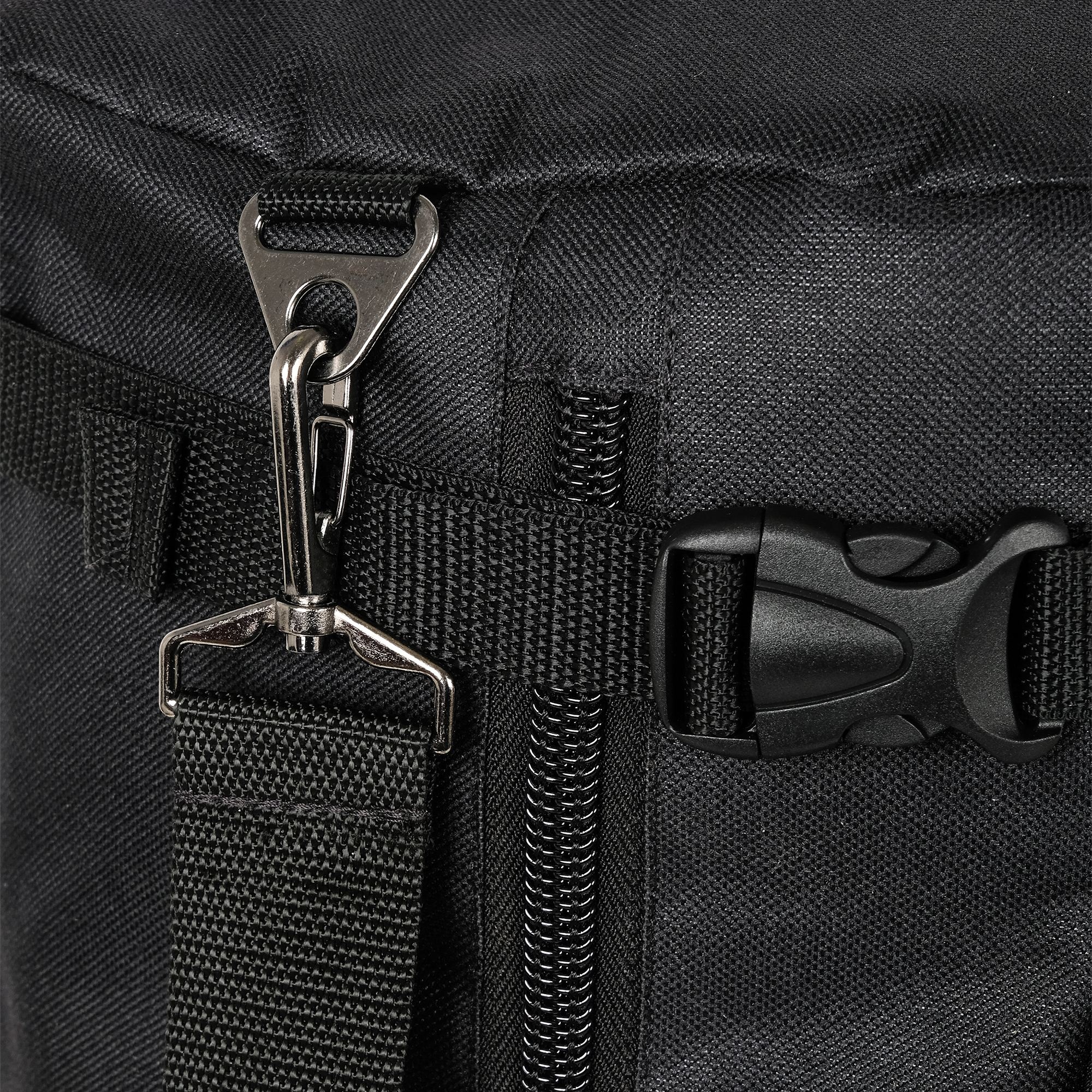 При необходимости, рюкзак легко трансформируется в большую дорожную сумку, если взять его за боковую ручку длина и убрать лямки под дополнительное отделение, отстегнув его сверху и закрыв на молнию. В комплекте есть съемный, регулируемый по длине ремень, длина до 135 см.