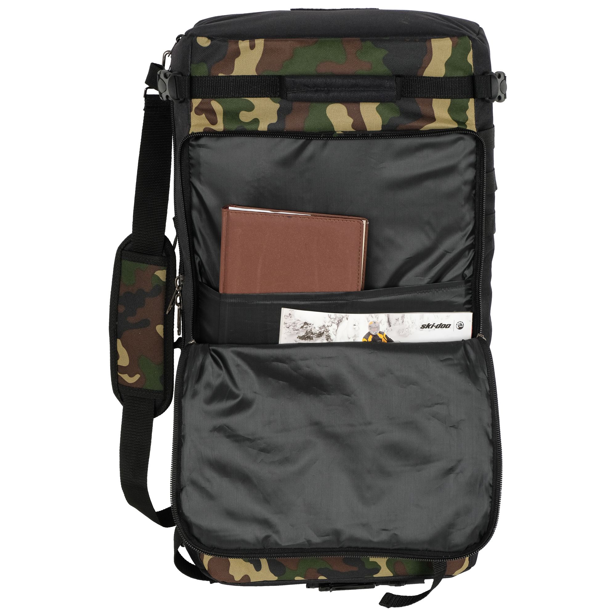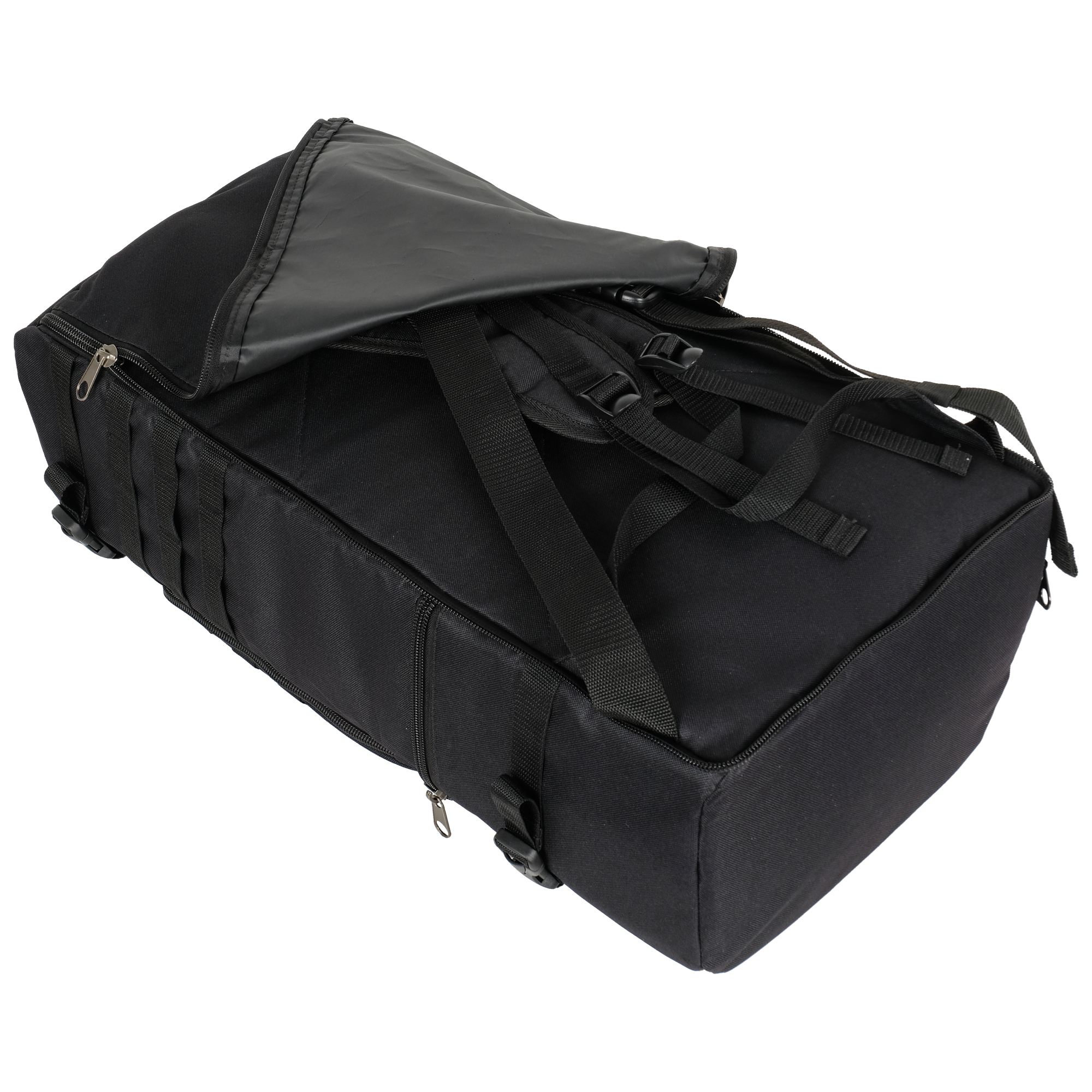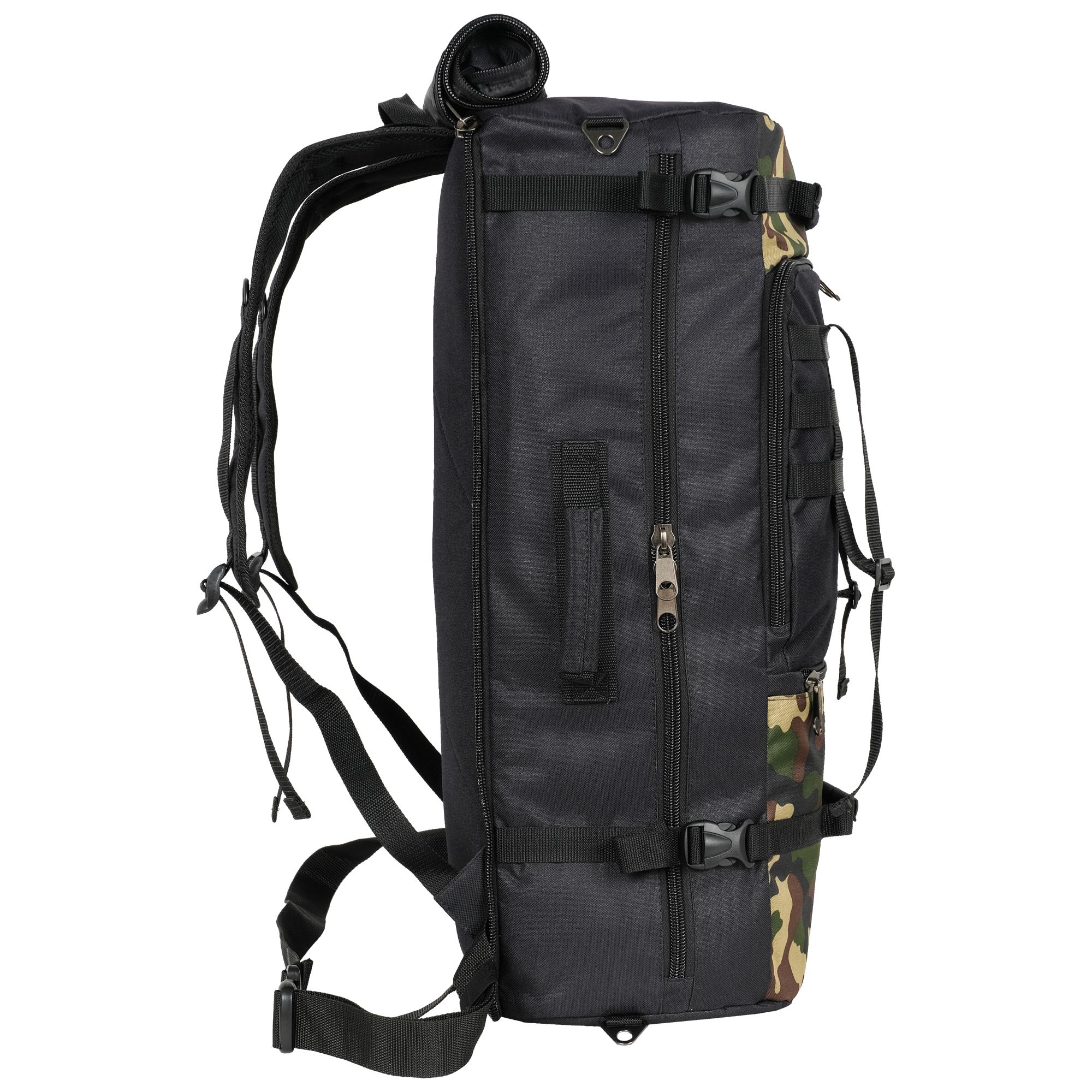 При необходимости, рюкзак легко трансформируется в большую дорожную сумку, если взять его за боковую ручку длина и убрать лямки под дополнительное отделение, отстегнув его сверху и закрыв на молнию. В комплекте есть съемный, регулируемый по длине ремень, длина до 135 см.