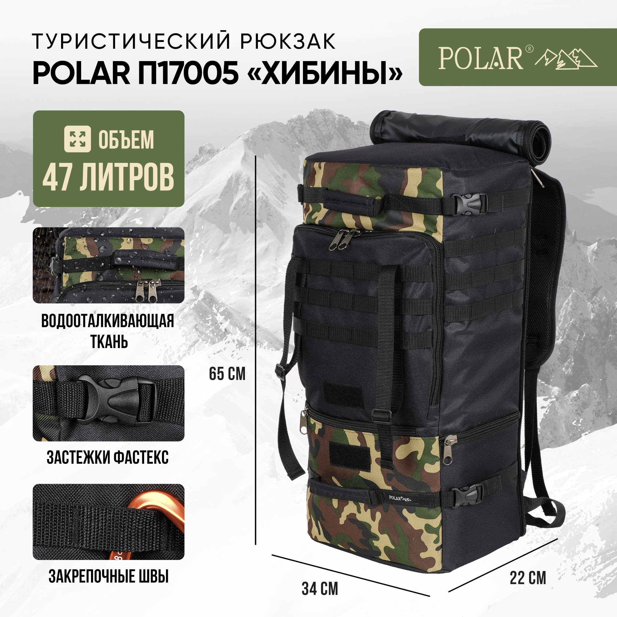 Рюкзак-трансформер "Хибины" имеет объем 47 литров, выполнен из материала Oxford 600D с водоотталкивающей пропиткой и предназначен для универсального применения: рейдовый, тактический, походный, для сплавов, рыбацкий, охотничий, армейский.
