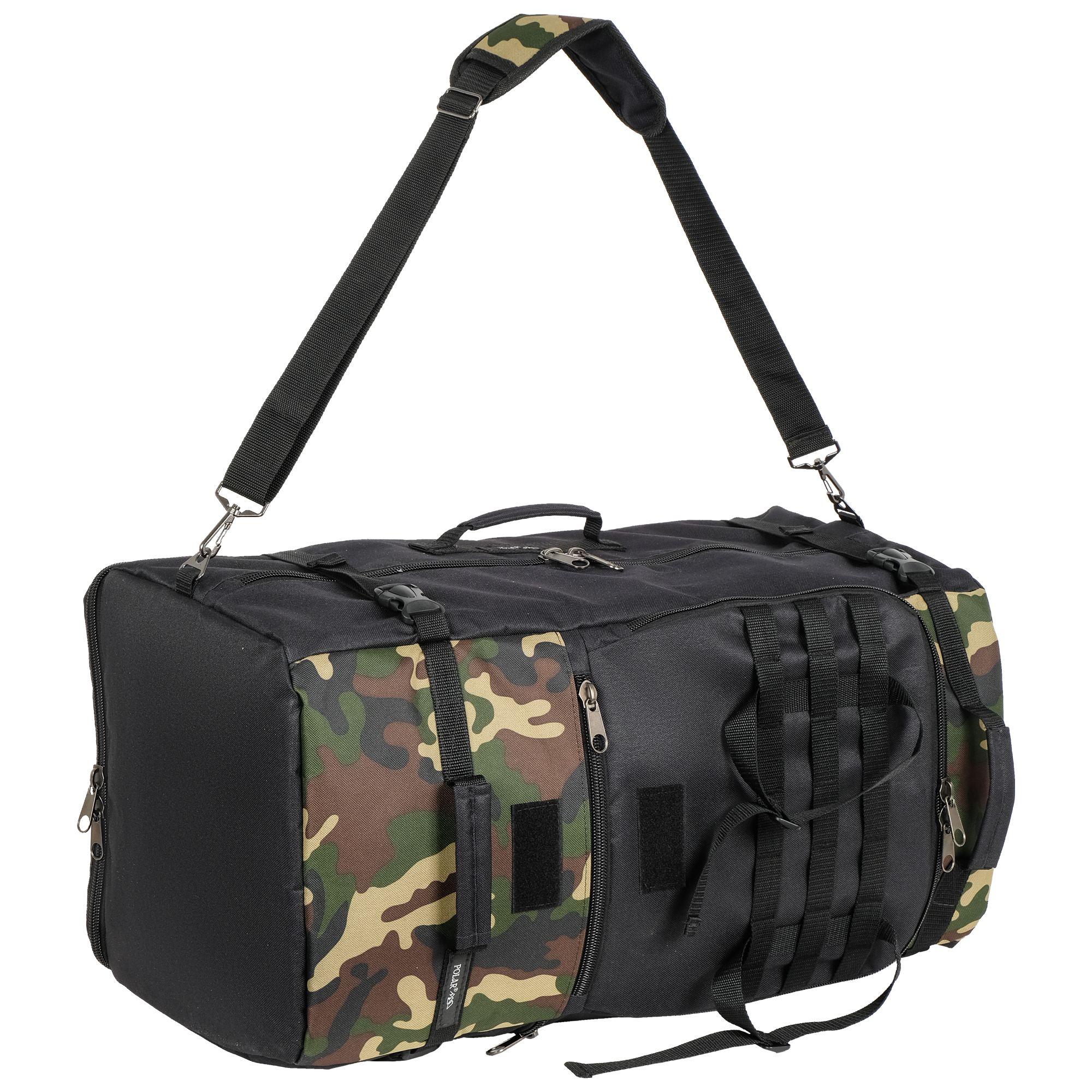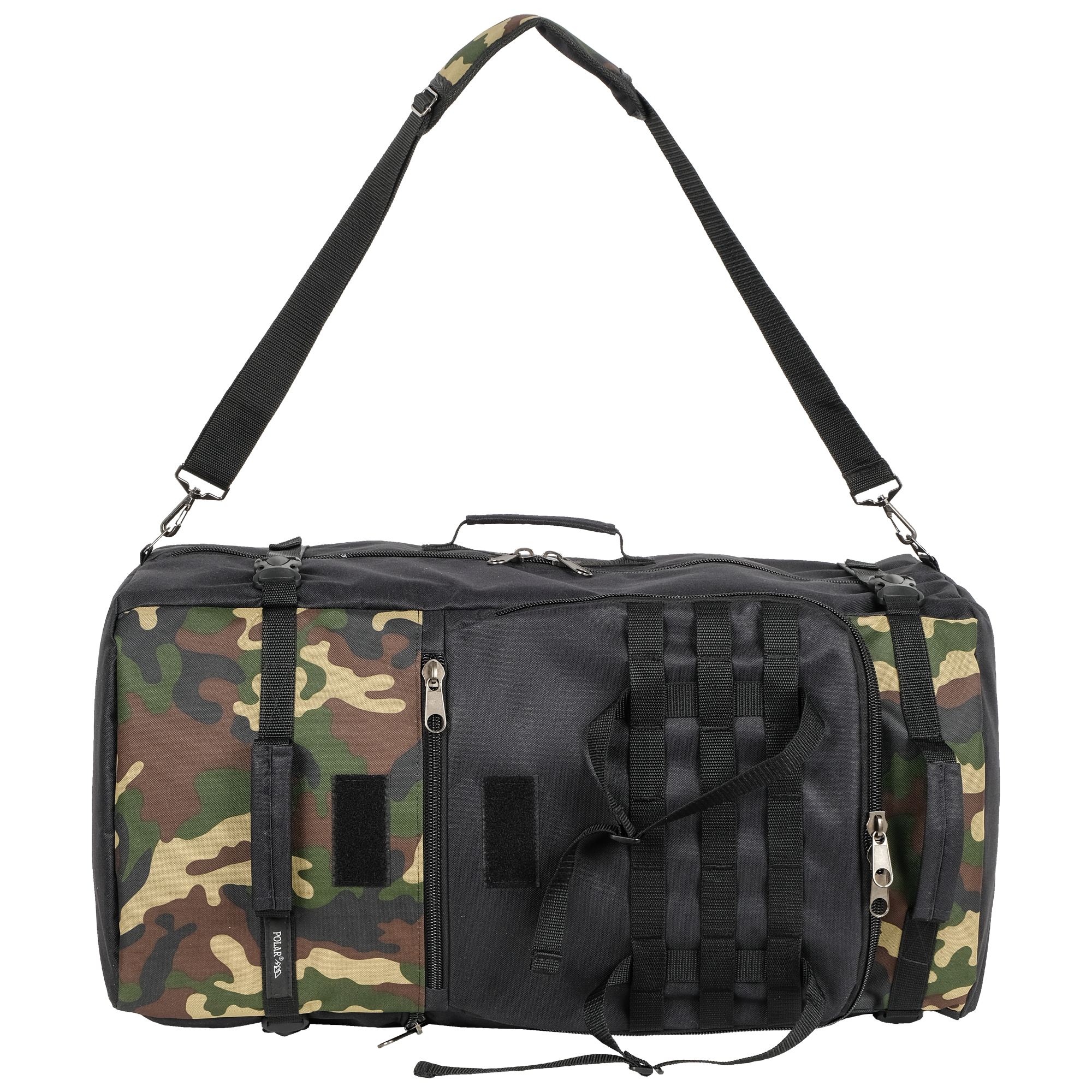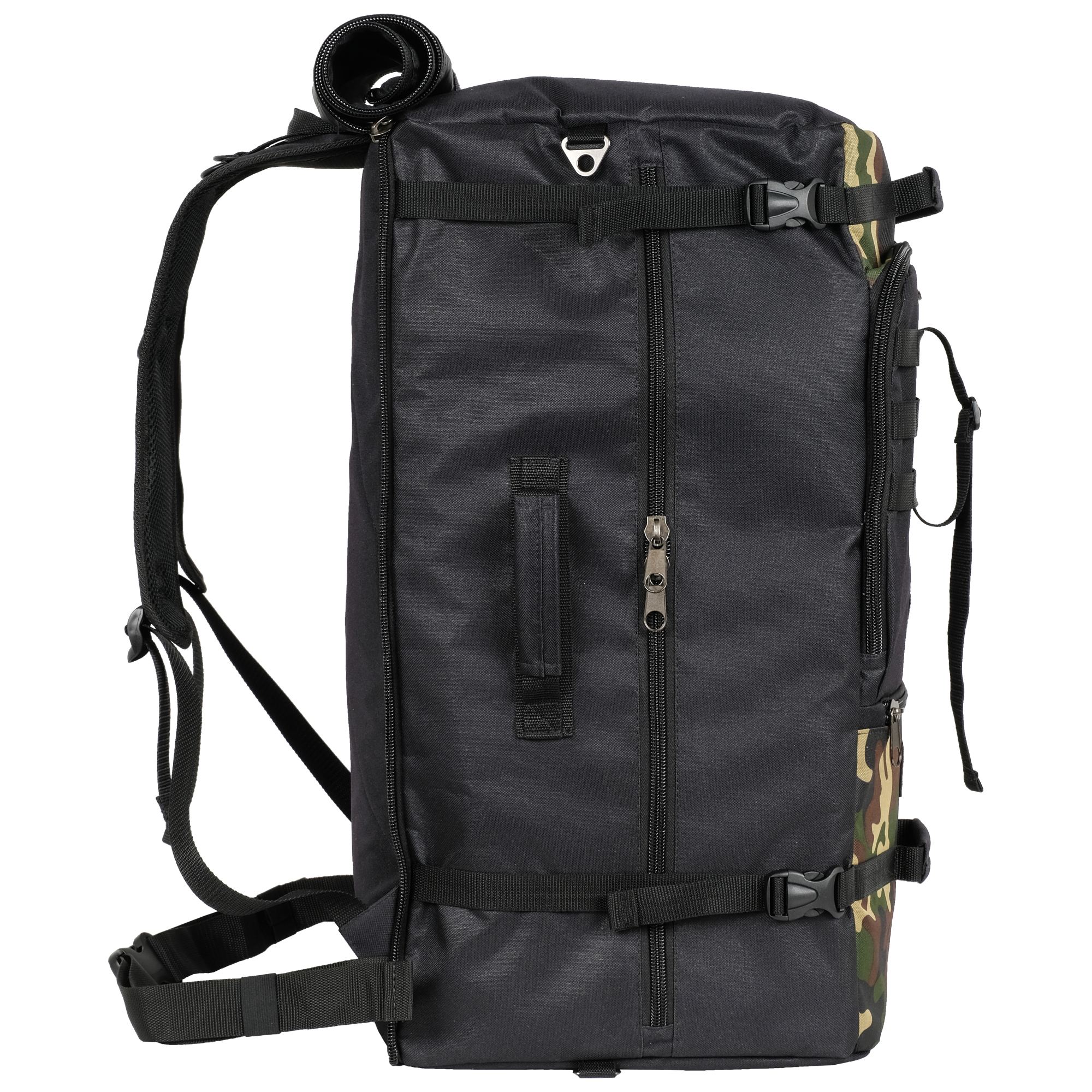 При необходимости, рюкзак легко трансформируется в большую дорожную сумку, если взять его за боковую ручку длина и убрать лямки под дополнительное отделение, отстегнув его сверху и закрыв на молнию. В комплекте есть съемный, регулируемый по длине ремень, длина до 125 см.