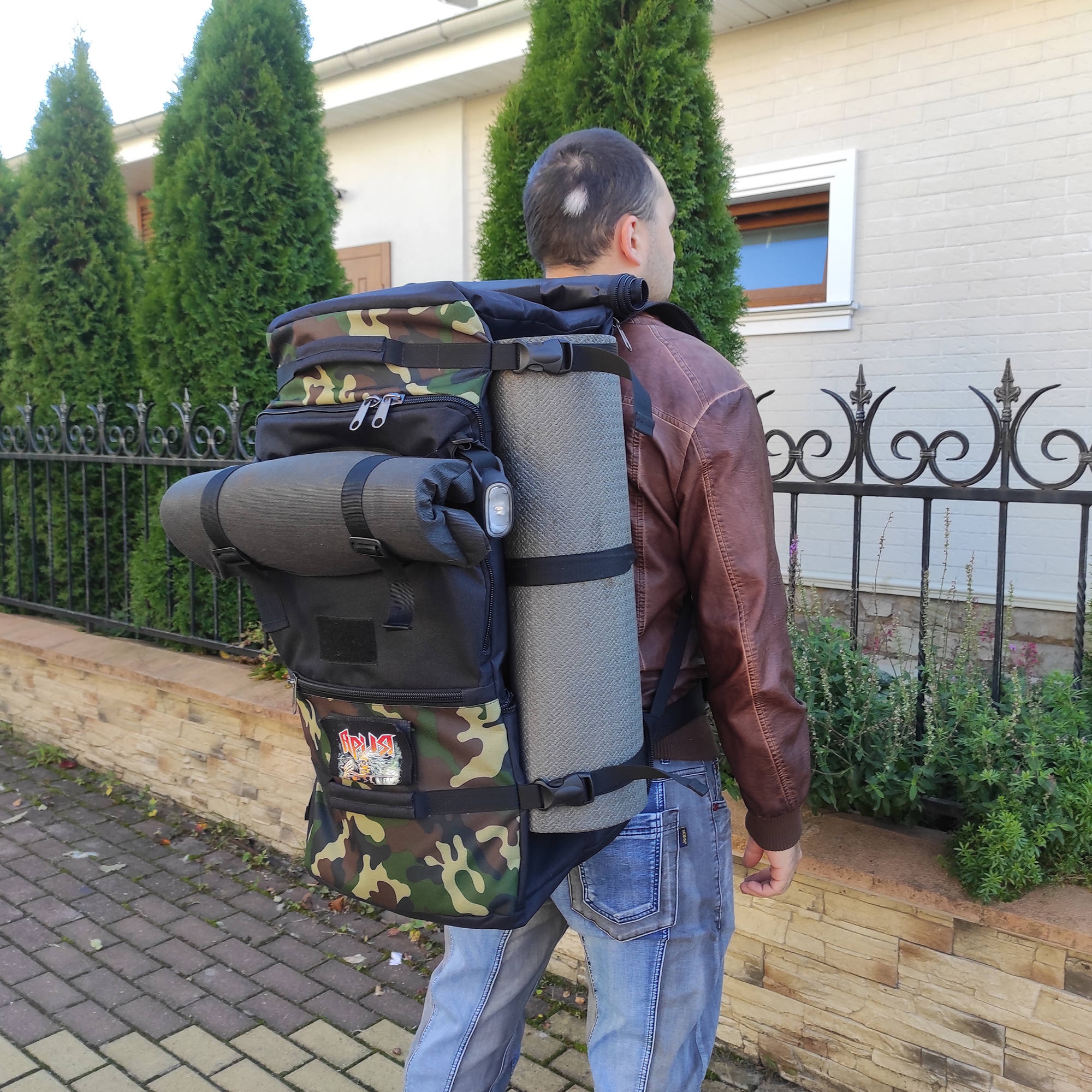 На передней стенке у рюкзака есть две широкие липучки на которые вы при желании можете прикрепить свои шевроны.