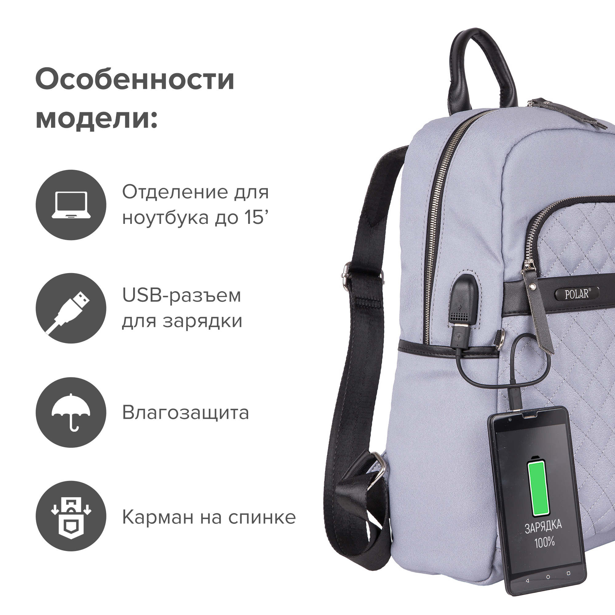 Дополнительное удобство рюкзака – это наличие USB-порта для зарядки вашего телефона или планшета. Встроенный USB-порт позволит зарядить ваш гаджет, не снимая рюкзак, что особенно удобно в современном мире.
