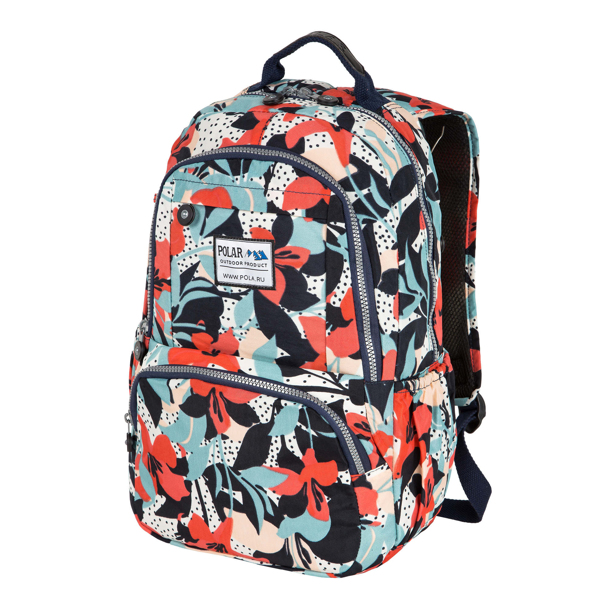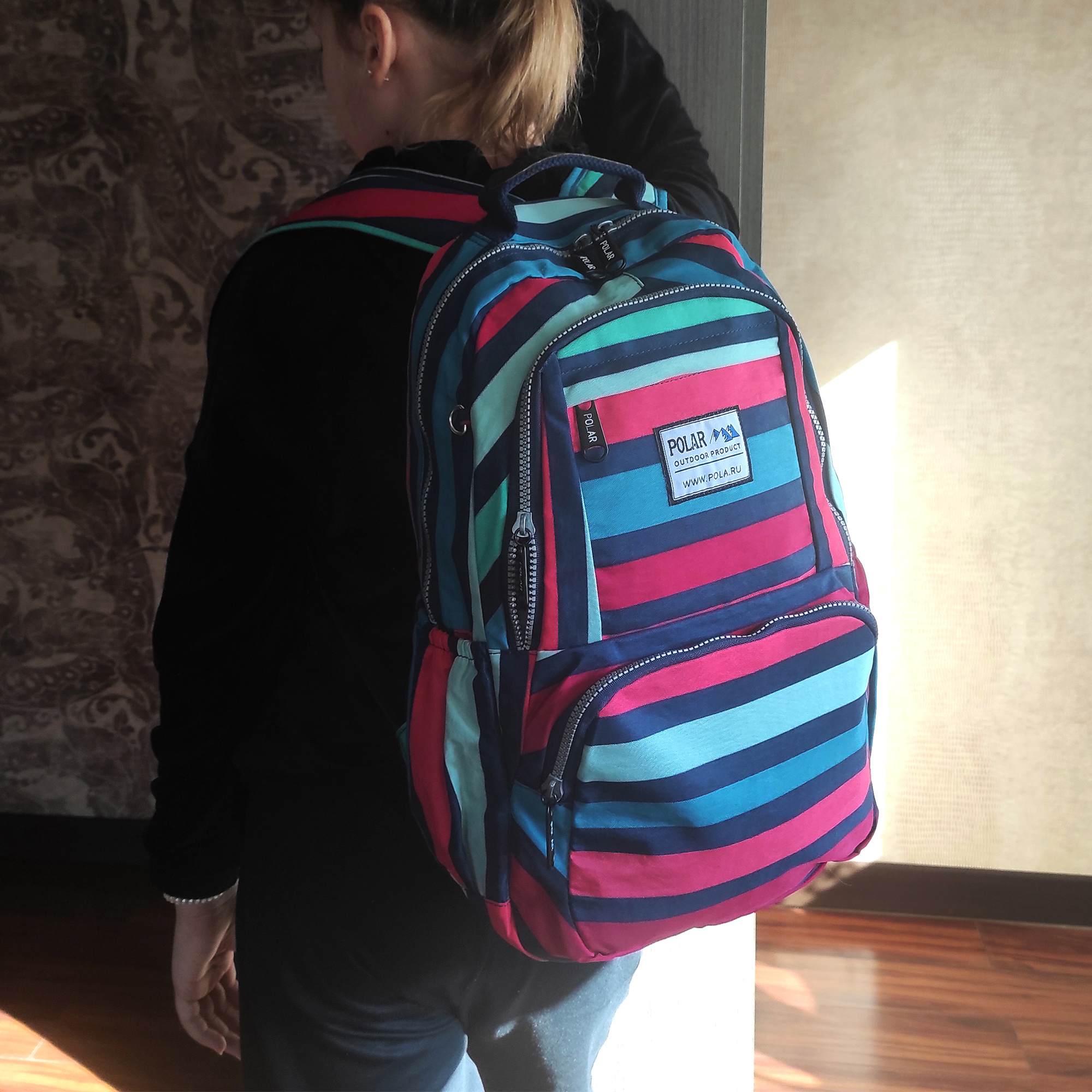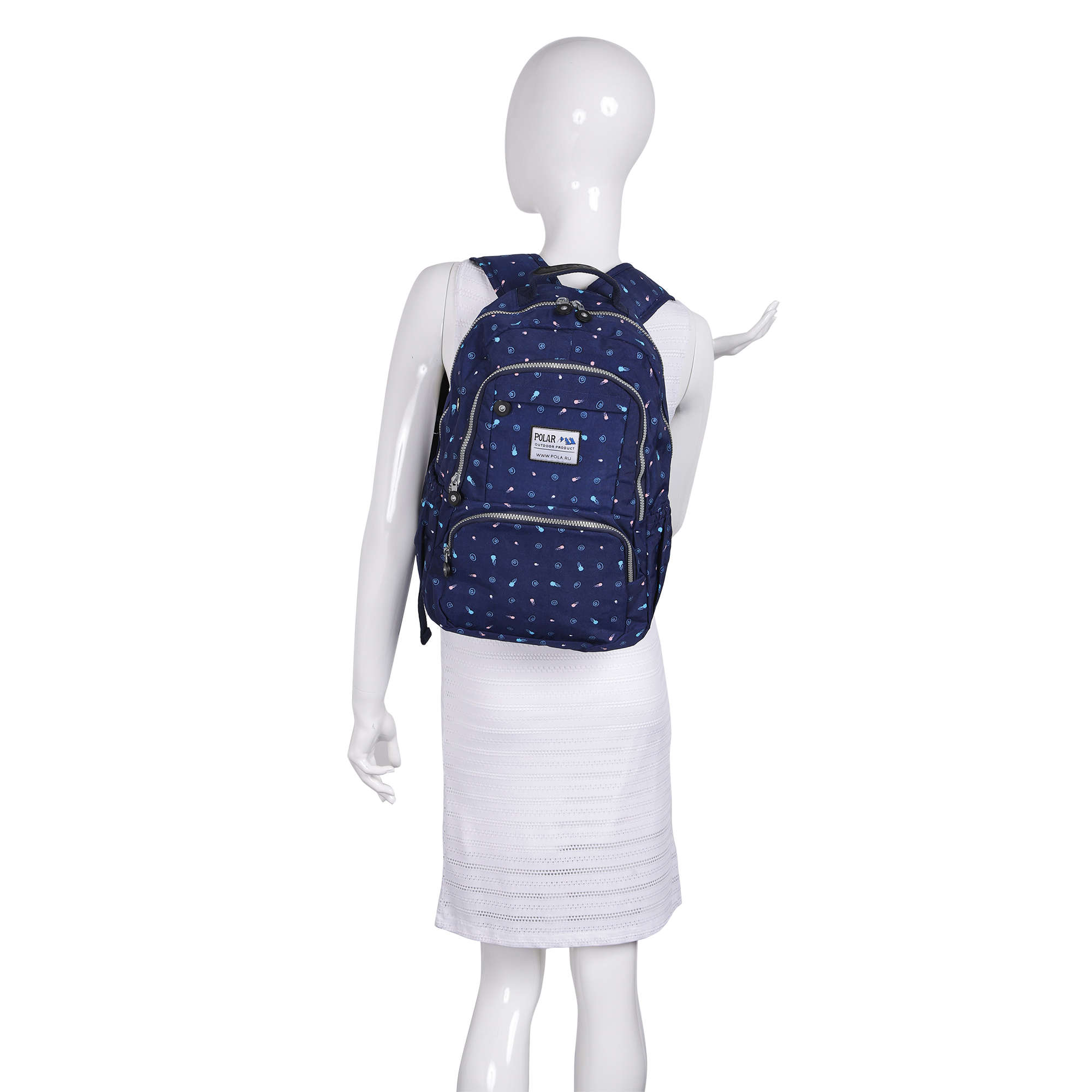 Удобный городской рюкзак Полар выполнен из полиэстера и прекрасно подходит для прогулок и учёбы. Модель состоит из двух отделений (основного отделения, внутри которого есть большой карман на резинке для документов, планшета и ноутбука диагональю 14 и небольшой кармашек на молнии) и отделения спереди рюкзака для более мелких вещей. Спереди внизу рюкзака накладной карман на молнии , а сзади- вместительный карман на молнии. Лямки мягкие, с поролоновыми вставками. Отличительной особенностью данной модели является лёгкий вес и модная, причудливая расцветка. Сверху рюкзака ручка для переноски.