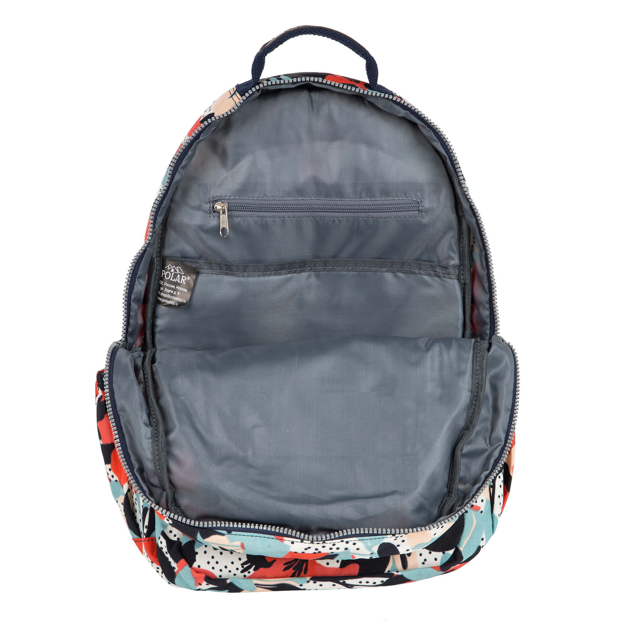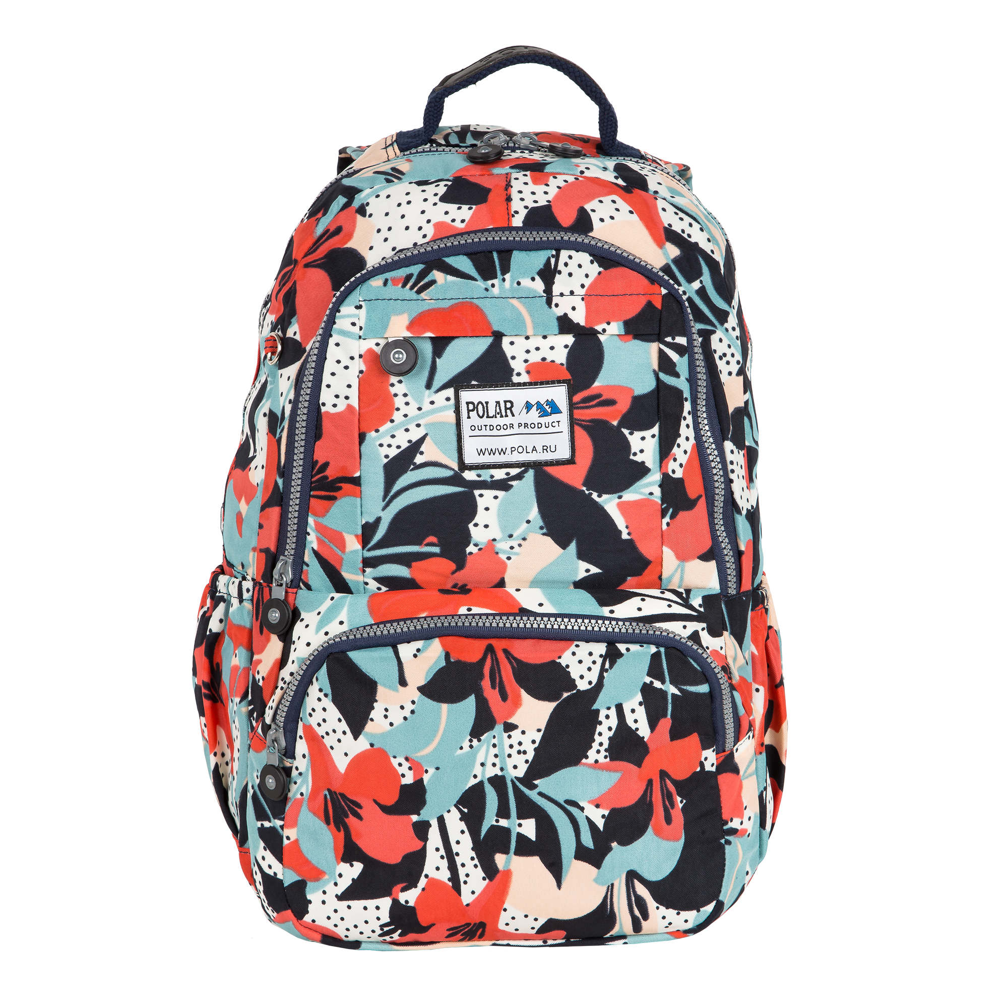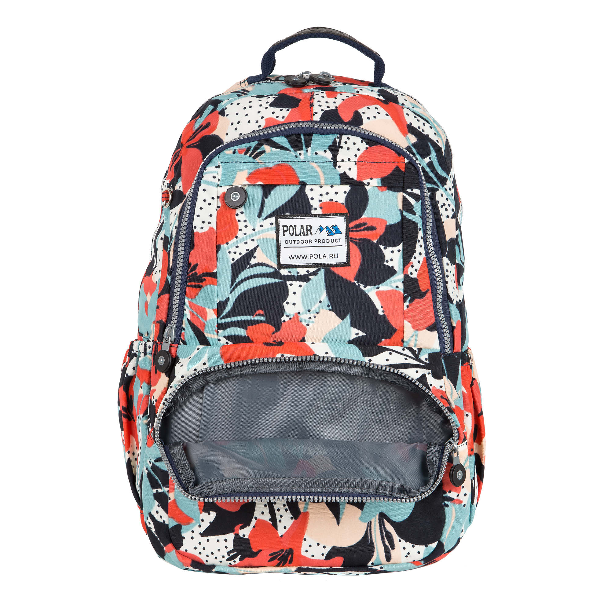 Удобный городской рюкзак Полар выполнен из полиэстера и прекрасно подходит для прогулок и учёбы. Модель состоит из двух отделений (основного отделения, внутри которого есть большой карман на резинке для документов, планшета и ноутбука диагональю 14 и небольшой кармашек на молнии) и отделения спереди рюкзака для более мелких вещей. Спереди внизу рюкзака накладной карман на молнии , а сзади- вместительный карман на молнии. Лямки мягкие, с поролоновыми вставками. Отличительной особенностью данной модели является лёгкий вес и модная, причудливая расцветка. Сверху рюкзака ручка для переноски.